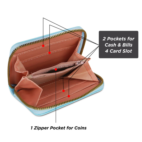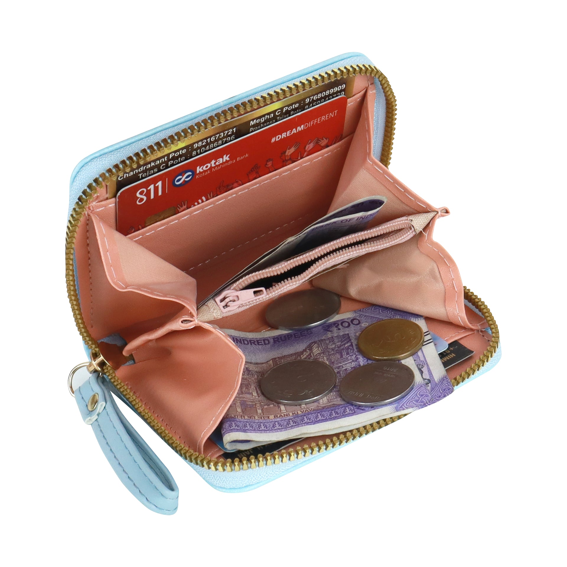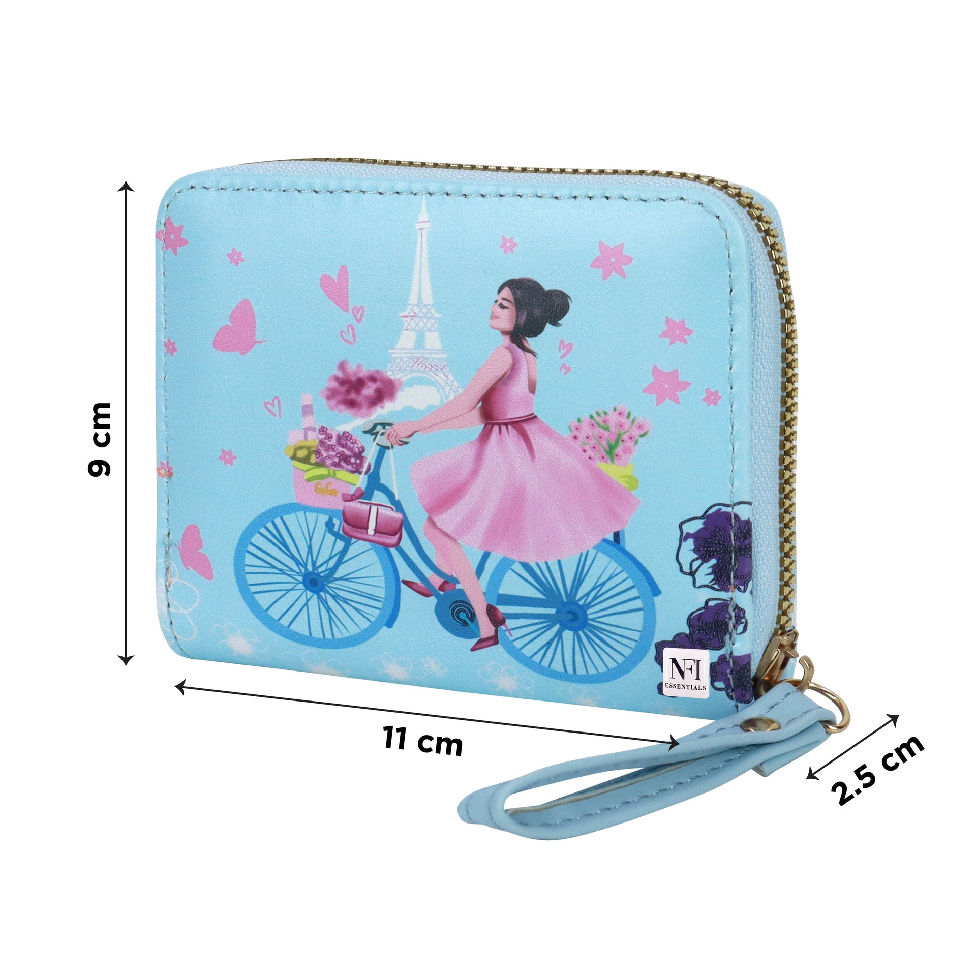NFI essentials Small Wallet for Women, PU Leather Mini Clutch Wallet for Girls, Printed Zipper Hand Purse Credit Card Holder Coin Purse for Girls