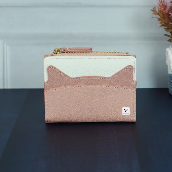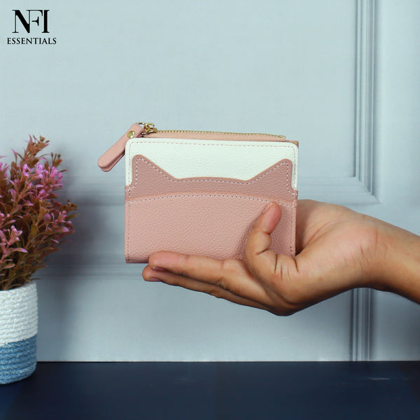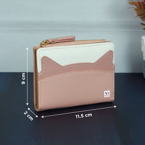NFI essentials Small Wallet for Women, PU Leather Mini Wallet for Girls, Cash, Coin, Credit Card Holder with Zip Pocket, Bifold Cat Ear Design Small Money Purse for Girls Ladies