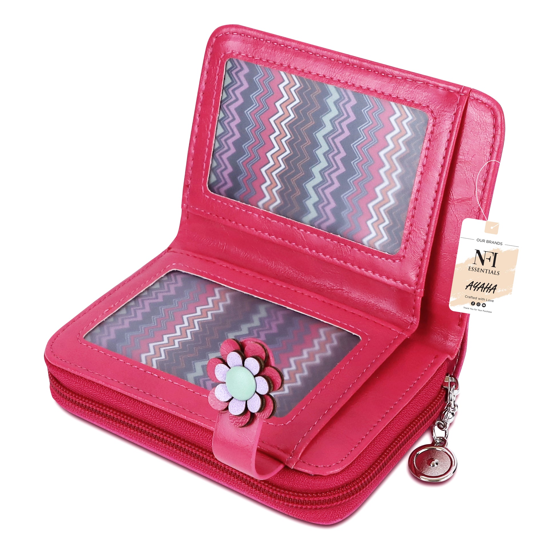 NFI essentials Small Wallet for Women, PU Leather Printed Mini Zipper Wallet for Girls, Credit Card Holder Organizer Coin Purse for Girls