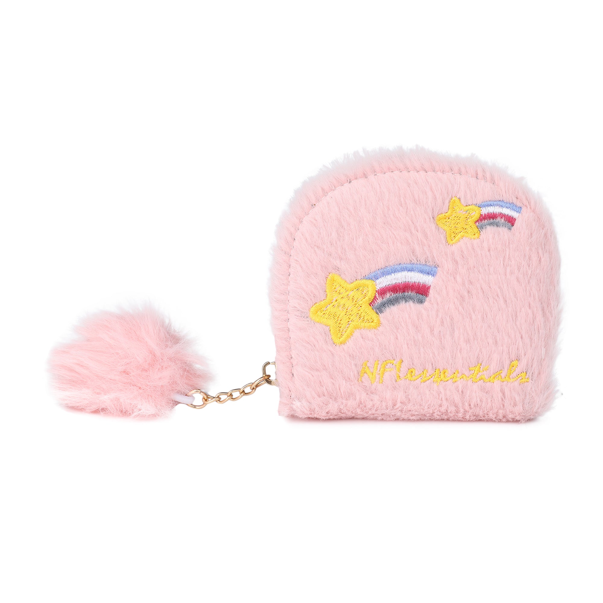NFI essentilas Fashion Soft Fur Semicircle Clutch Wallet for holding Card ,Coin with Zipper Closure for Women & Girls Small Clutch Wallet