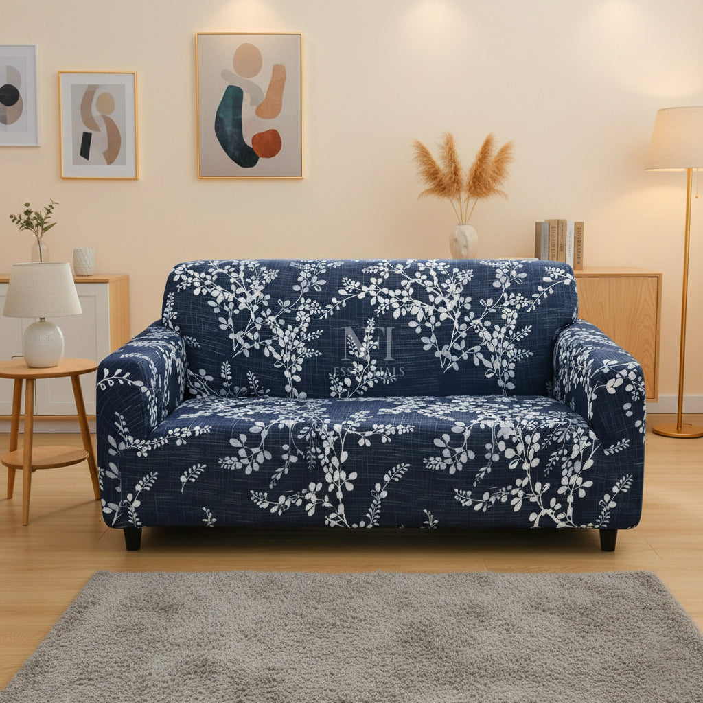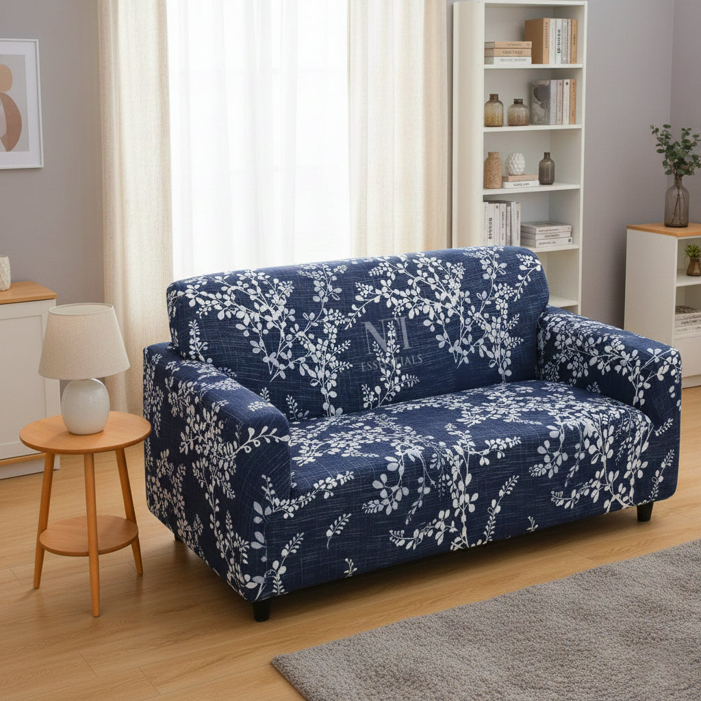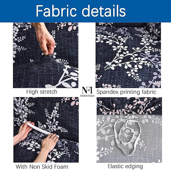NFI Essentials 2 Seater Stretchable Sofa Cover Floral Vine Pattern, Soft Polyester Spandex, Anti-Slip, Wrinkle-Resistant, Washable Couch Slipcover for Living Room Furniture Protection