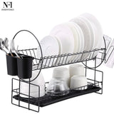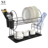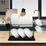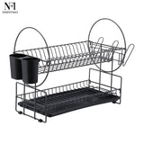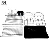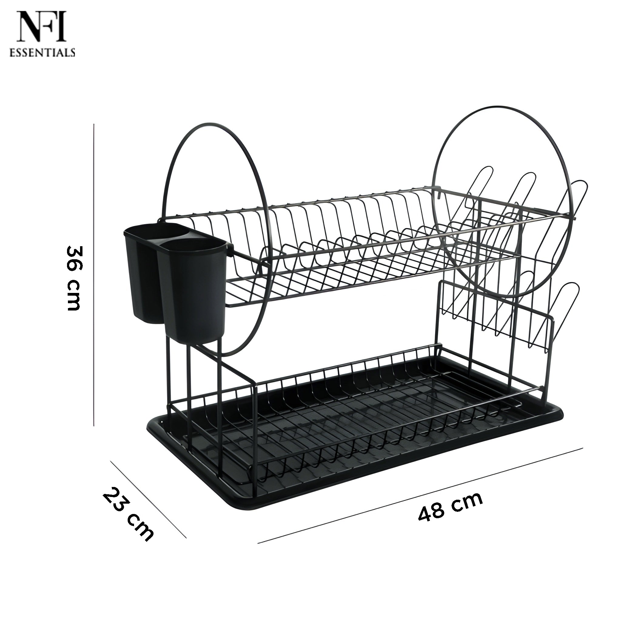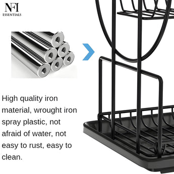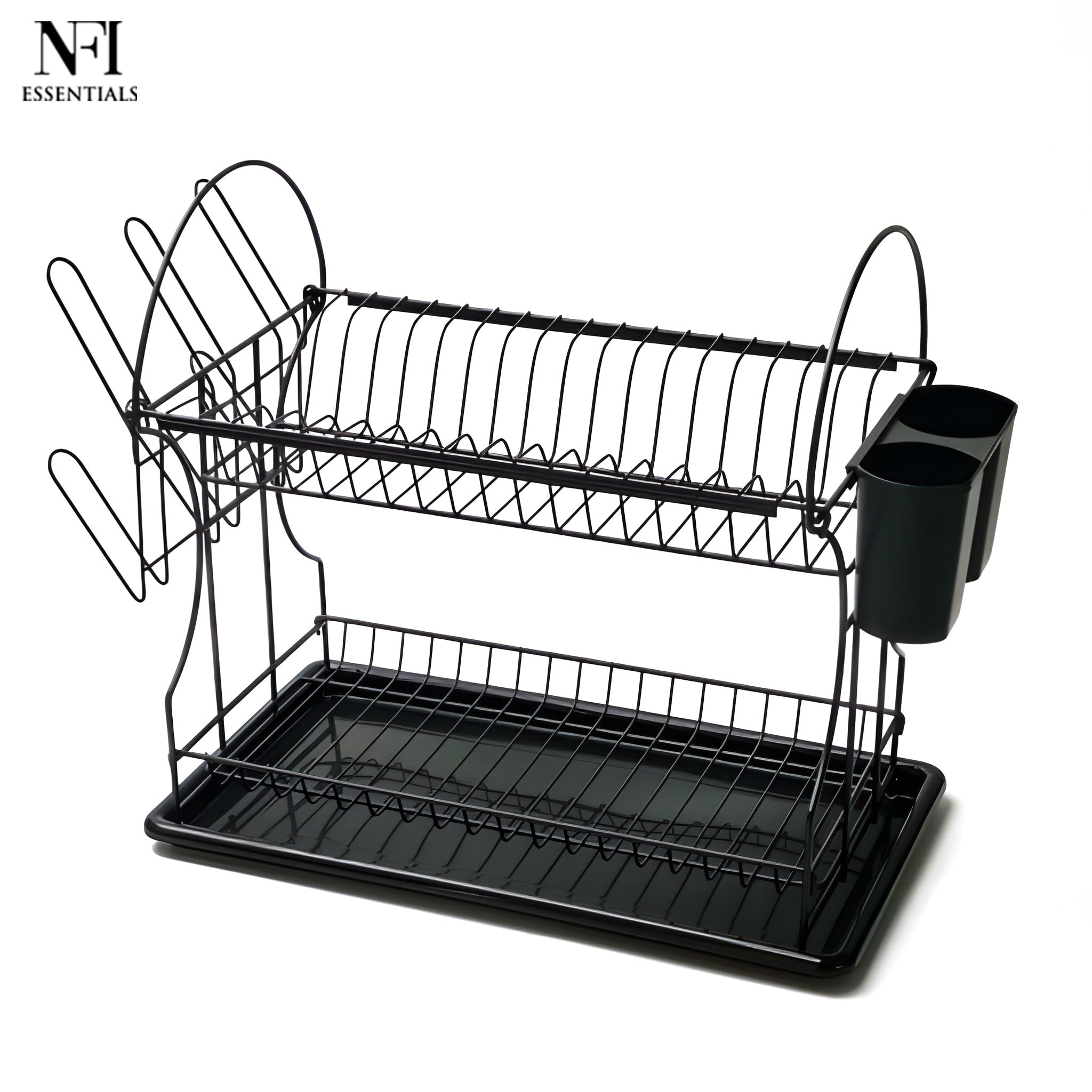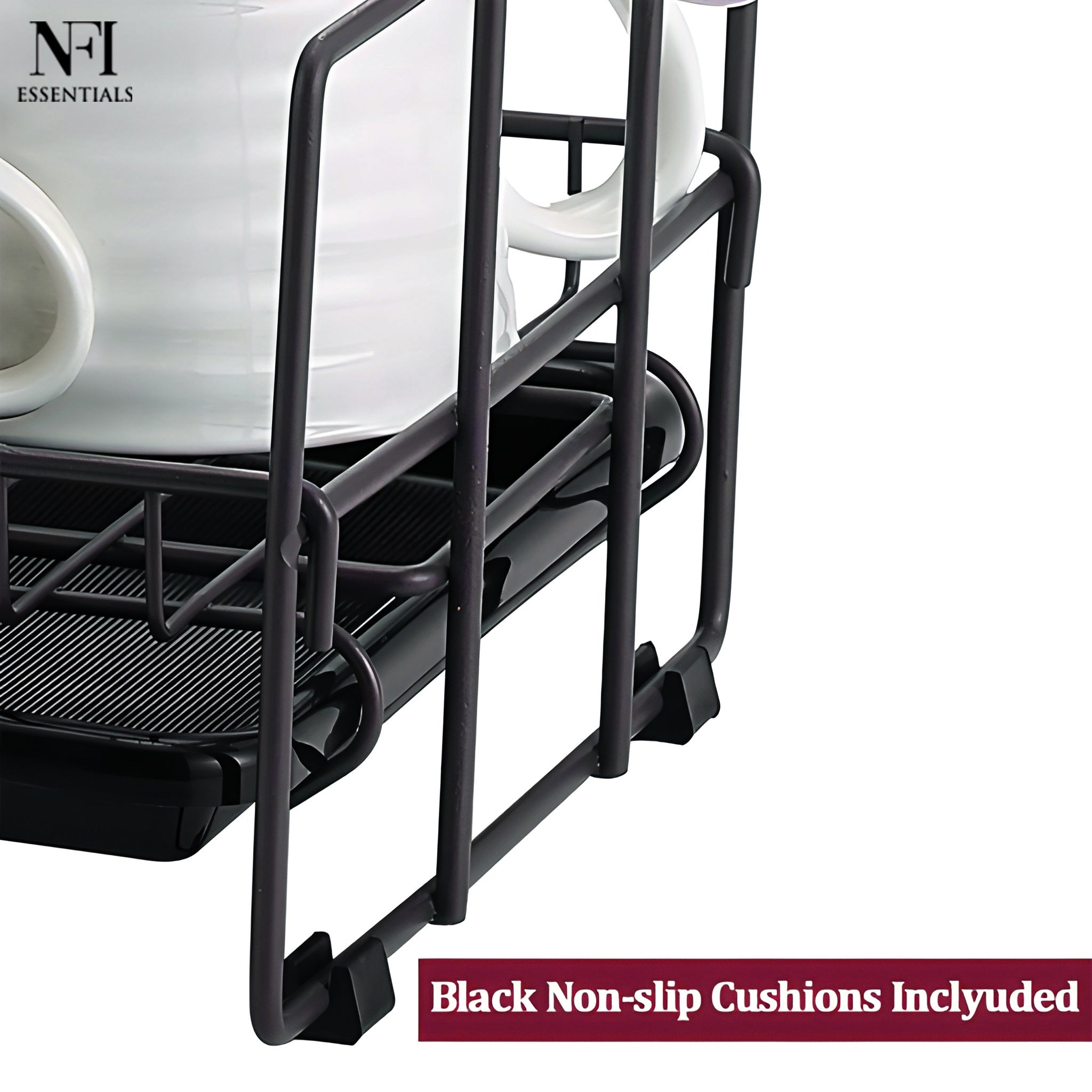 NFI essentials 2 Tier Dish Drying Rack for Kitchen Counter with Drainboard, Multifunctional Metal Rack Holder for Cups, Dishes, Knives, Spoons, Forks, Dish Drainer Utensil Holder