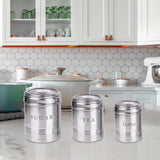 Stainless Steel Set of 3 Food Canister Kitchen Counter Storage, Food Container for Sugar, Flour, Coffee or Tea Container Canister.In Food Container for Sugar, Flour, Coffee or Tea Container Canister.