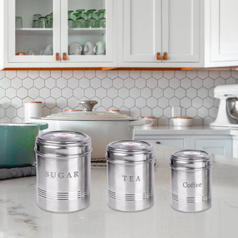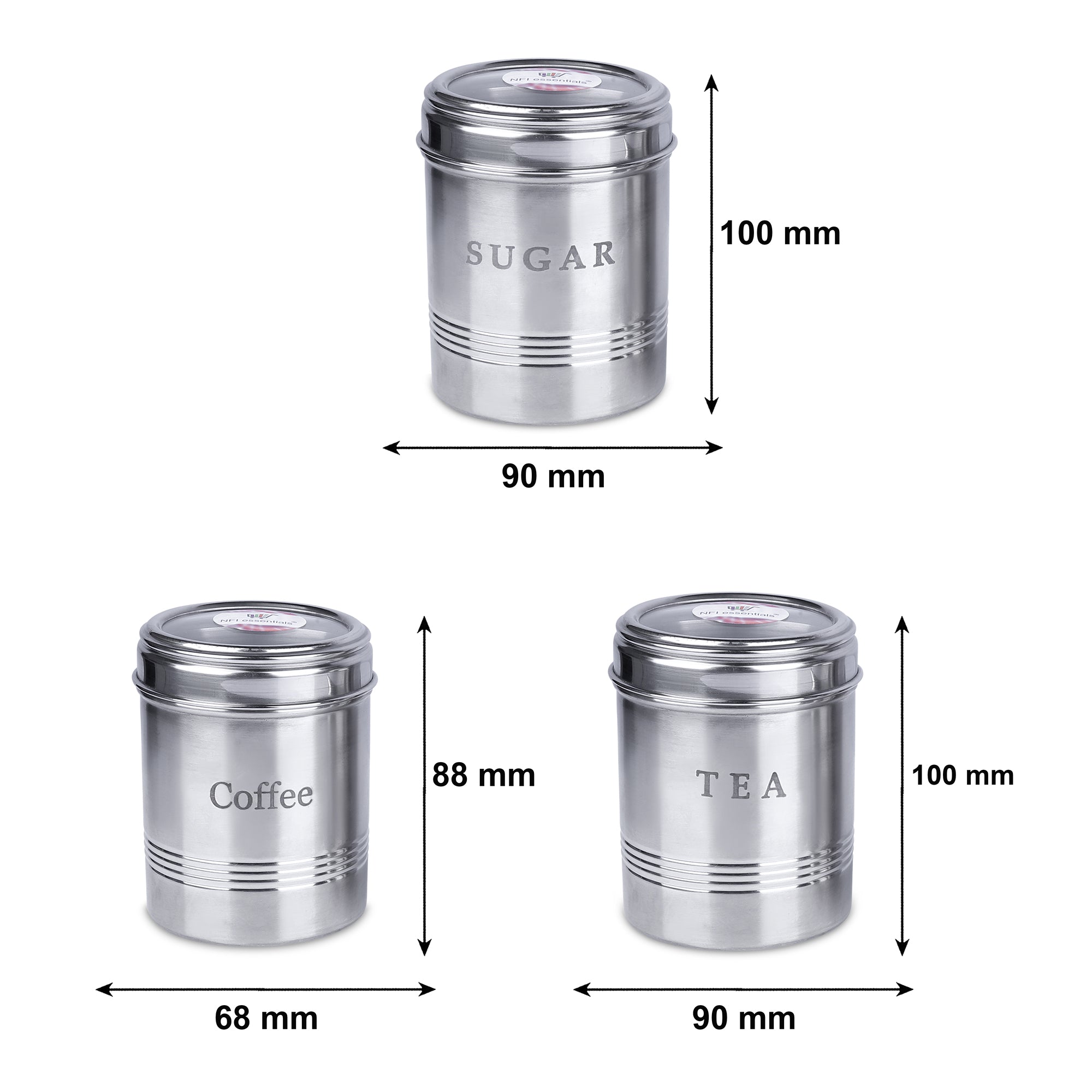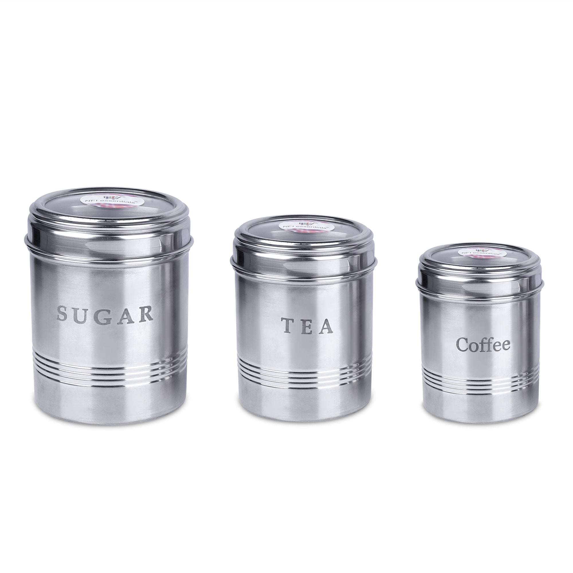 NFI essentials Set of 3 Stainless Steel Coffee, Sugar, Tea Containers With Lids Set for Kitchen Food Canister Kitchen Counter (I59)