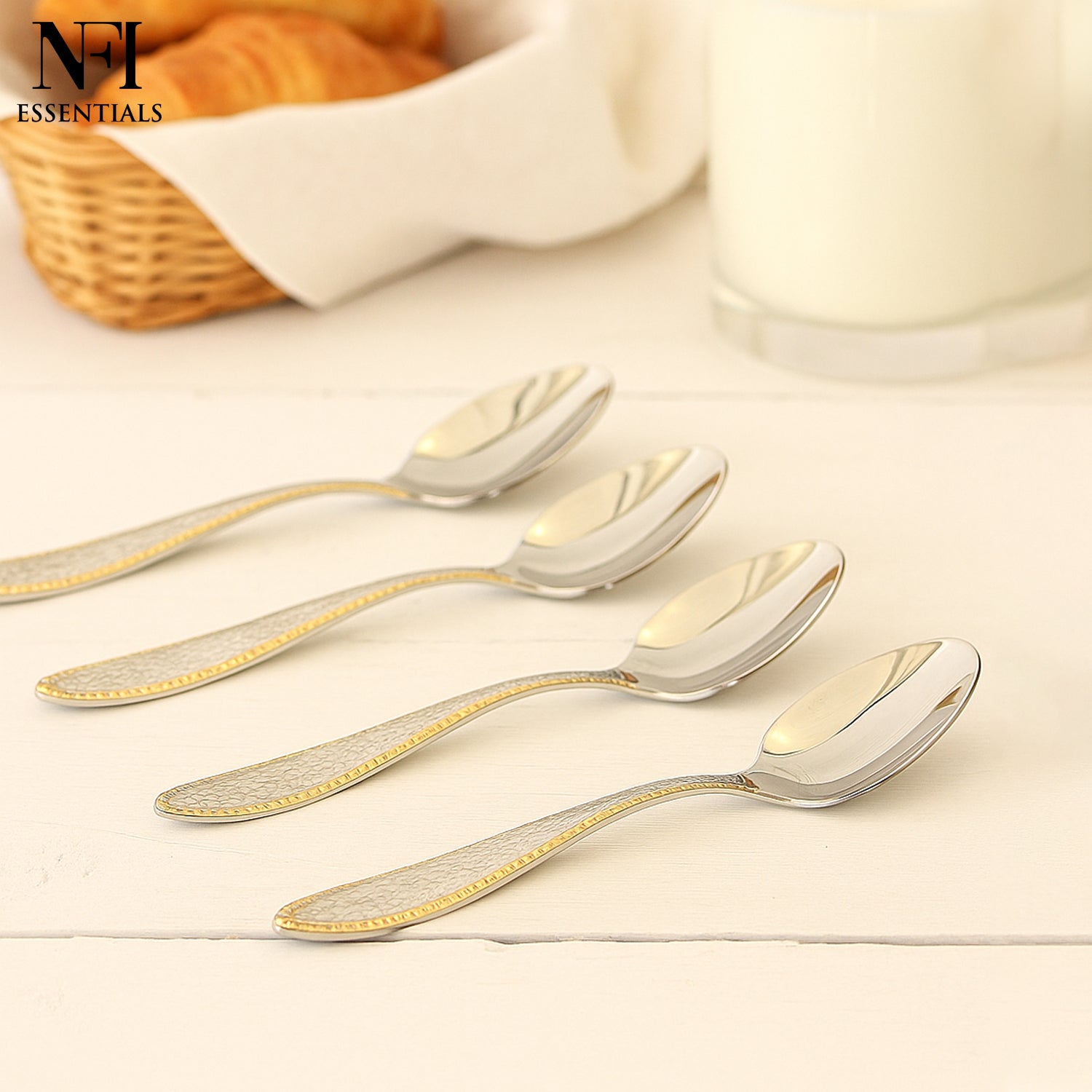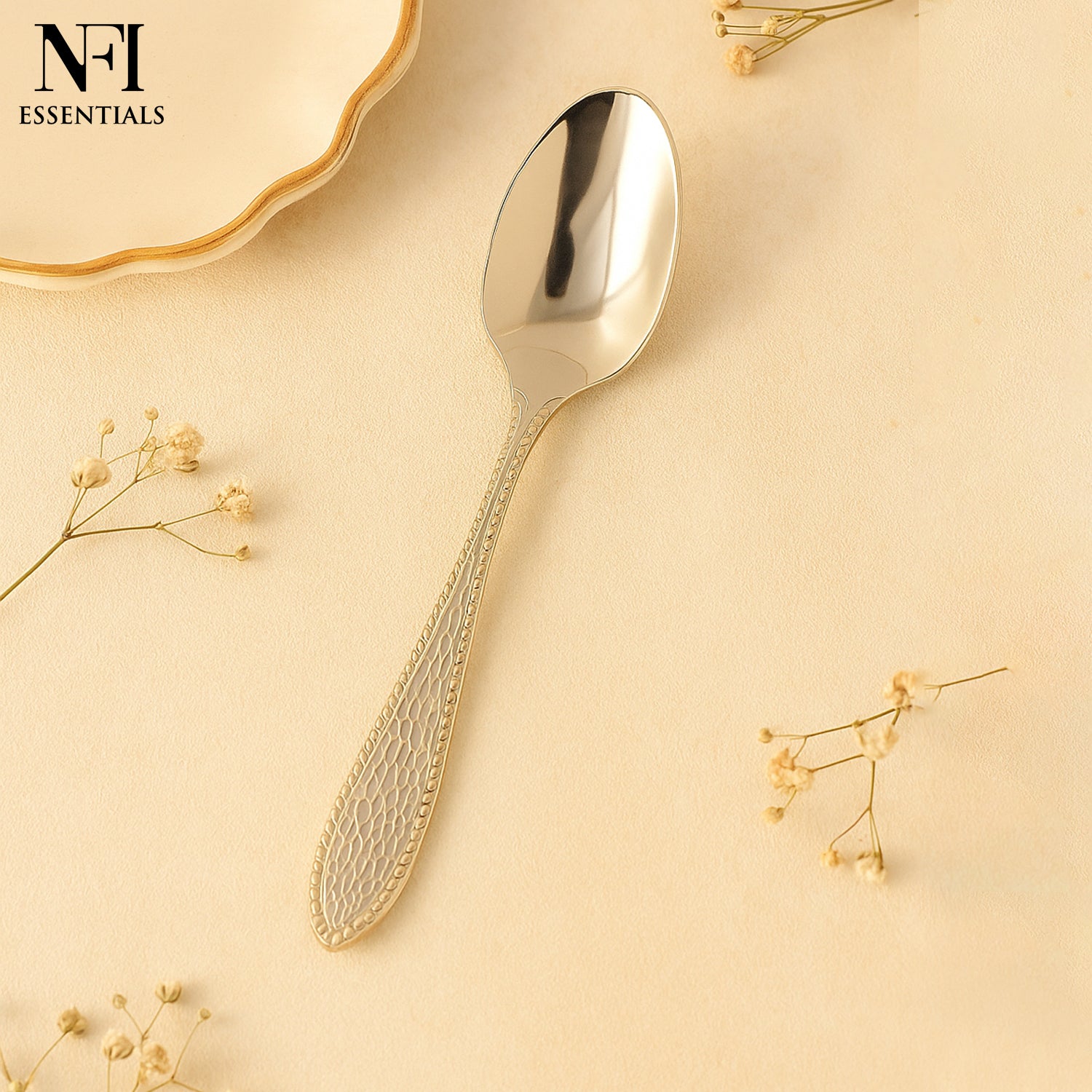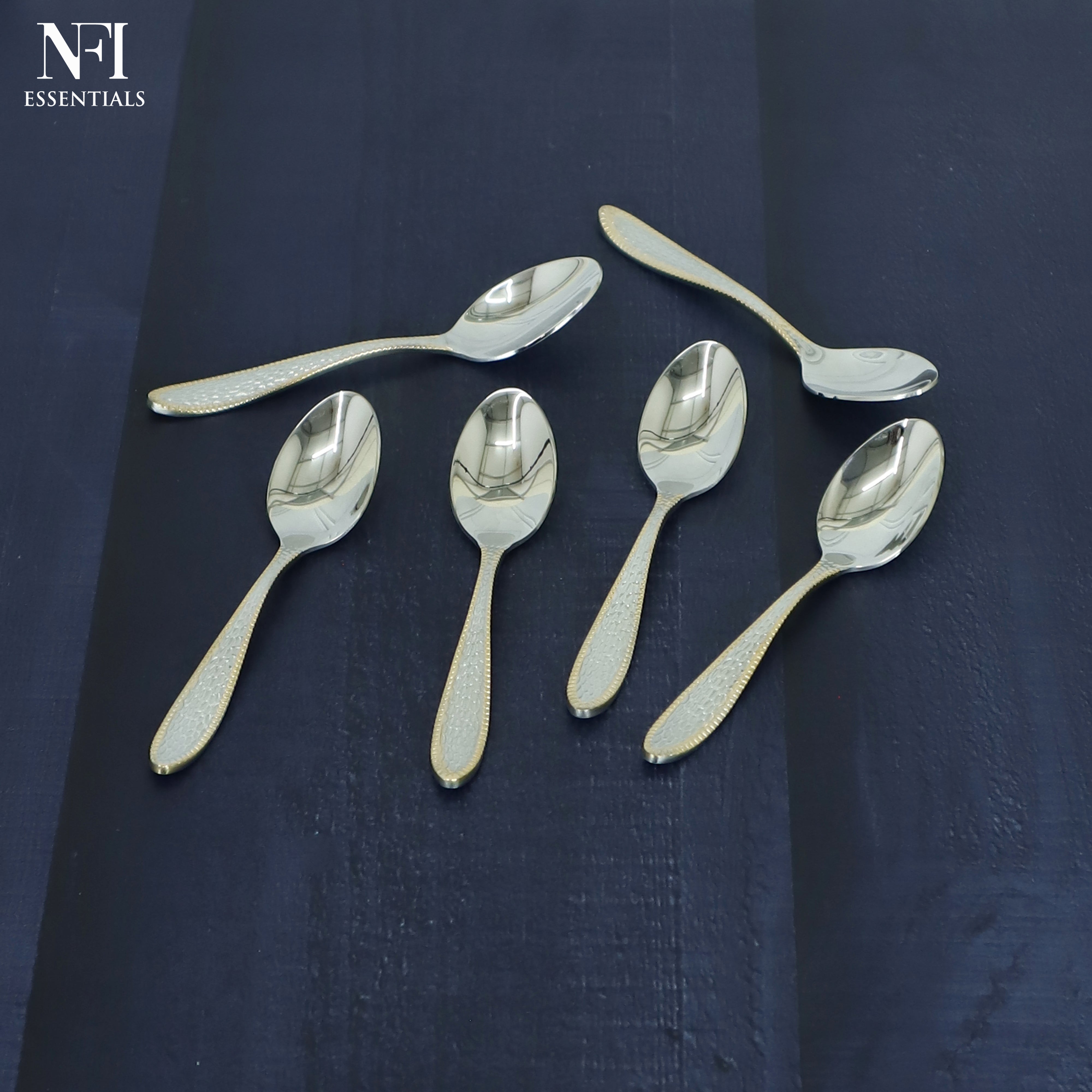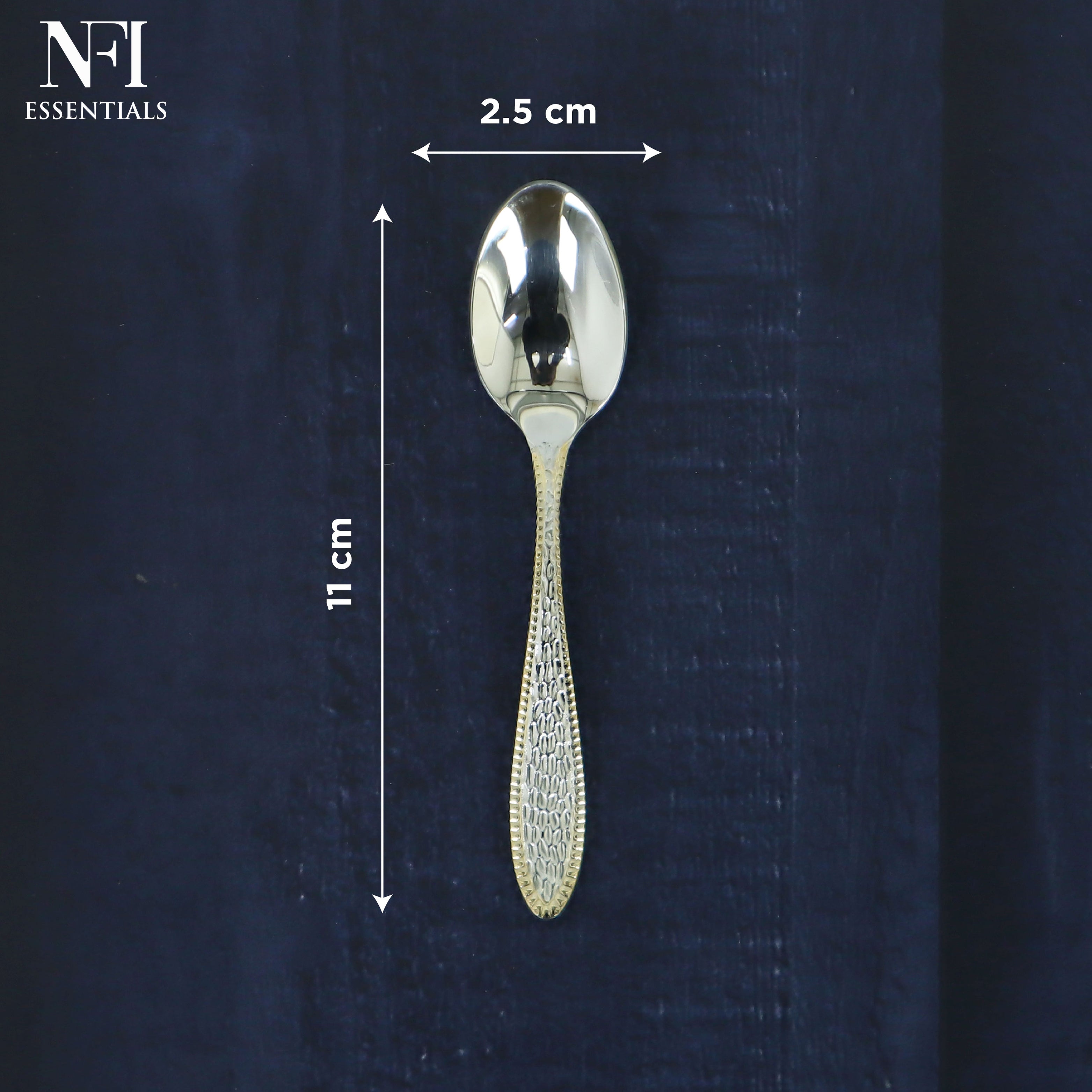 NFI essentials Stainless Steel Spoon Set of 6, Table Spoons Set 11cm, Premium Tea Spoons for Home & Kitchen, Mirror Polished, Rust-Resistant Luxury Dinning Tableware Dinner Spoon Cutlery
