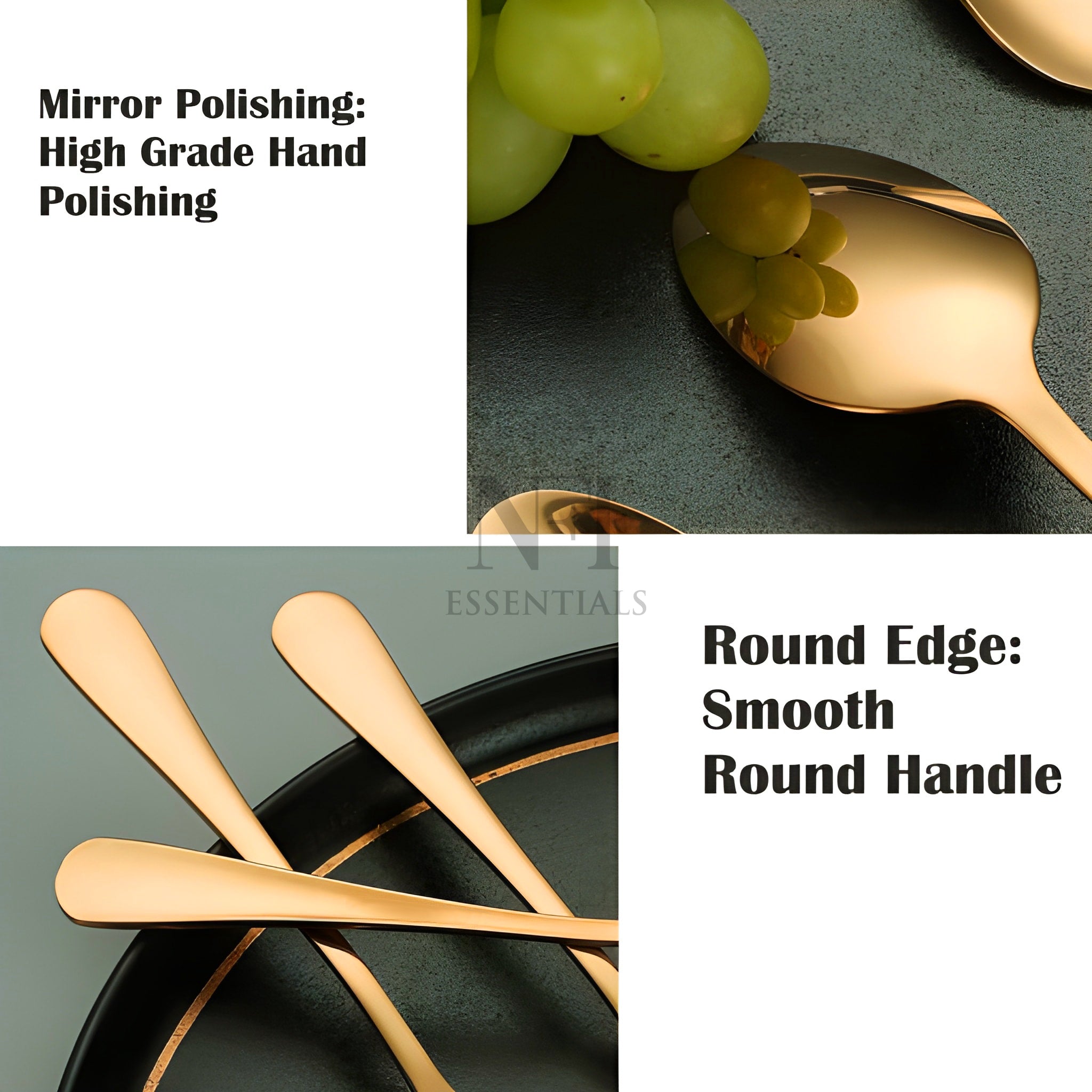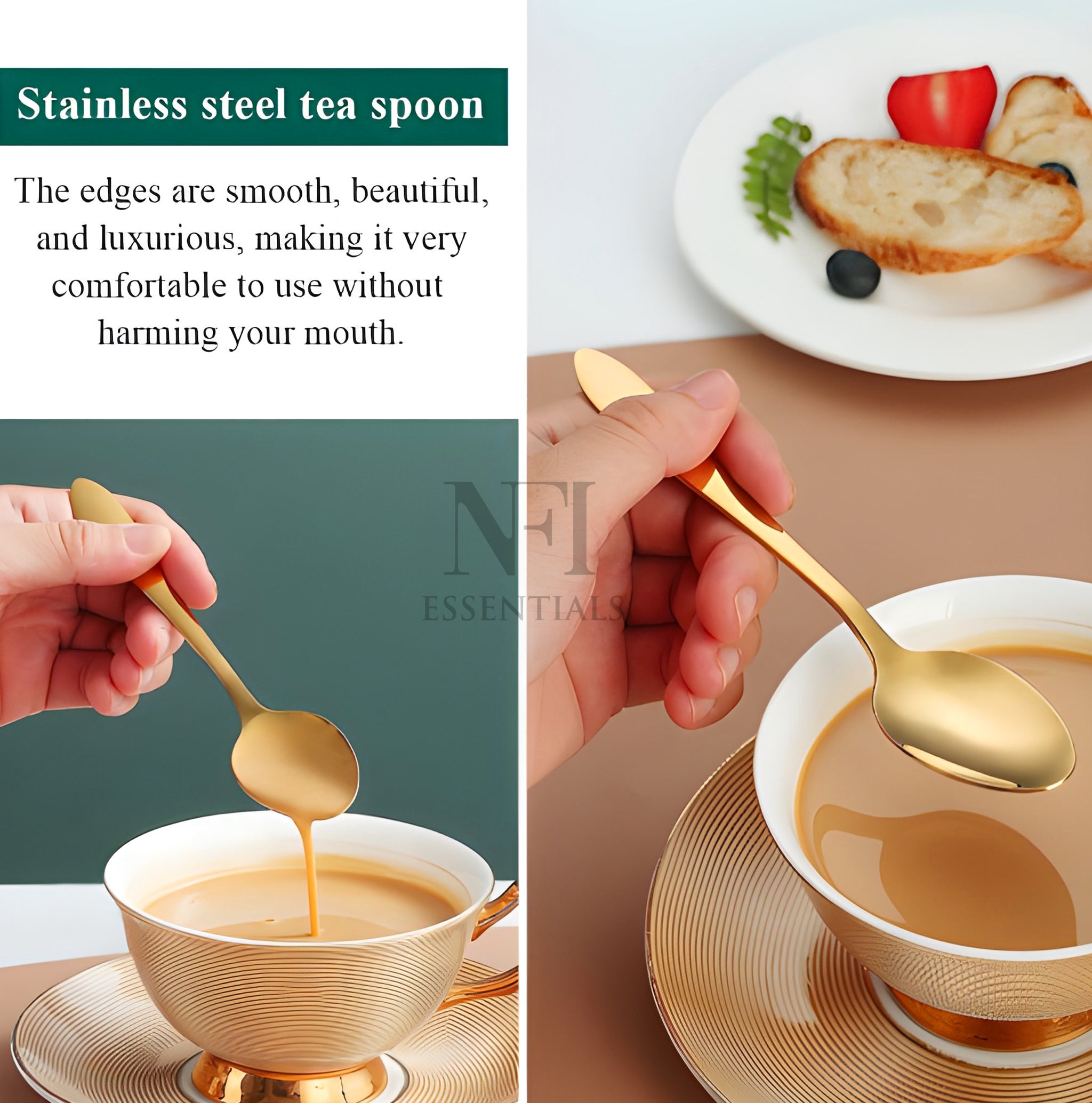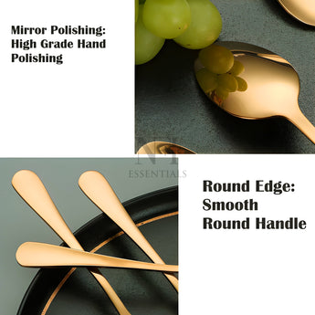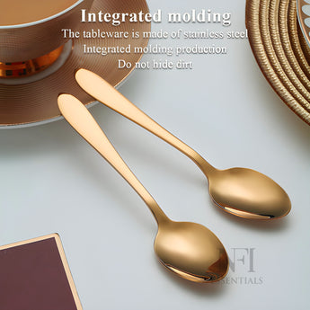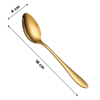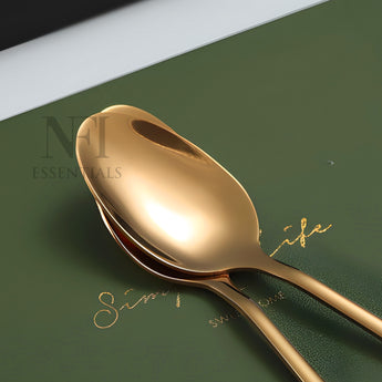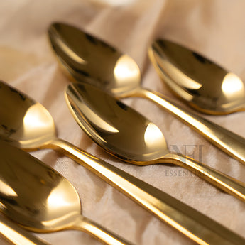 Elevate your dining experience with this beautifully designed set of 6 premium stainless steel spoons. Meticulously crafted for style, strength, and daily usability, this spoon set seamlessly blends functionality with elegance. Whether you're serving dessert, stirring your evening tea, or hosting guests at a special dinner, these spoons bring a refined and polished touch to your table. Each spoon is shaped to perfection, featuring a smooth, contoured handle and a glossy mirror finish that reflects timeless sophistication. Designed with ergonomic comfort in mind, the spoons are easy to grip and perfectly balanced for a luxurious feel during use. Made from high-grade stainless steel for maximum durability, corrosion resistance, and long-lasting shine. Built to handle daily use without losing structure or polish. Polished to a smooth, glossy surface that adds a touch of sophistication to every meal. The design is timeless, making it suitable for both casual and formal dining settings. These spoons are not just beautiful—they’re also comfortable to use. The contoured handle offers a firm, comfortable grip while the balanced design ensures effortless handling during meals. Ideal for a wide variety of uses such as eating desserts, stirring tea or coffee, serving rice or snacks, or enjoying soups and cereals. A perfect addition to any kitchen, cafe, restaurant, or dining table. Designed for convenience, these spoons are easy to clean and dishwasher safe. They resist stains and retain their shine over time, ensuring hassle-free maintenance.