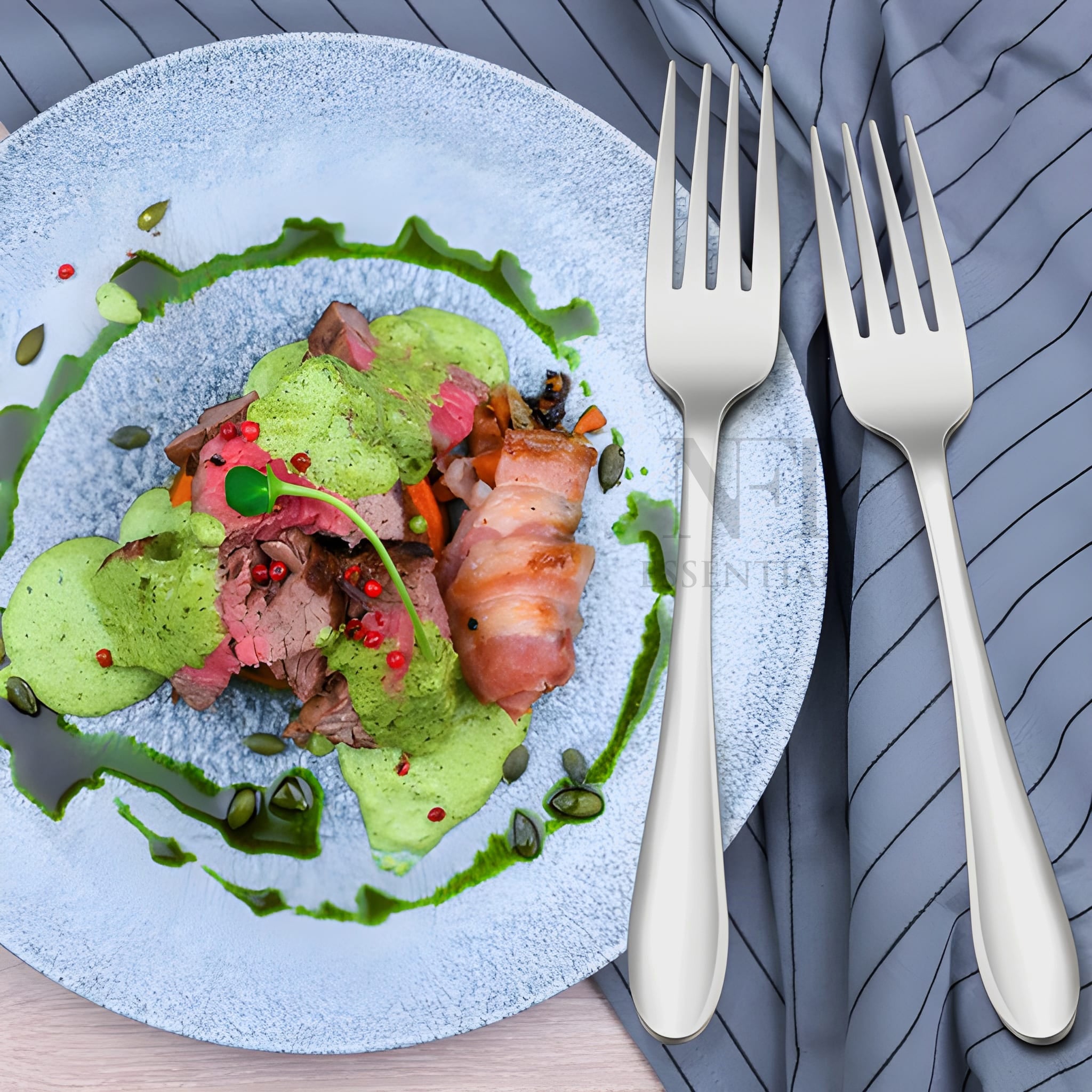 Upgrade your dining table with this premium set of stainless steel forks designed for both elegance and performance. Each fork is crafted with meticulous attention to detail, featuring a smooth, polished surface and a streamlined design that brings a sophisticated touch to any meal. Whether you're hosting a formal dinner, setting the table for a festive occasion, or simply enjoying everyday meals, these forks deliver a seamless balance of style, comfort, and durability. The ergonomic handle is thoughtfully shaped to ensure a comfortable and secure grip for users of all ages, making it easy to handle while eating. Their durable stainless steel construction ensures they won’t bend, rust, or lose their shine even after frequent use. Easy to clean and dishwasher safe, this set offers the perfect combination of low maintenance and high-end presentation. Suitable for home use, restaurants, buffets, and gifting, these forks are a versatile and essential addition to your kitchen.
