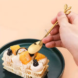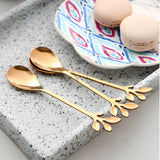 NFI essentials 6 Pcs Leaf Design Coffee Tea Spoons Set, Stainless Steel 13cm Golden Retro Dessert Espresso Spoons Cutlery Kitchen Tableware, Perfect for Mixing & Stirring