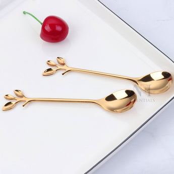 Elevate your dining and entertaining experience with this elegant set of golden spoons, designed to combine beauty, functionality, and artistic charm. Made from premium stainless steel, each spoon is polished to a smooth, mirror-like finish and coated in a luxurious golden hue that adds a sophisticated touch to any table setting. The standout feature is the unique handle, crafted to resemble delicate tree branches—adding a whimsical and nature-inspired element to your cutlery collection. Perfectly sized for tea, coffee, desserts, or condiments, these spoons are versatile enough for everyday use and stylish enough for formal events. Whether you're hosting a dinner party, serving guests during high tea, or simply enjoying a quiet moment with your favorite dessert, these spoons bring elegance to the occasion. Durable, rust-resistant, and easy to clean, they’re designed for long-lasting use without compromising on aesthetic appeal. Their eye-catching design also makes them an excellent gift idea for weddings, birthdays, housewarmings, or festive celebrations. Whether for personal use or gifting, this set of golden spoons is a charming and practical addition to any modern kitchen or dining room.