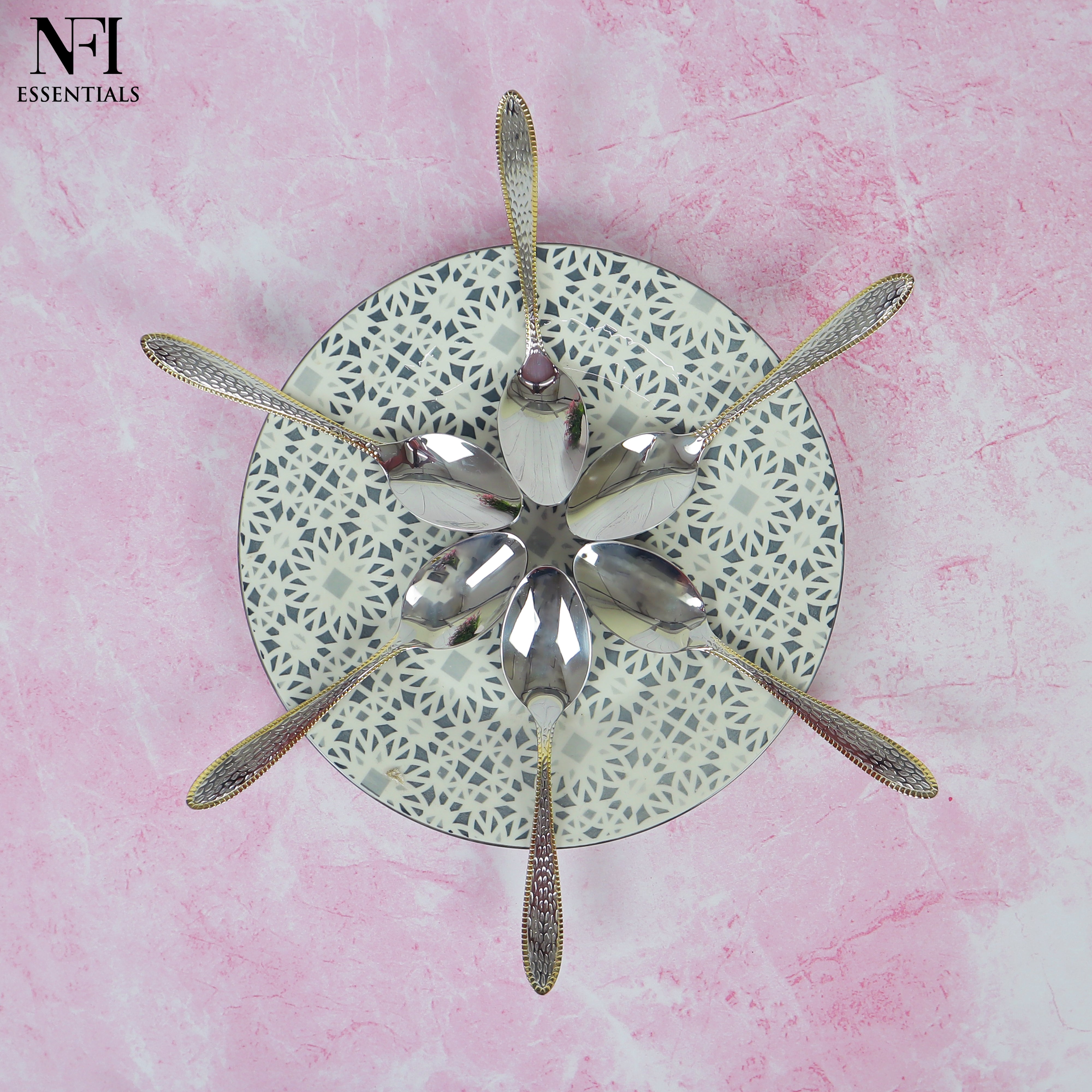 NFI essentials Stainless Steel Spoon Set of 6, Table Spoons Set 18cm, Premium Tea Spoons for Home & Kitchen, Mirror Polished, Rust-Resistant Luxury Dinning Tableware Dinner Spoon Cutlery