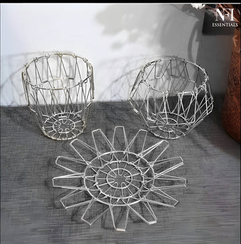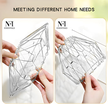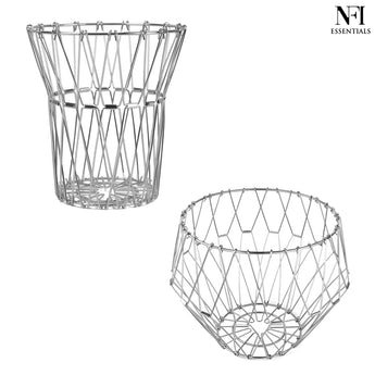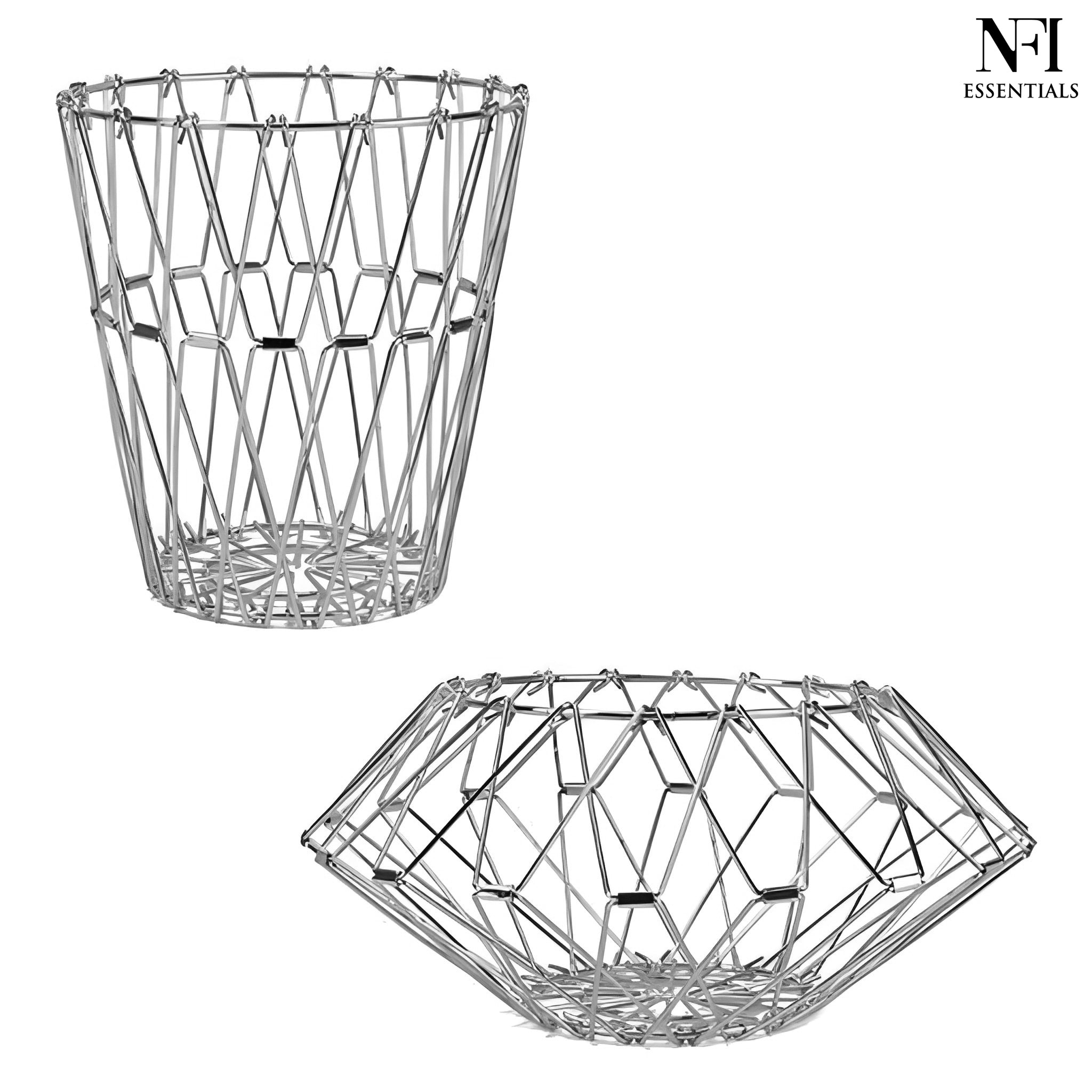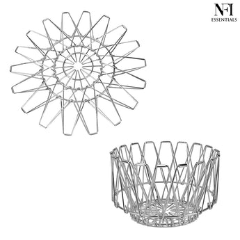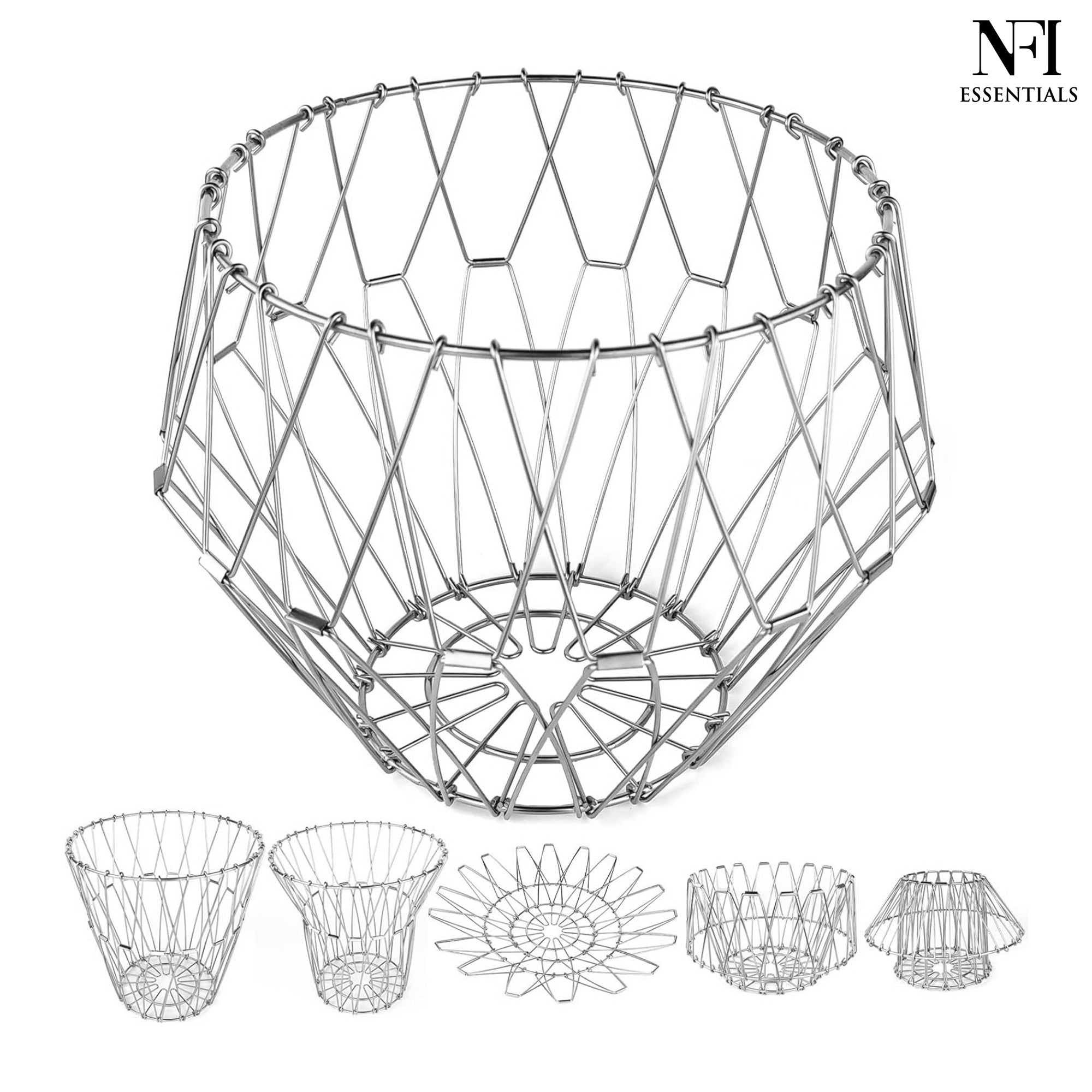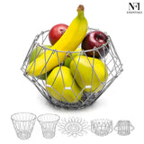 NFI essentials Fruit Basket Stainless Steel Multipurpose Folding Vegetable Bowl Basket for Kitchen, Home, Dining Table, 8 Shapes Modern Flexible Wire deformable Bowl for Home Decor