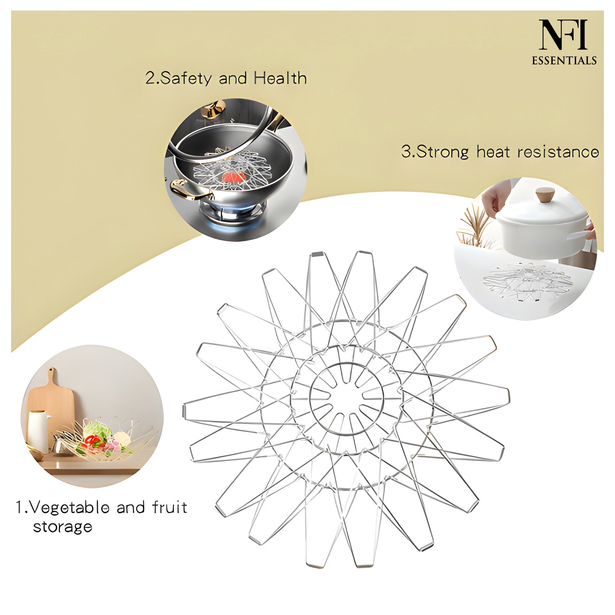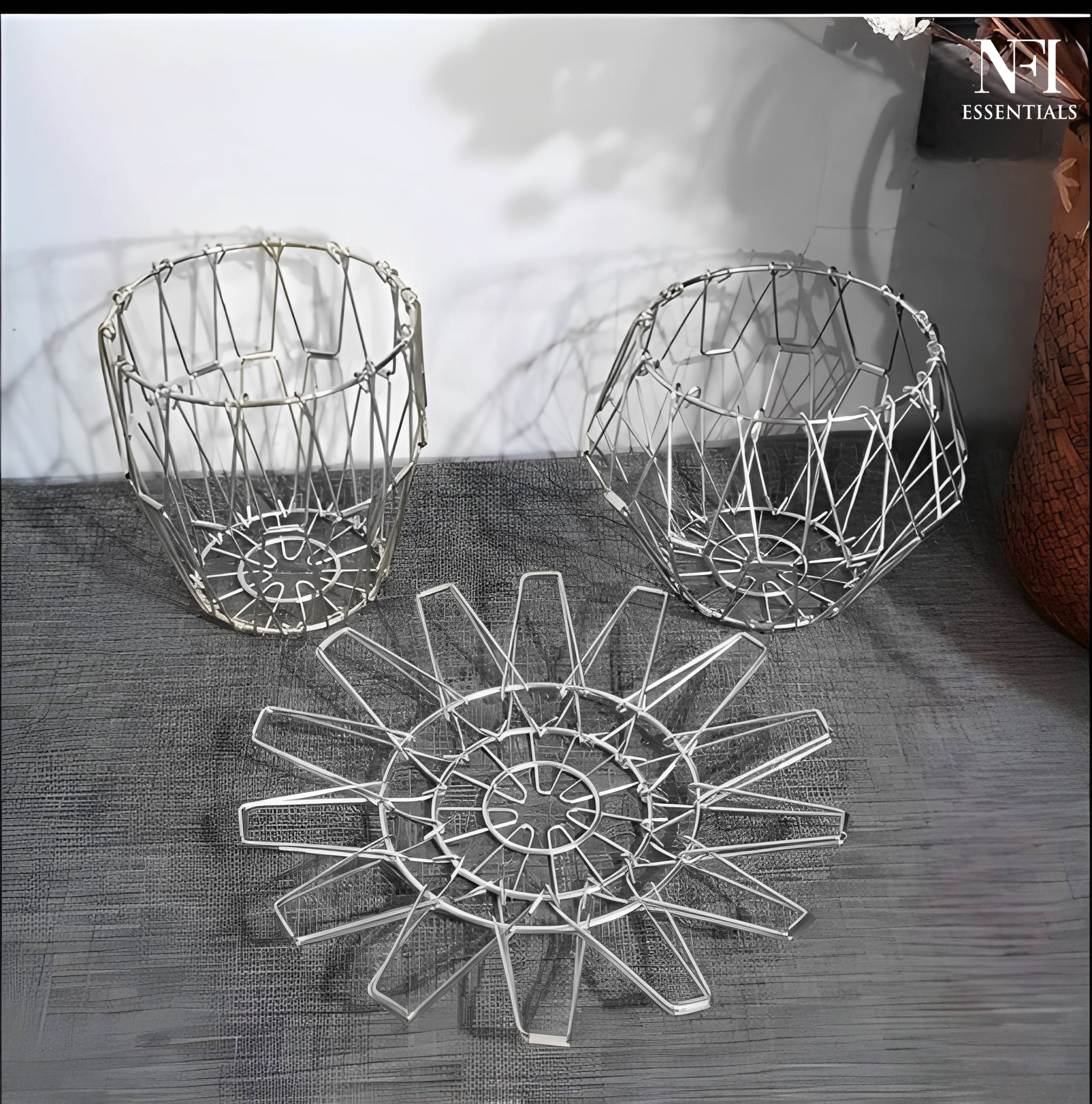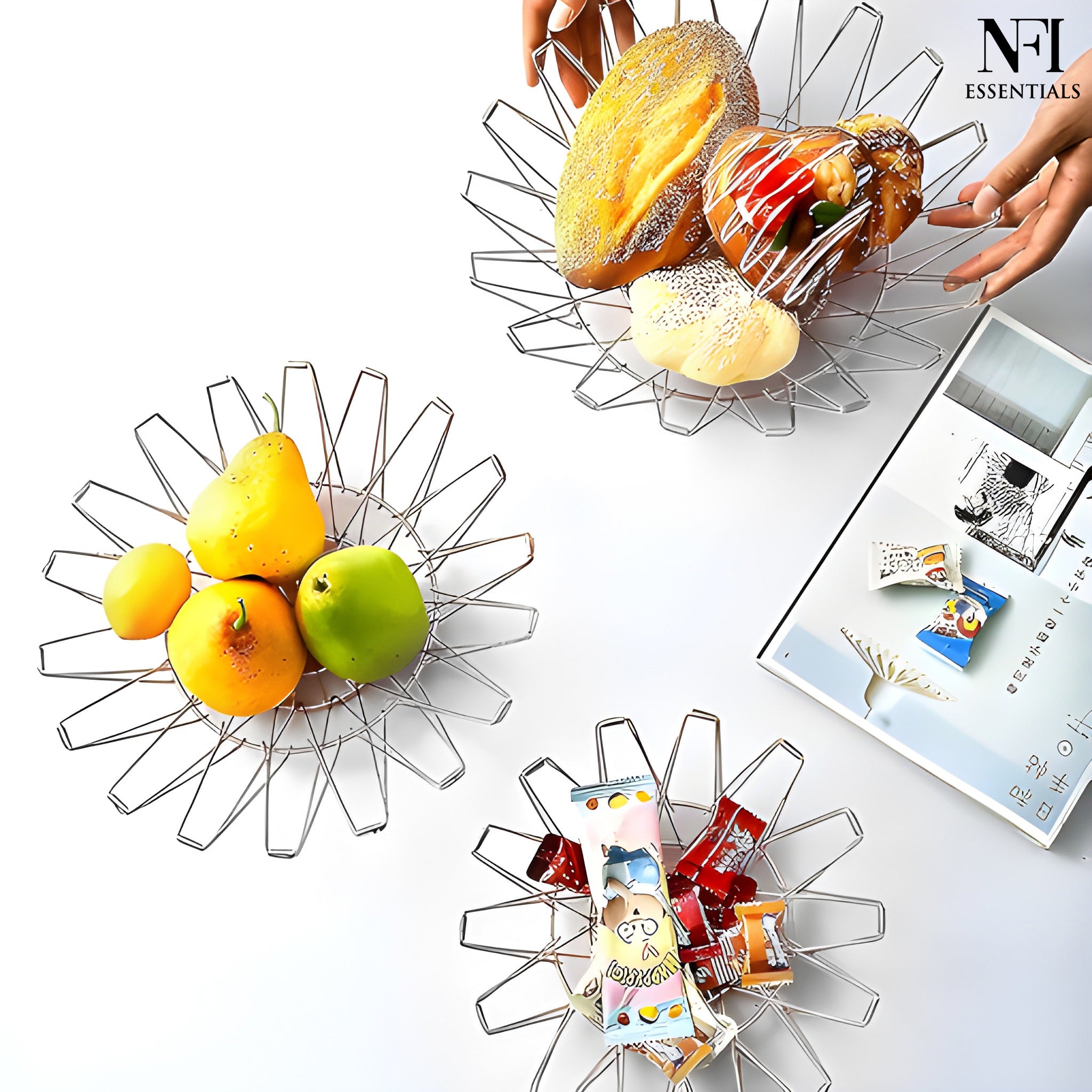 NFI essentials Fruit Basket Stainless Steel Multipurpose Folding Vegetable Bowl Basket for Kitchen, Home, Dining Table, 8 Shapes Modern Flexible Wire deformable Bowl for Home Decor