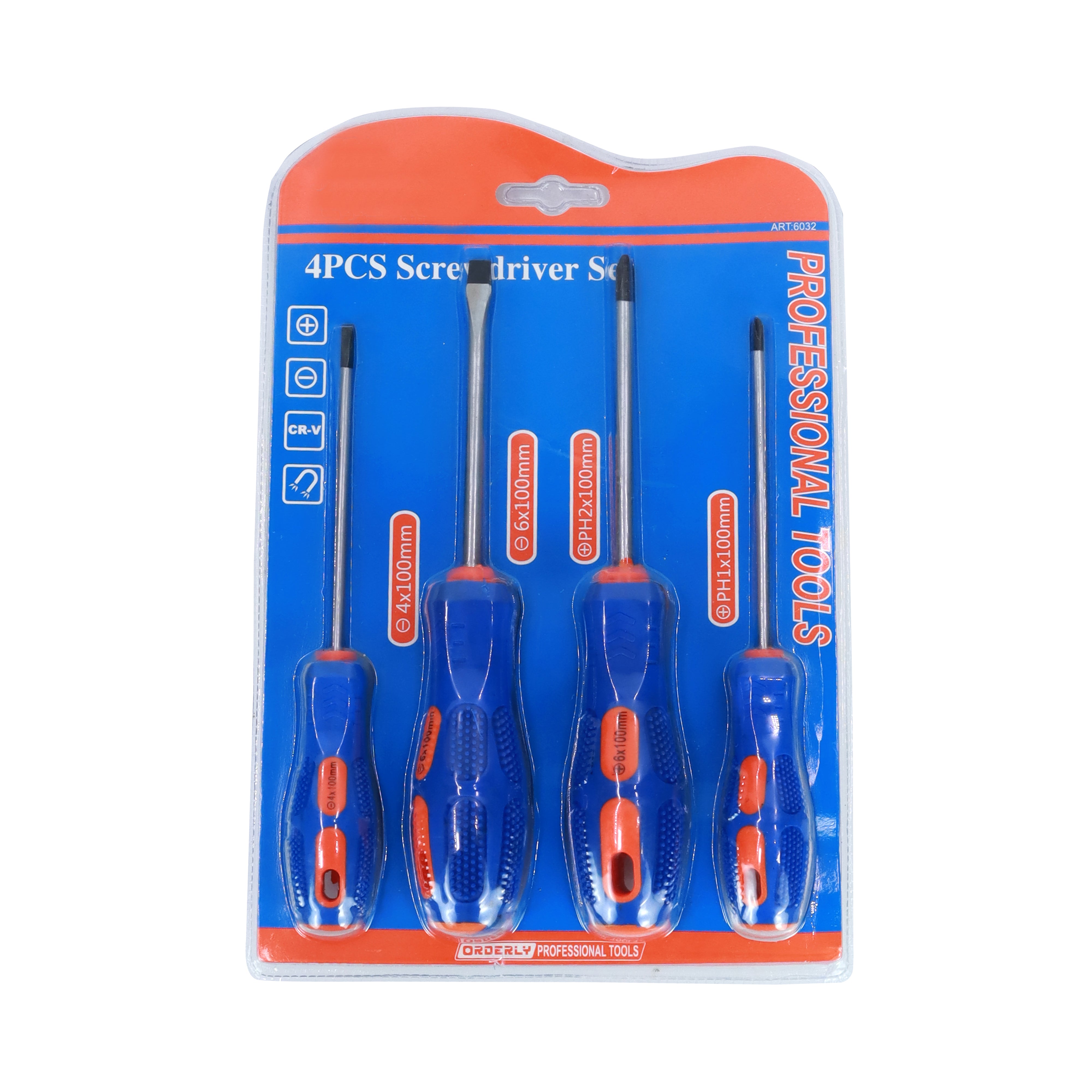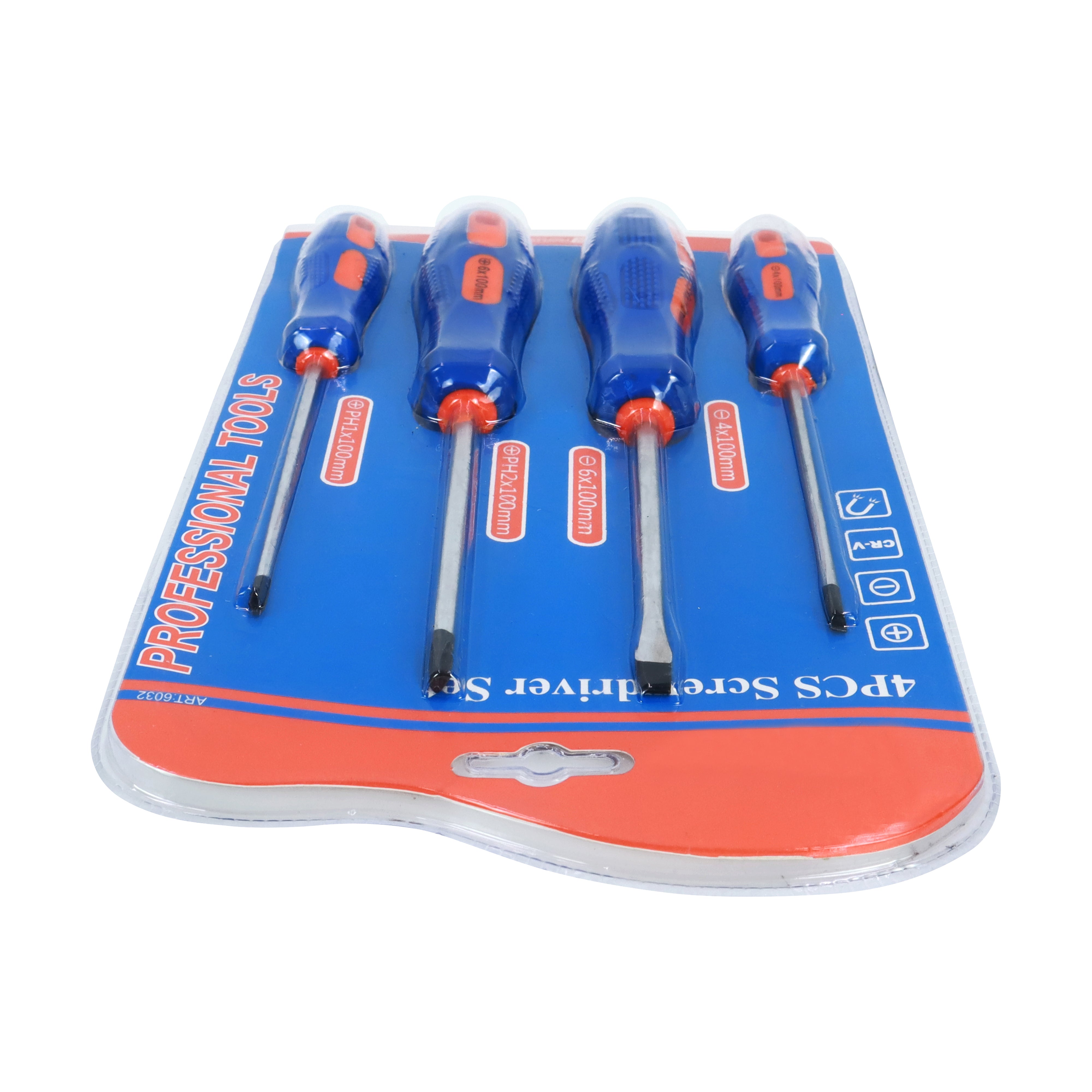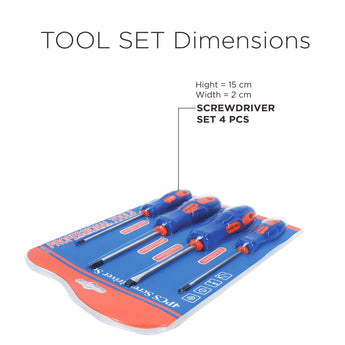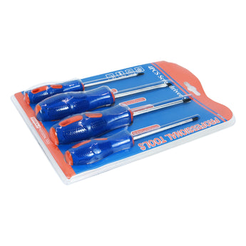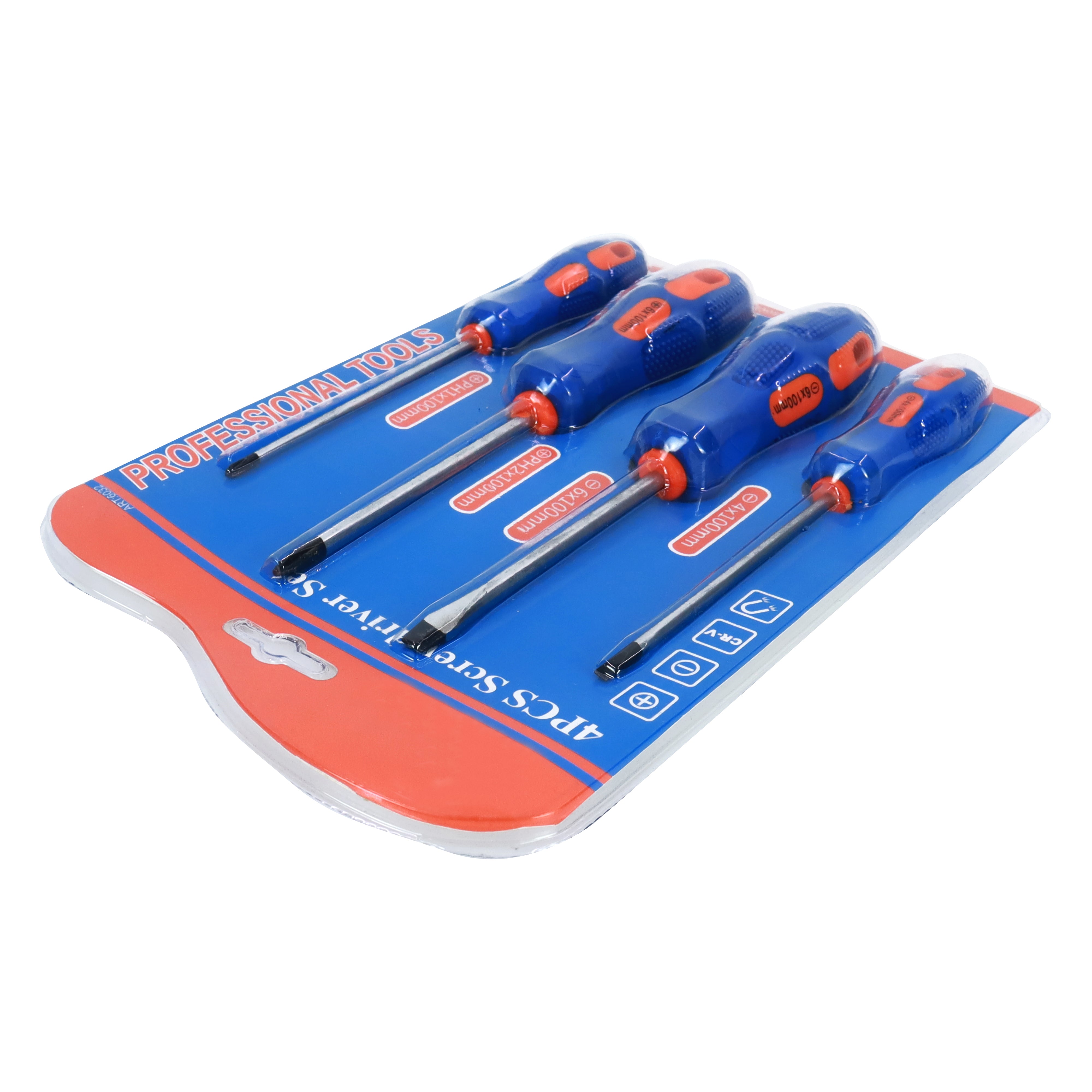 Screwdriver Kit comes with 4 of the most frequently used screwdrivers includes 2 Slotted & 2 Phillips Tip Screwdriver. Professional screwdriver kit - Made of Alloy Steel, high-end tool steel, the top material in screwdrivers. Excellent impact resistance provides ultra-high torque and hardness and its strength and toughness and other comprehensive properties far exceed those of chrome vanadium steels. Non-slip and soft handle provides you a comfortable hold as well as maximum control at work. Cushion grip handle for comfort and control, with ergonomic TPR handle, it helps you to use very easily. Designed for a wide variety of projects and repairs in domestic appliances, furniture, automotive, factory. The blades are differentially hardened and tempered to resist wear or bending. Whether you are a mechanic or a DIY enthusiast, Meet your work needs, It can be widely used in most projects such as home appliance maintenance, furniture assembly, automobile repair and so on.