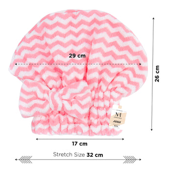 NFI essentials Microfiber Hair Towel Cap Warp Super Absorbent Wet Hair Drying Head Turban, Pookie Bow Knot for Girls Salon Quick Dry Shower with Button for Women