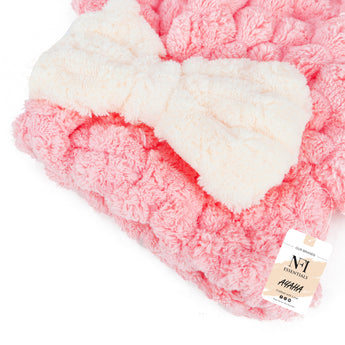 NFI essentials Microfiber Hair Towel Cap Warp Super Absorbent Wet Hair Drying Head Turban, Pookie Bow Knot for Girls Salon Quick Dry Shower with Button for Women (Copy) (Copy)