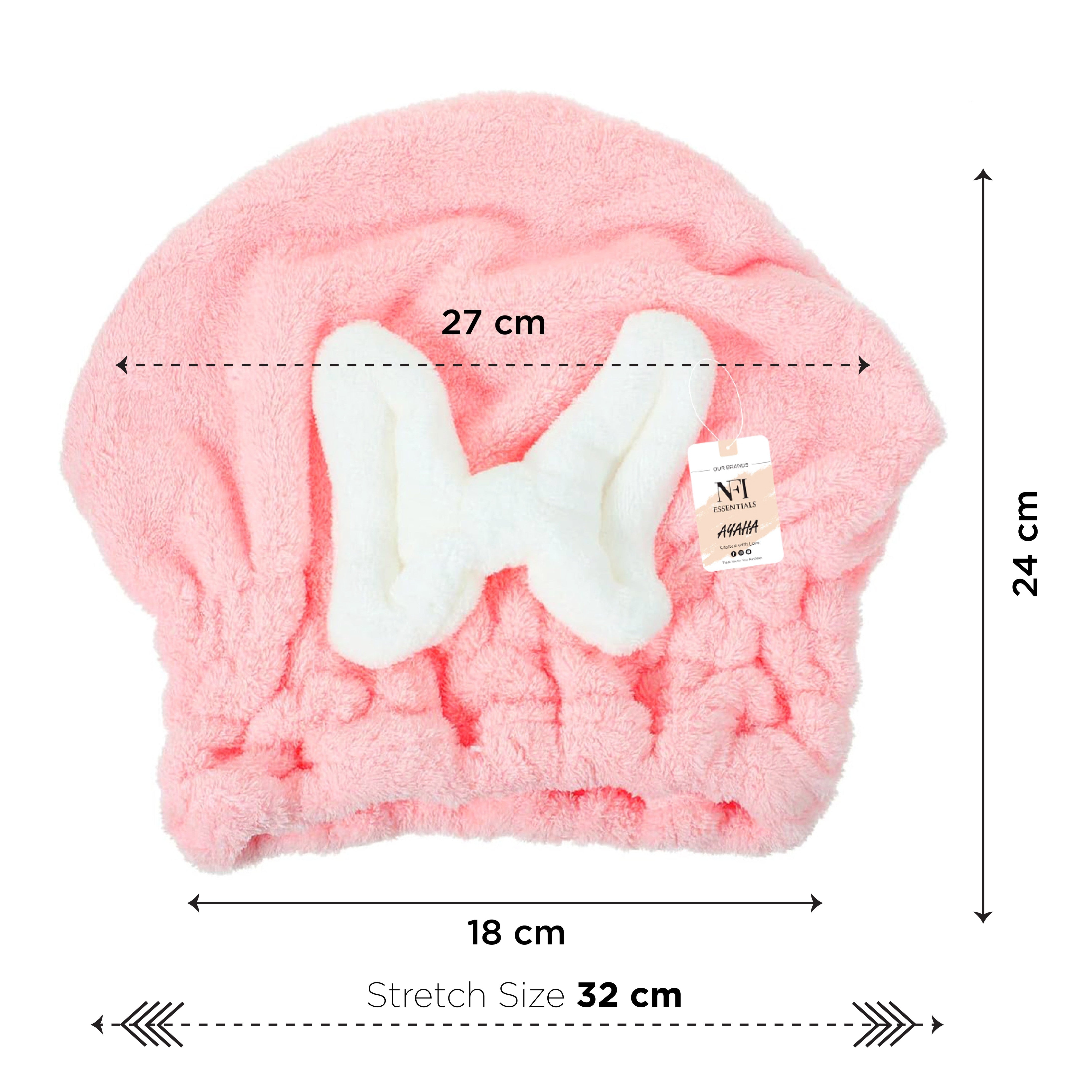 NFI essentials Microfiber Hair Towel Cap Warp Super Absorbent Wet Hair Drying Head Turban, Pookie Bow Knot for Girls Salon Quick Dry Shower with Button for Women (Copy) (Copy) (Copy) (Copy)