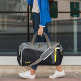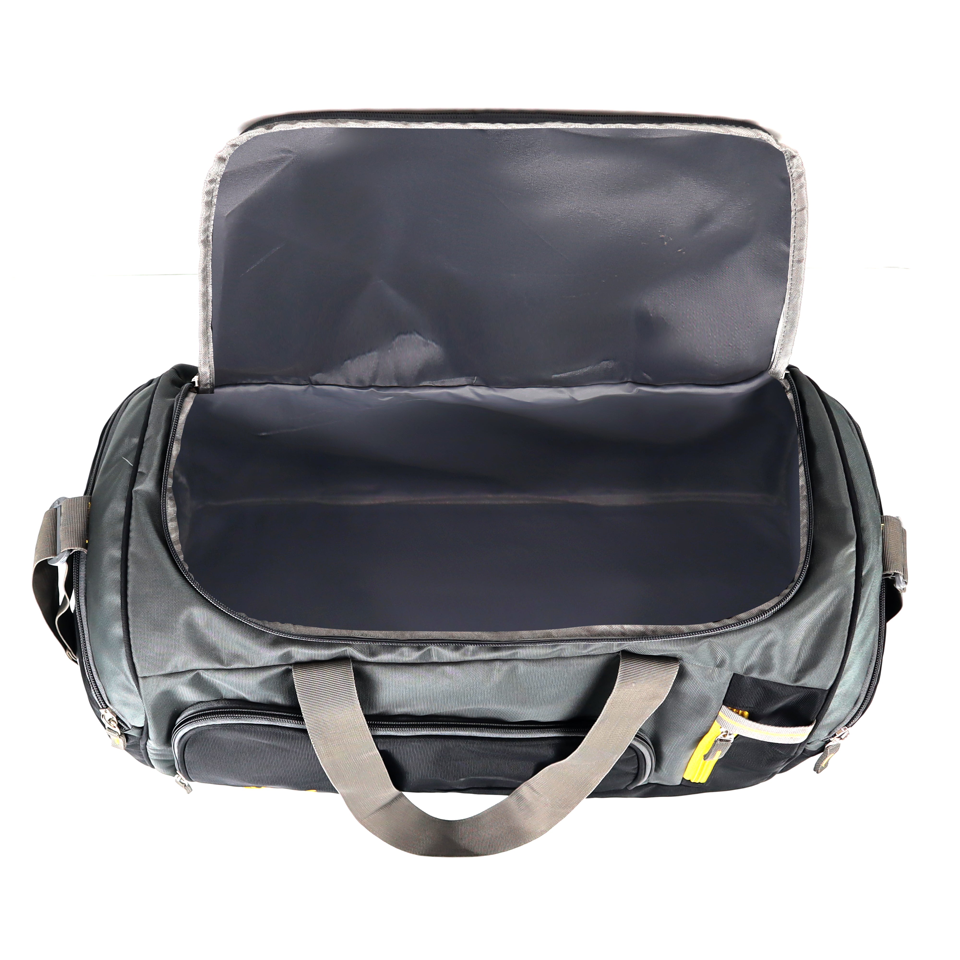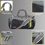 "Travel Duffle Bag From NFI essentials, A Perfect Pick For The Frequent Travellers & Explorers. Multipurpose Travelling Duffle Bag. Perfect For Carrying In Outdoor Activities like Weekend & Business Trips, Camping, Shopping, Parties, Outing, Long Drive, Travelling, gym, Sports, Causal, etc. The Casual Soft-Sided Travel Duffle Bag Features Rugged, Yet Lightweight Construction. Designed For Both Men And Women, The Bag Holds An Impressive Amount and It Can Compress Down For Compact Storage When Not In Use. The padded handle provides comfort when carrying by hand and can release stress from the bag. Handles improves the grip of the Bag. They can be taken apart to access the large main compartment. The adjustable paddes shoulder strap can be adjusted and locked to whatever length needed for carrying over the shoulder to alleviate the weight. Adjust your strap as per your need and comfort. Plenty space to hold a ton of stuff. With a huge compartment in this bag, the user can have ample space for storage. 1 main compartment keeps all stuff organized, 2 long zip pocket at front, 2 side pocket on both the sides. The two way smooth durable zippers allow easy access to inside things without getting stuck and are built to last a lifetime. The zipper has a unique design that makes it easy to open and close the bag. The corner guards of the bags support from falling or slipping and avoids any damage to the bag while traveling. With four Wear-resisting bubble-shaped rubber mats at the bottom which protect the bag from damage. You can bring this bag anywhere with you and not have to worry about making space for a bag. You could easily use this duffle bag to travel internationally. It is very spacious and roomy. The quality of the bag is good. It will be the best companion to meet your different needs."