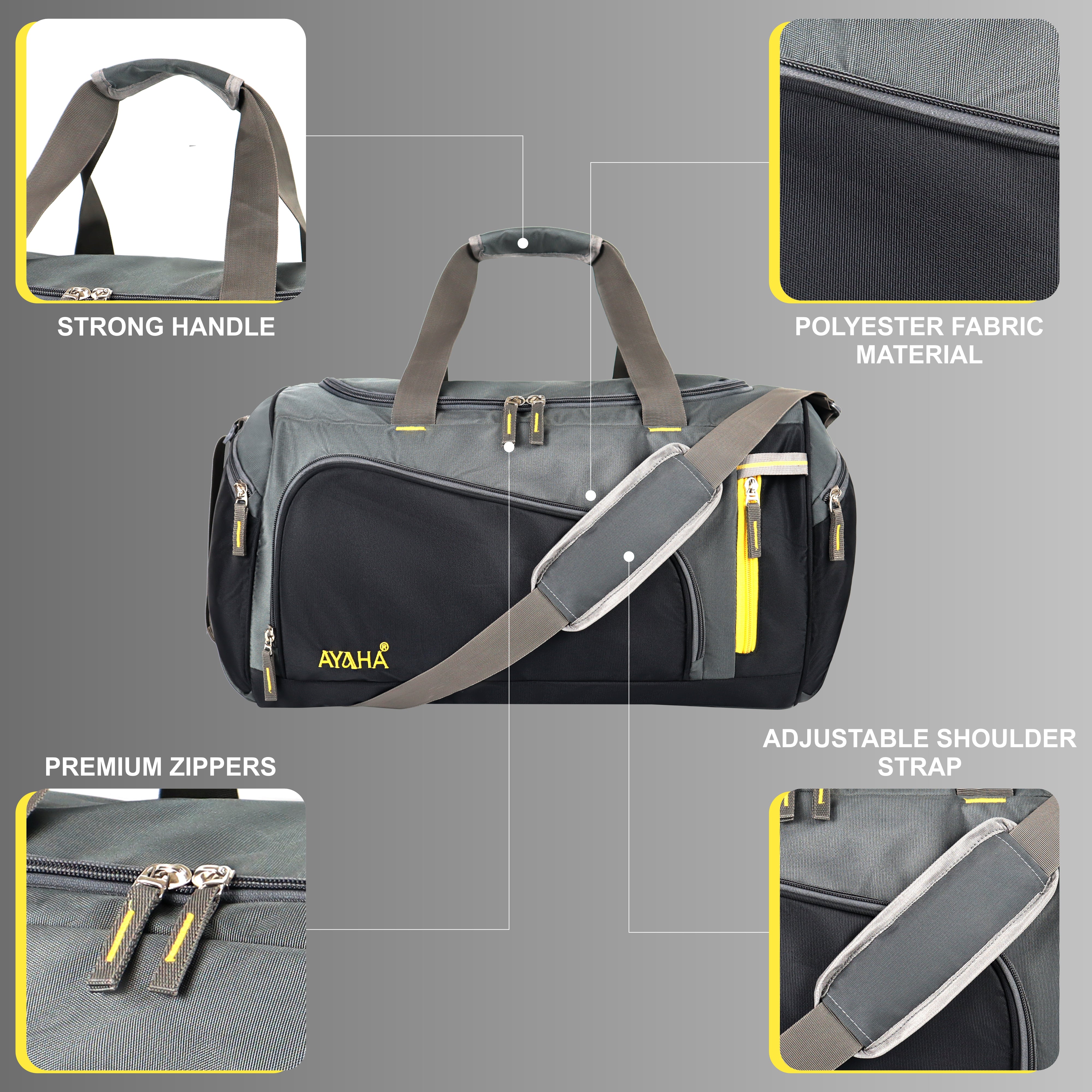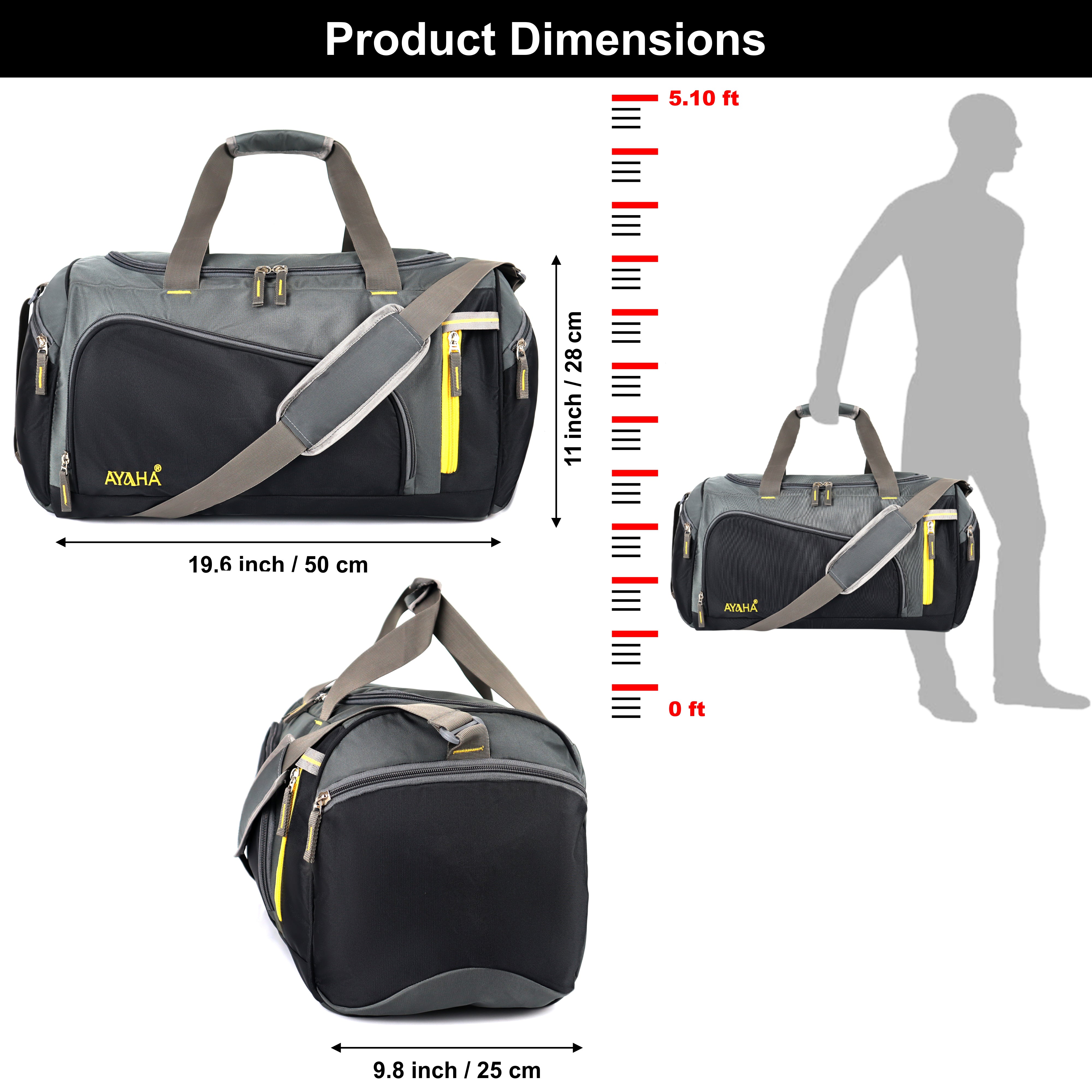 Ayaha Travel Duffle Weekender Bag 50cm, Large Luggage Bag for Travelling, Multi Purpose Handbag with Adjustable Handles (Grey)