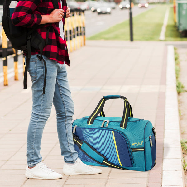 Ayaha Travel Duffle Weekender Bag 50cm, Large Luggage Bag for Travelling, Multi Purpose Handbag with Adjustable Handles (I86-D2 Airport Blue)