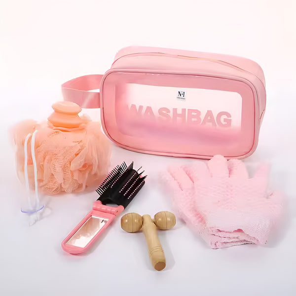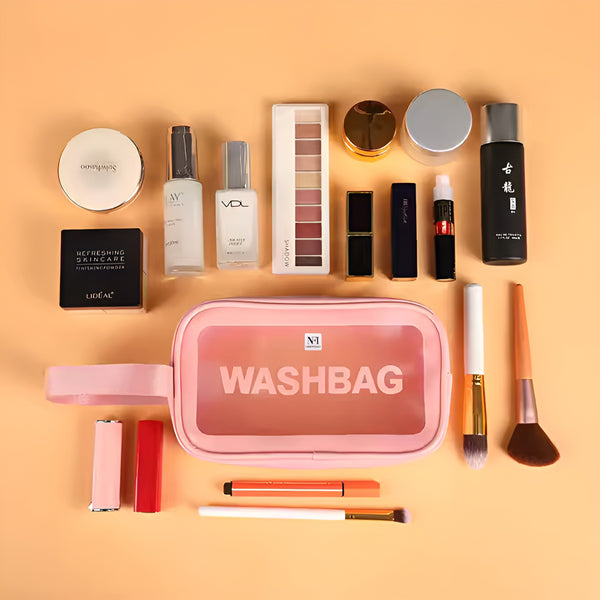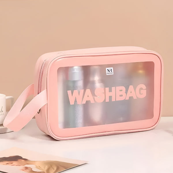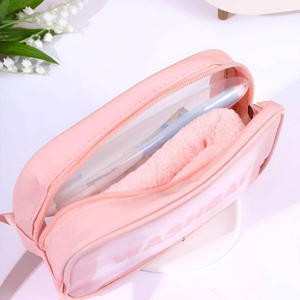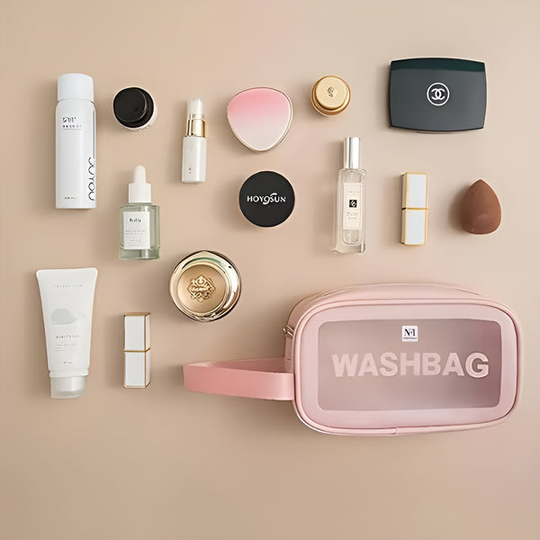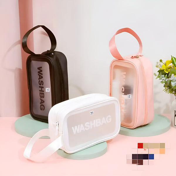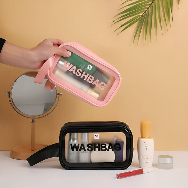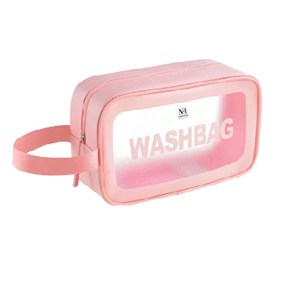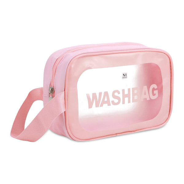 NFI essentials Transparent Cosmetic Organizer Bag with Handle, Washbag Pouch Travel Makeup Bag Portable Carry Toiletry Storage Bag Makeup Pouch for Women Girls