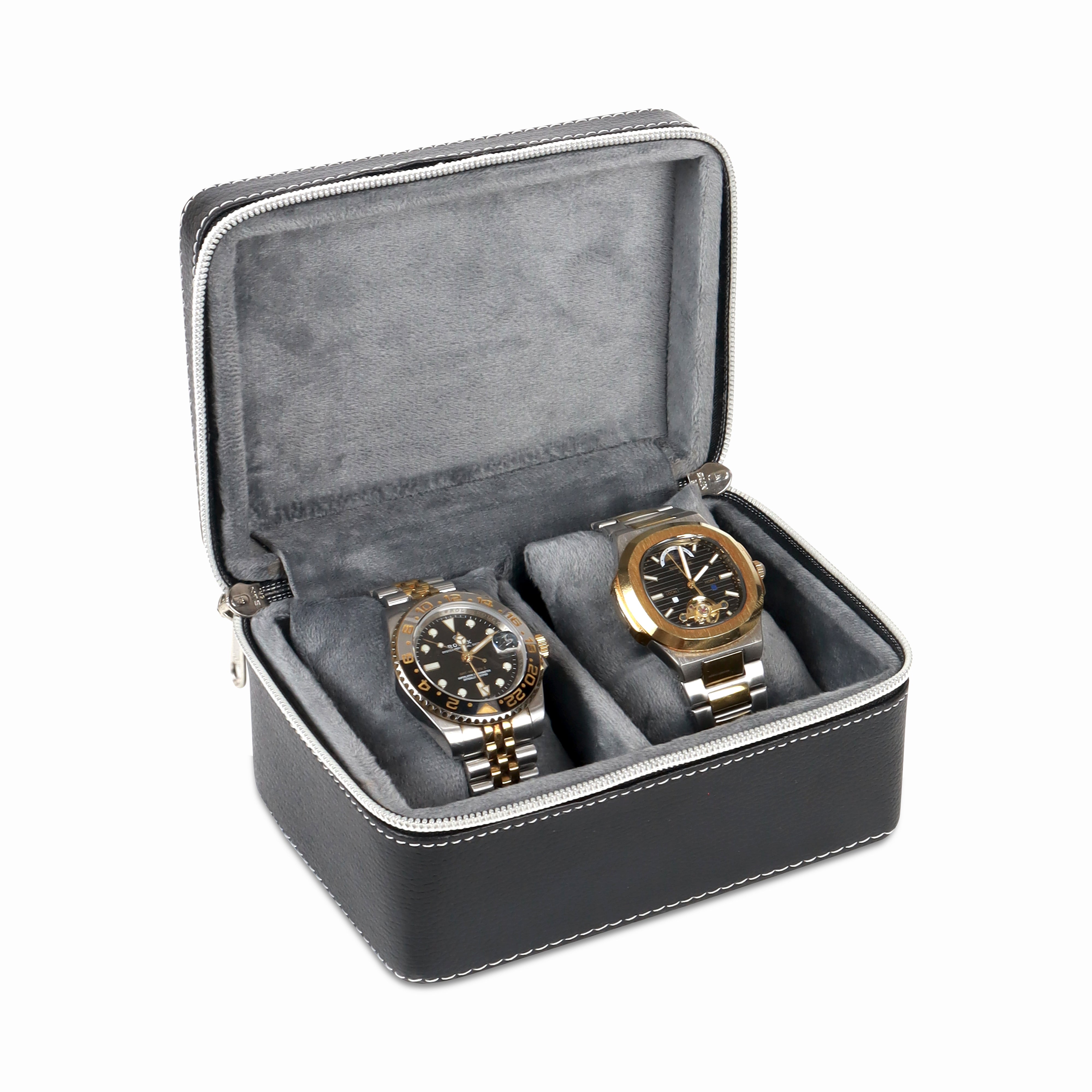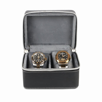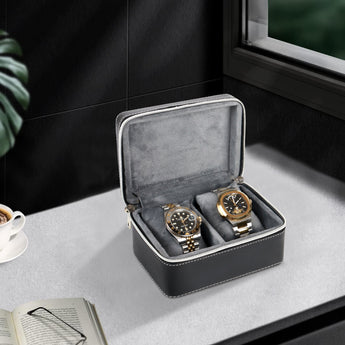 NFI essentials Watch Box for Men & Women Watch Organizer Case In 2 Slots of watches Watch Holder with Professional Leather Watch case Watch Collection Box Unisex (I111-2 Slot-Black)