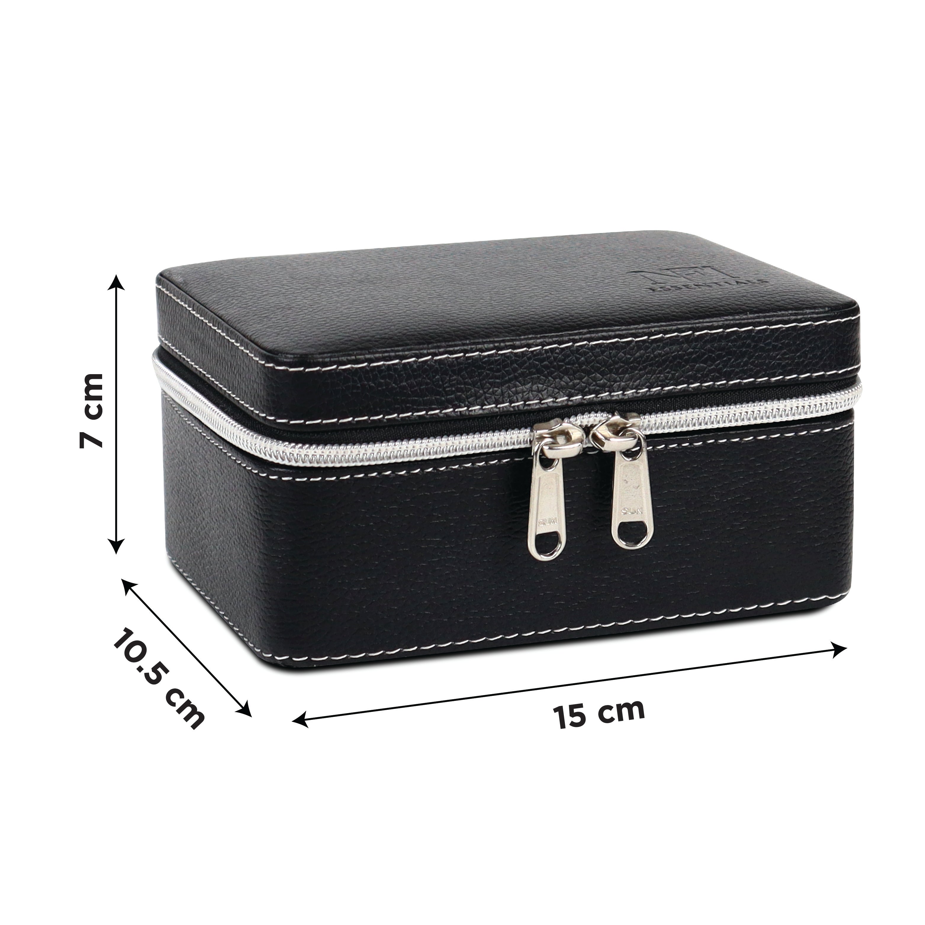 NFI Essentials presents this brand new black color watch box. For all of those watch enthusiasts, this is the perfect style box to store and carry your favorite timepieces. Long lasting, durable and strong construction box with elegant hinges. Beautiful and elegant, it will cushion the owner's watches securely on individual pillows. As you are buying directly from the manufacturer so you know you're getting the best prices available and master piece. Each compartment have enough space for your watches. You can easily insert watches having huge dial The interior of this watch case is lined with a premium grey velvet that not only protects the underbellies of your watches but also speaks quality. The six watch pillows compress down to allow almost any sized watch to fit comfortably