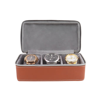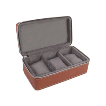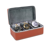 NFI essentials Watch Box for Men & Women Watch Organizer Case In 3 Slots of watches Watch Holder with Professional Leather Watch case Watch Collection Box Unisex (Tan)