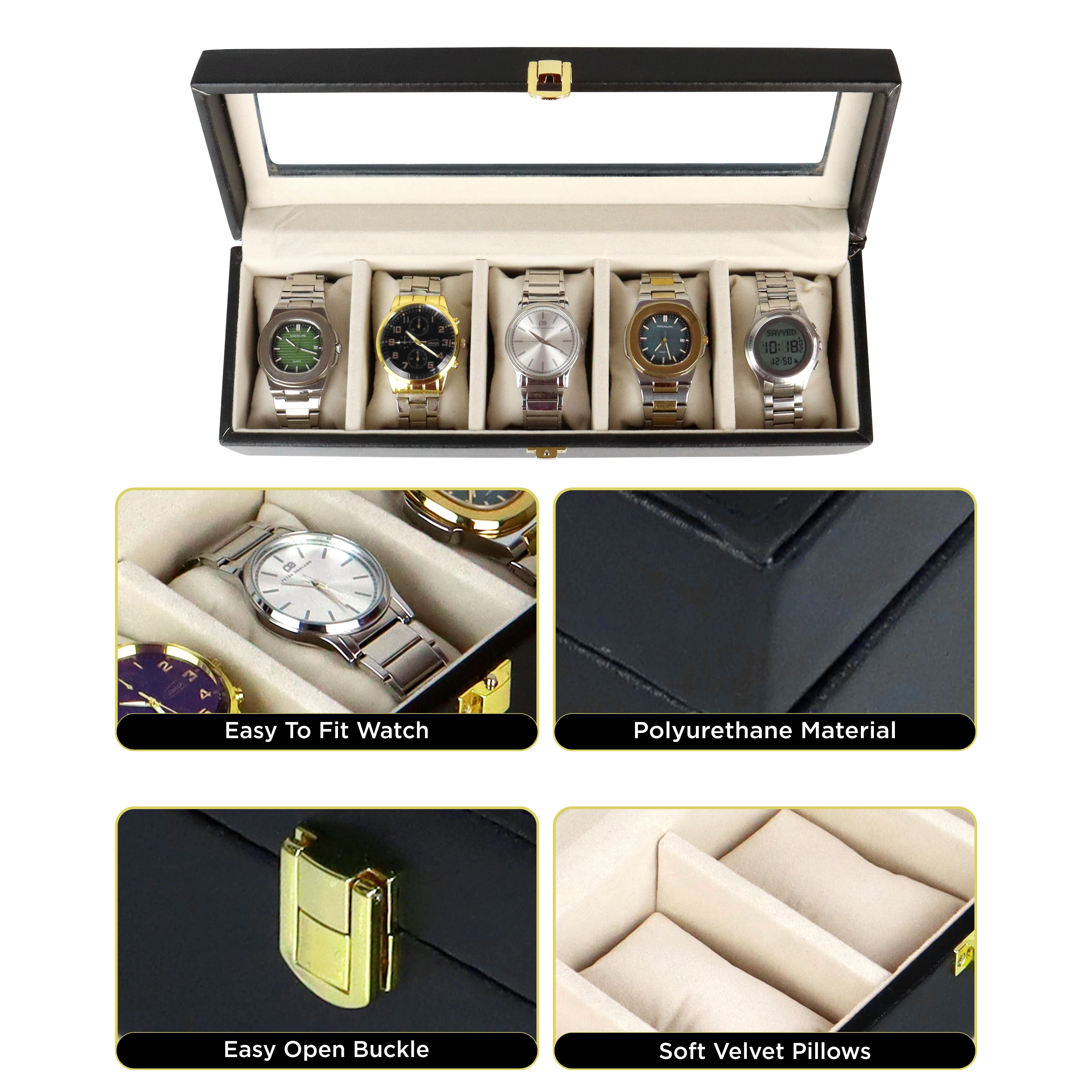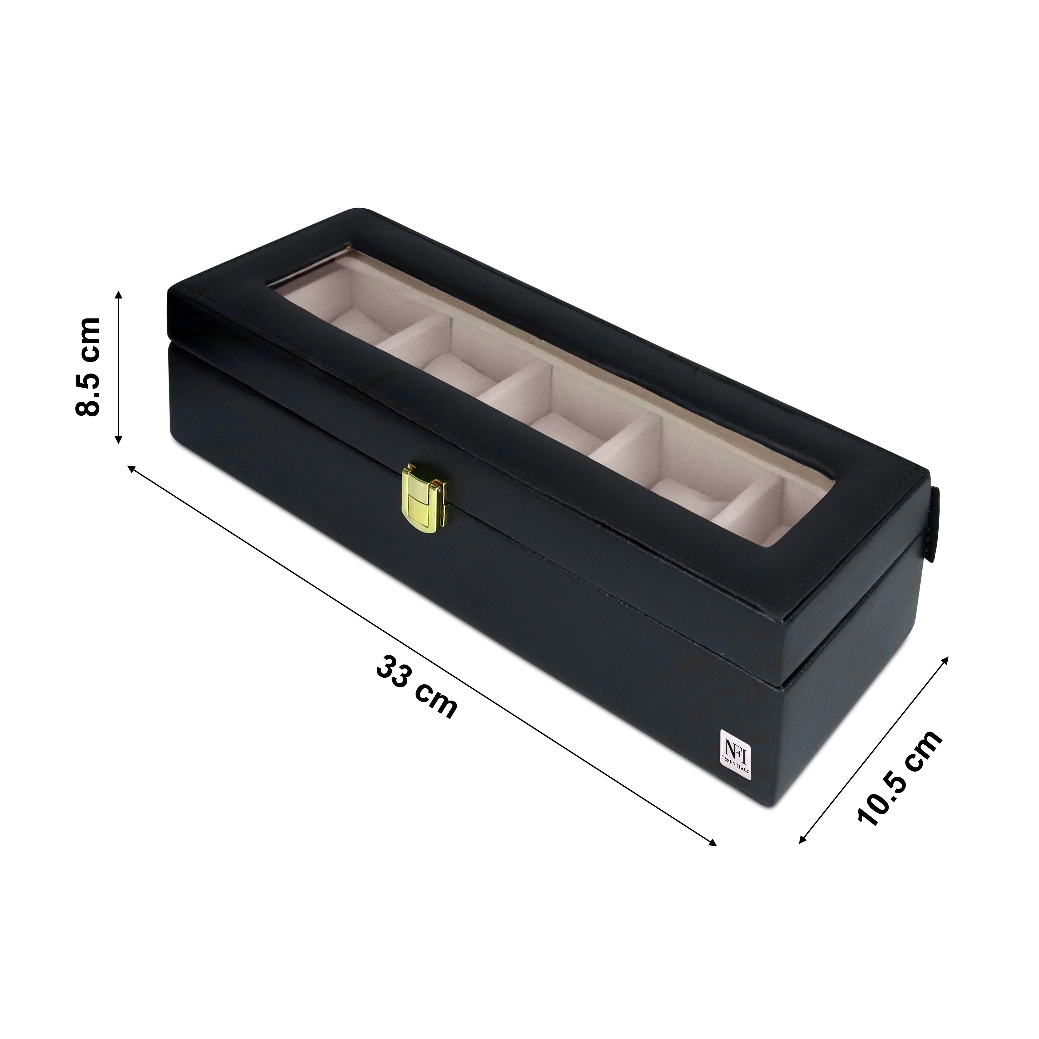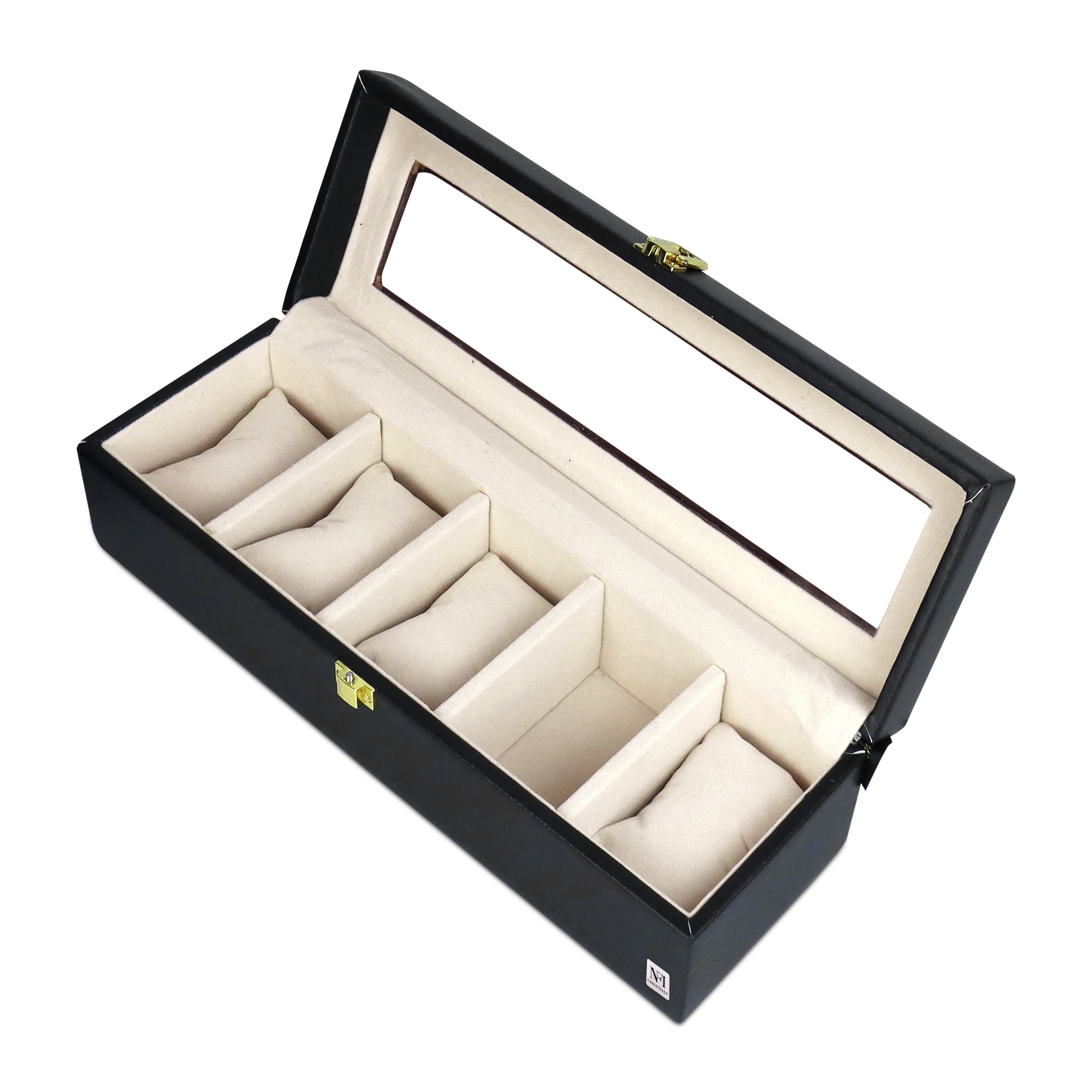 NFI essentials Watch Box Organizer Case for Men and Women, 5 Slot Storage Box for Watches, Watch Holder Box Transparent Display Look on Top