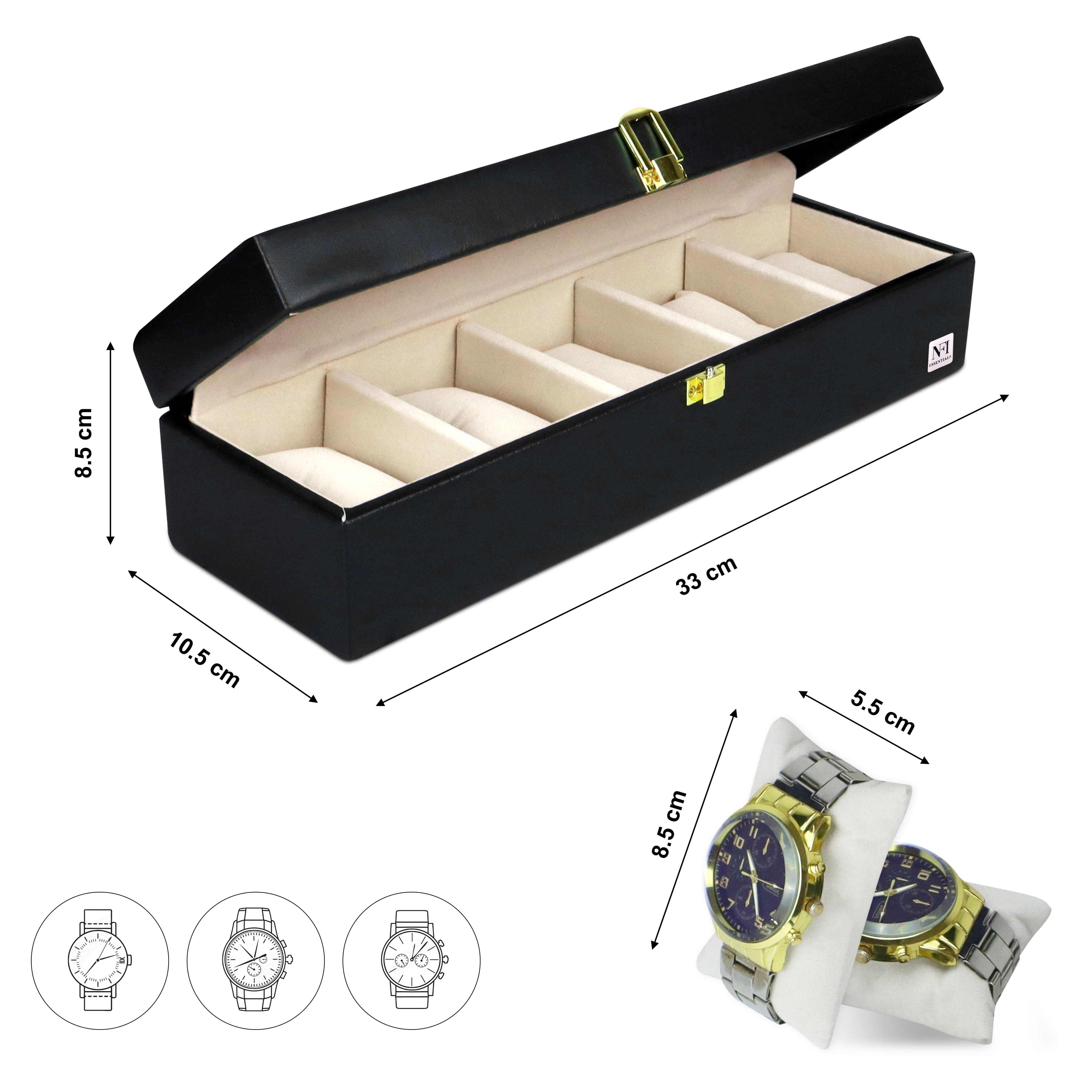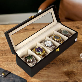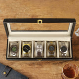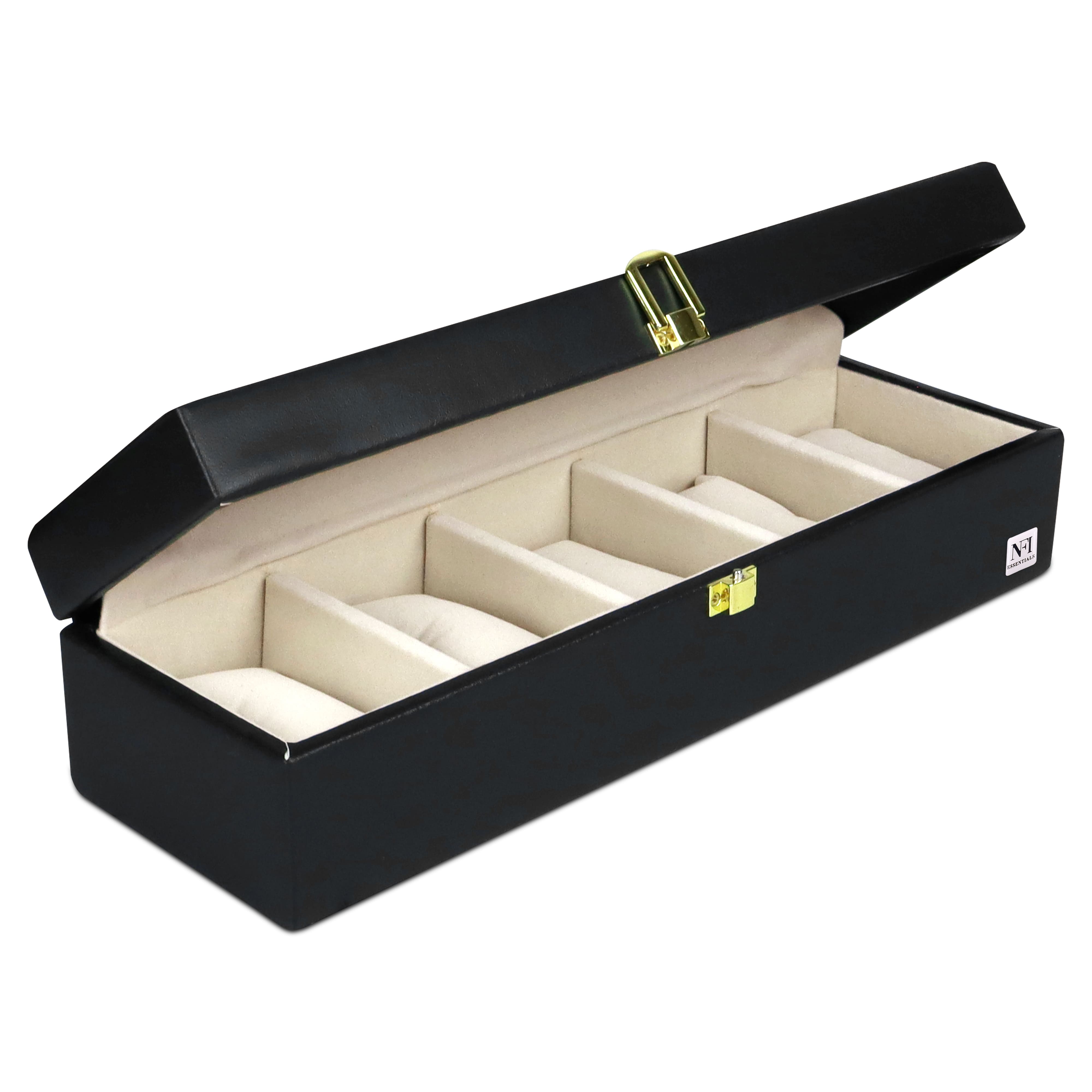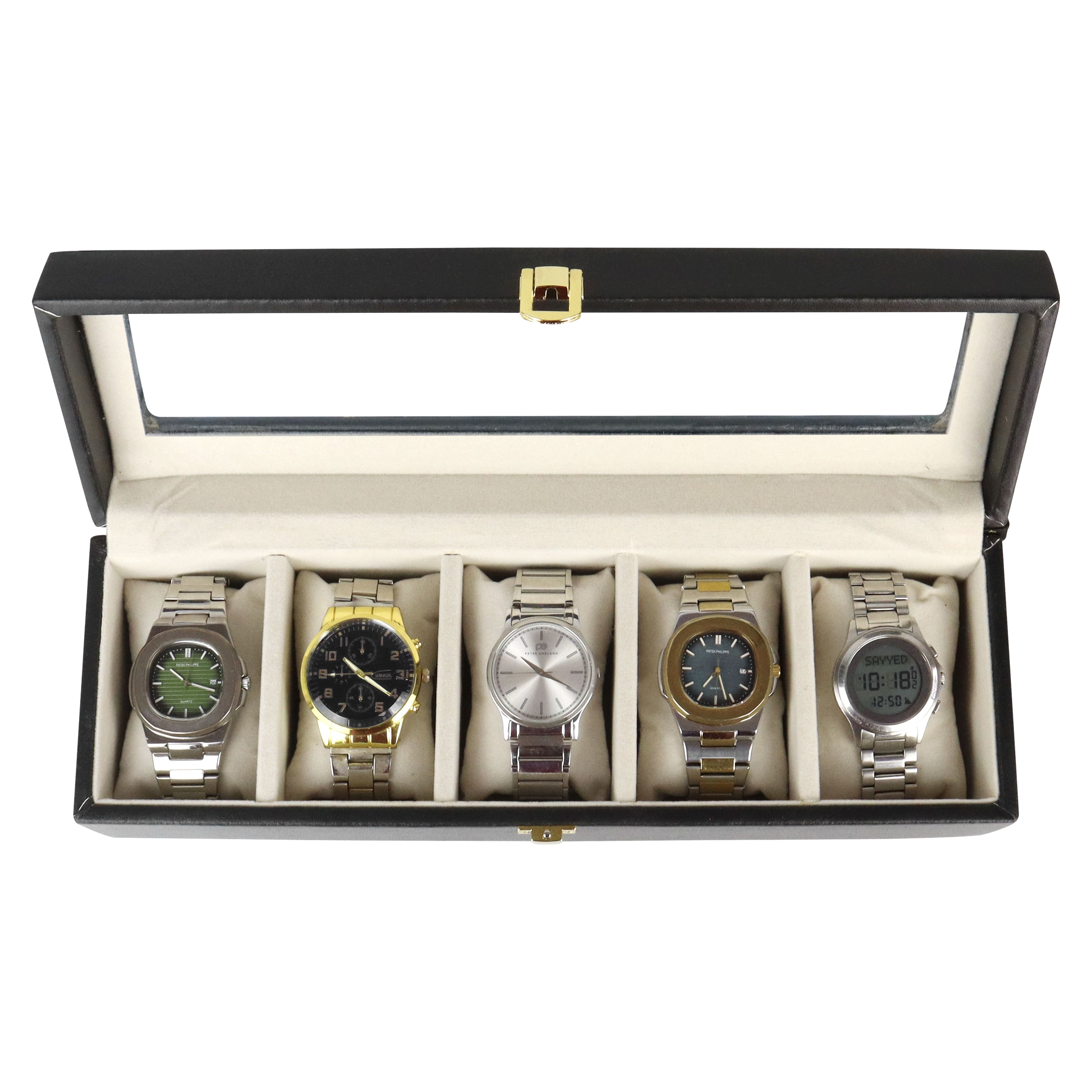 NFI essentials Watch Box Organizer Case for Men and Women, 5 Slot Storage Box for Watches, Watch Holder Box Transparent Display Look on Top
