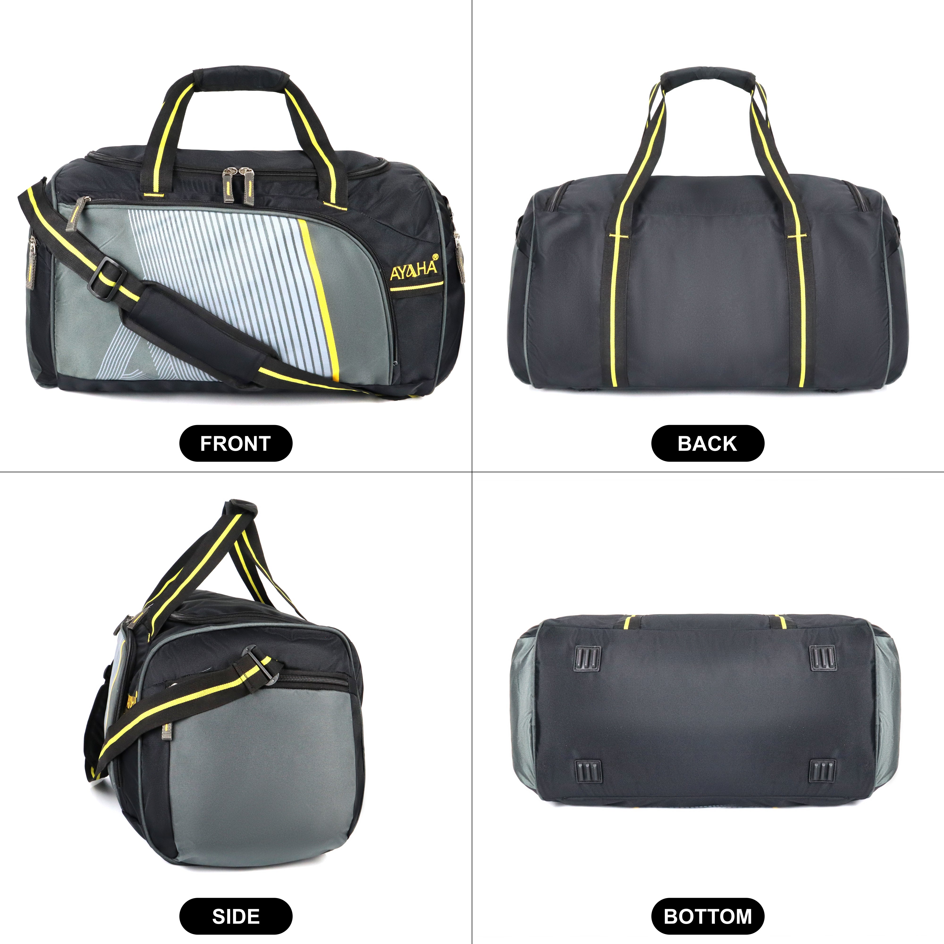"Travel Duffle Bag From NFI essentials, A Perfect Pick For The Frequent Travellers & Explorers. Multipurpose Travelling Duffle Bag. Perfect For Carrying In Outdoor Activities like Weekend & Business Trips, Camping, Shopping, Parties, Outing, Long Drive, Travelling, gym, Sports, Causal, etc. The Casual Soft-Sided Travel Duffle Bag Features Rugged, Yet Lightweight Construction. Designed For Both Men And Women, The Bag Holds An Impressive Amount and It Can Compress Down For Compact Storage When Not In Use. The padded handle provides comfort when carrying by hand and can release stress from the bag. Handles improves the grip of the Bag. They can be taken apart to access the large main compartment. The adjustable paddes shoulder strap can be adjusted and locked to whatever length needed for carrying over the shoulder to alleviate the weight. Adjust your strap as per your need and comfort. Plenty space to hold a ton of stuff. With a huge compartment in this bag, the user can have ample space for storage. 1 main compartment keeps all stuff organized, 2 long zip pocket at front, 2 side pocket on both the sides. The two way smooth durable zippers allow easy access to inside things without getting stuck and are built to last a lifetime. The zipper has a unique design that makes it easy to open and close the bag. The corner guards of the bags support from falling or slipping and avoids any damage to the bag while traveling. With four Wear-resisting bubble-shaped rubber mats at the bottom which protect the bag from damage. You can bring this bag anywhere with you and not have to worry about making space for a bag. You could easily use this duffle bag to travel internationally. It is very spacious and roomy. The quality of the bag is good. It will be the best companion to meet your different needs."