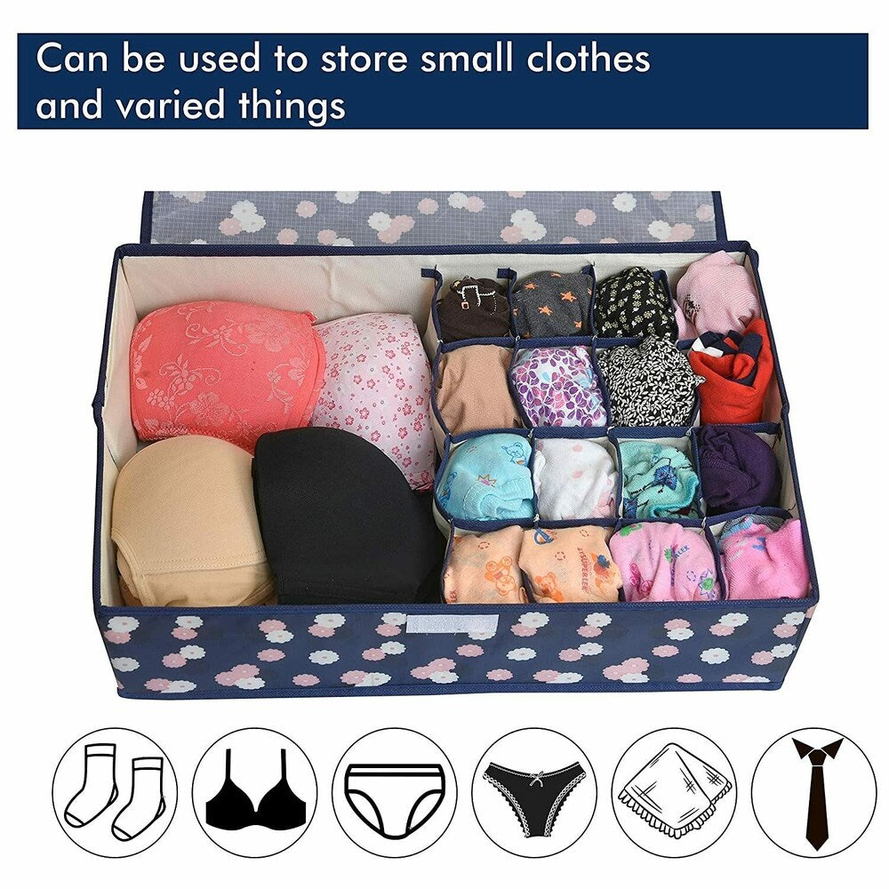 NFI essentials 16+1 Compartment Pack of 2 Foldable Storage Box, Multi Closet Organizer For ,Socks, Bra, Tie, Scarf, Panty Innerwear Organizer For Wardrobe Undergarments Organizer Non Woven