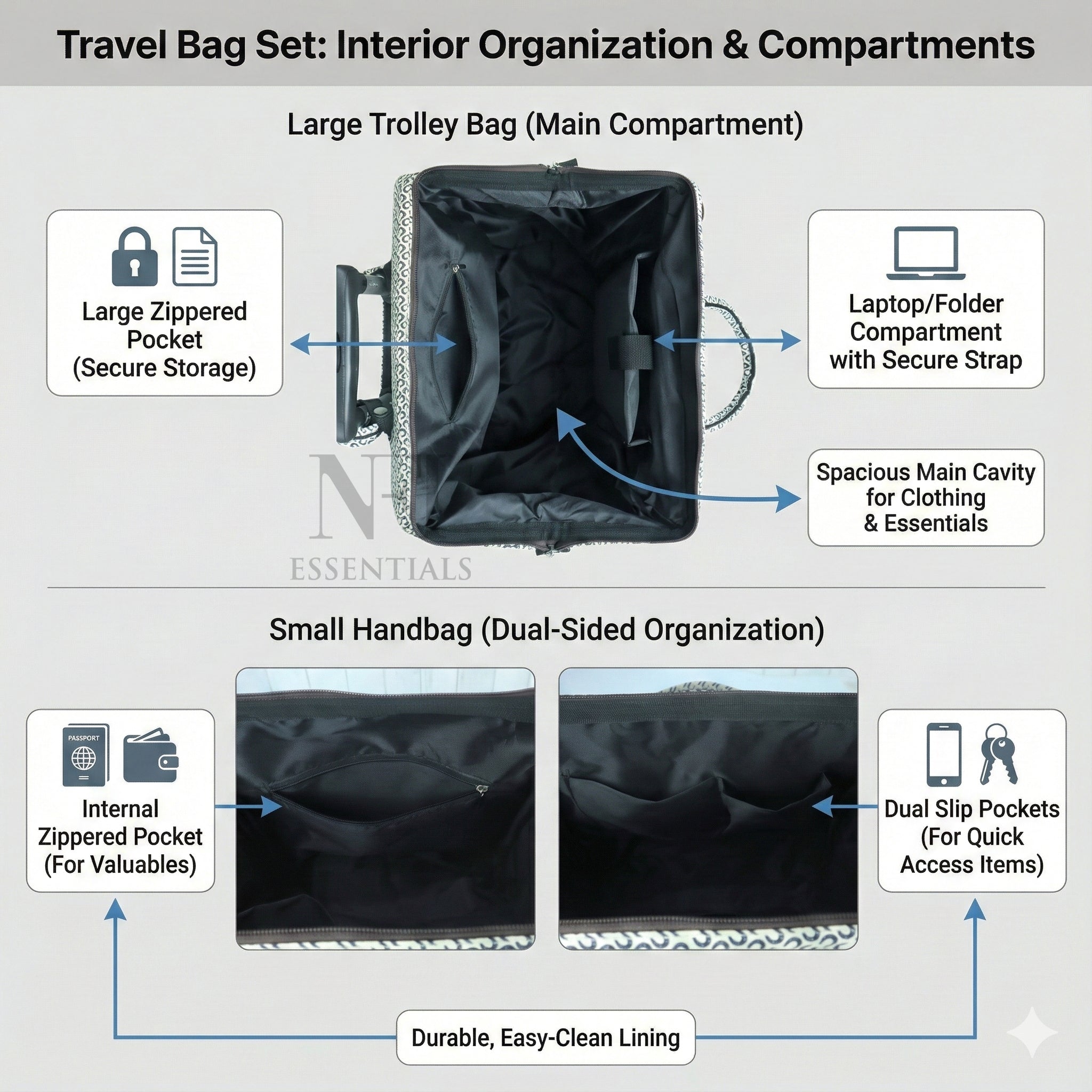 NFI essentials This 2-Piece Printed Trolley Handbag Set is designed for travelers who want both style The attractive printed design gives the bags a classy and modern appearance