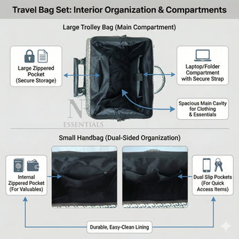 NFI essentials 2-Piece Trolley Handbag Set with Wheels Stylish Travel Luggage Bags Lightweight, Durable Fabric Ideal for Travel,Storage Bag for Women Turn Baby Daiper Bag 360° Silent Spinner Wheels