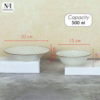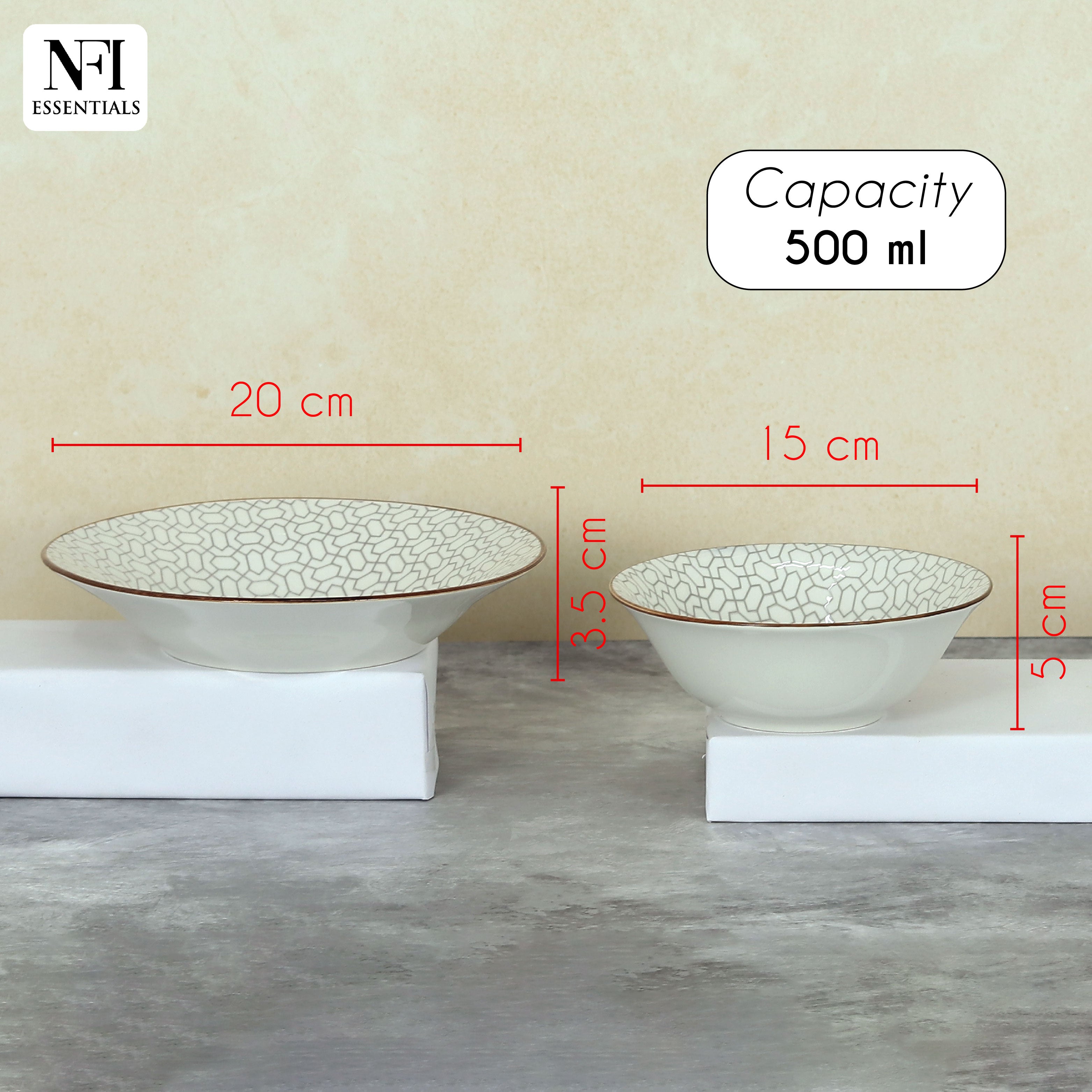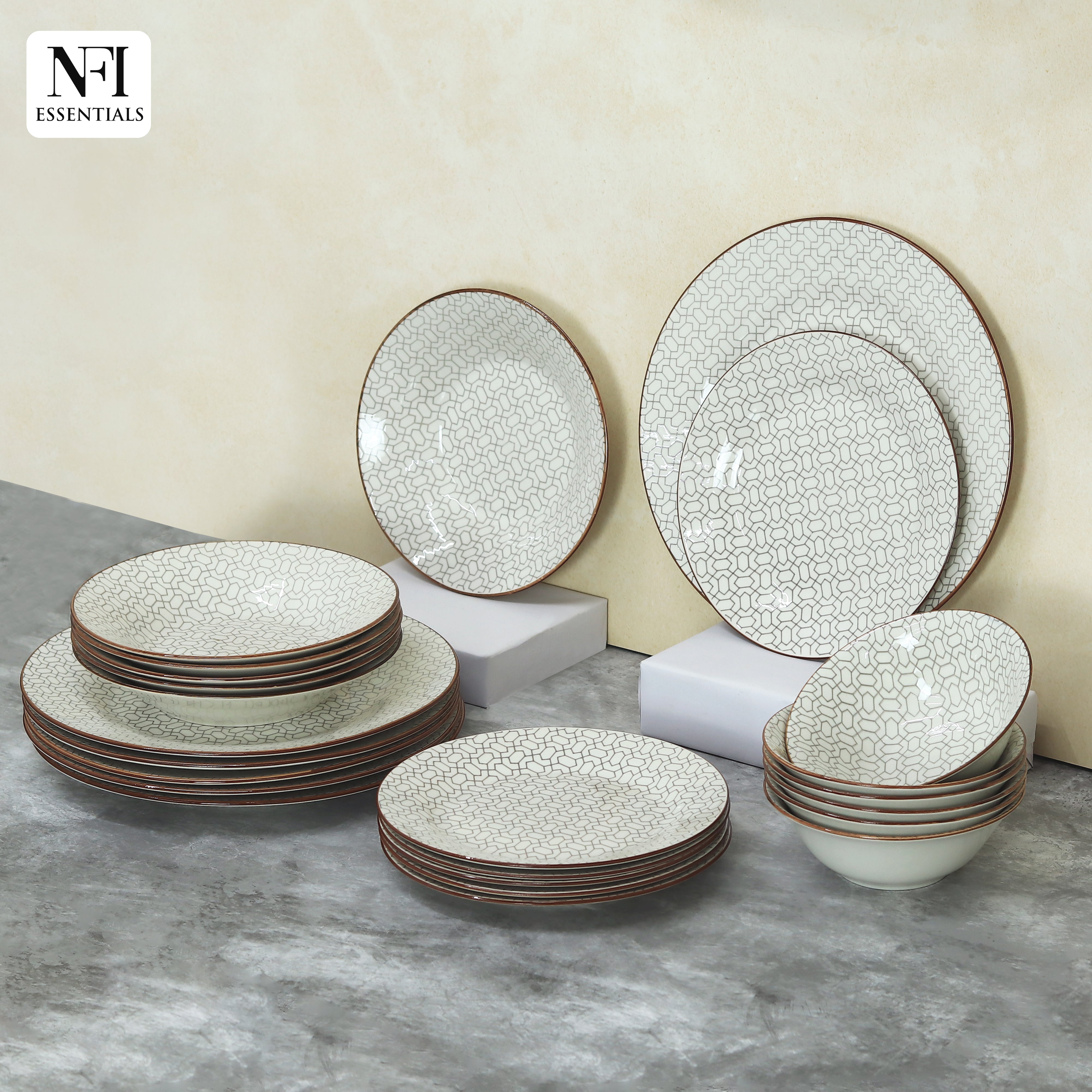 A dinner set is an essential component of any home and enhances the ambiance of the interior design. Dinner sets of one's choosing are served for special occasions as well as daily meals. Restaurant settings also provide careful consideration to the dinner set selection. There are a variety of dining set styles to fit every taste.There are numerous varieties to fit every taste, including melamine and ceramic. Savor your main courses with this exquisitely crafted dinner set from NFI Essentials. You can use these for six people at home, in the cafeteria at work, in restaurants, or as gifts for friends and family for important occasions.