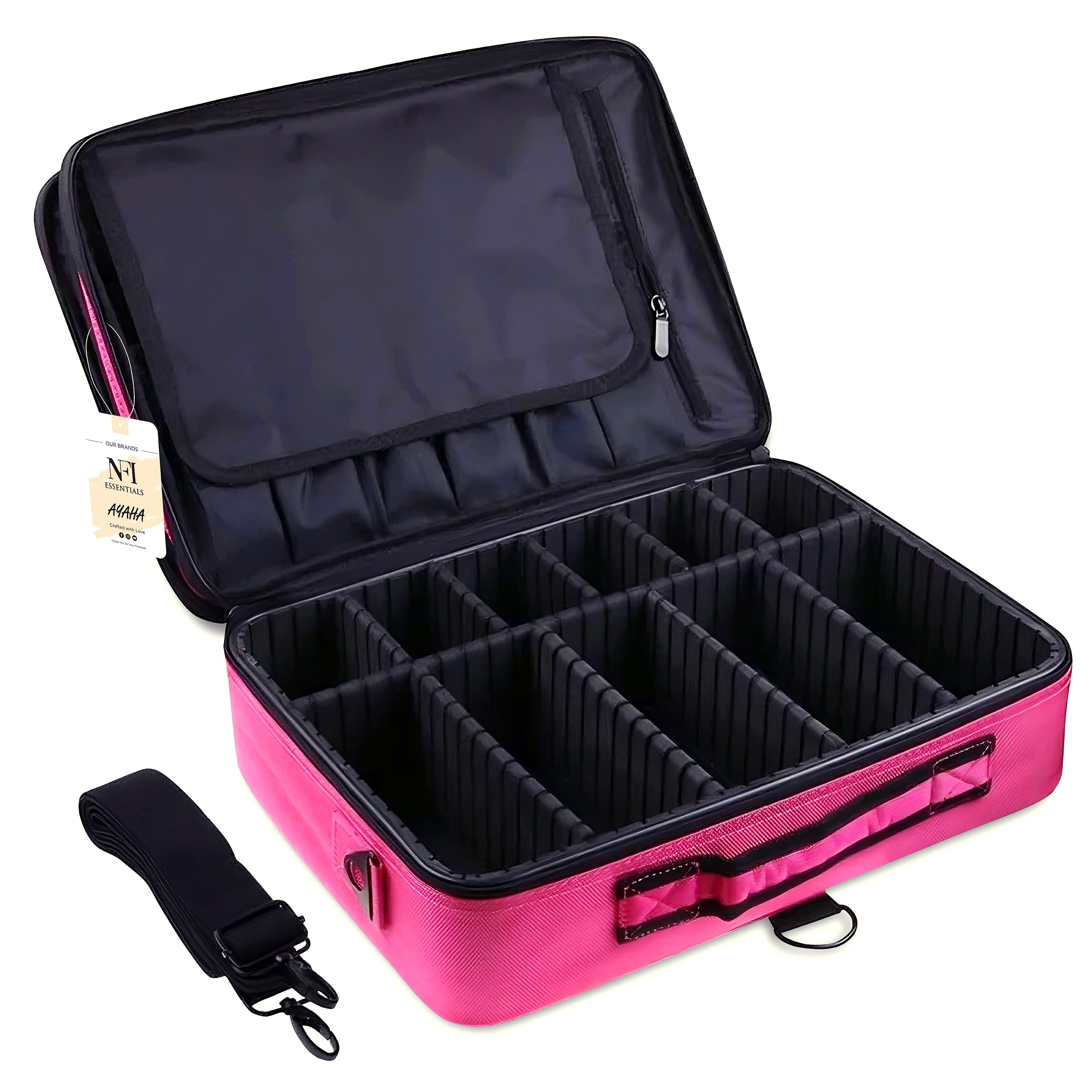 With Several compartments for different skin or makeup tools, Special design adjustable compartments, you can adjust as needed. This makeup case is perfect for holding cosmetics, mobile phone and washing products or other items, help to keep your tools is neat and tidy. Another medium storage bag are perfect for purse or everyday makeup bag. Super Lightweight Ideal for taking exactly what you need, anywhere, at any time. Wide handle for easy carry. Keeping your cosmetics safe and handy. Perfect for travel and home storage.