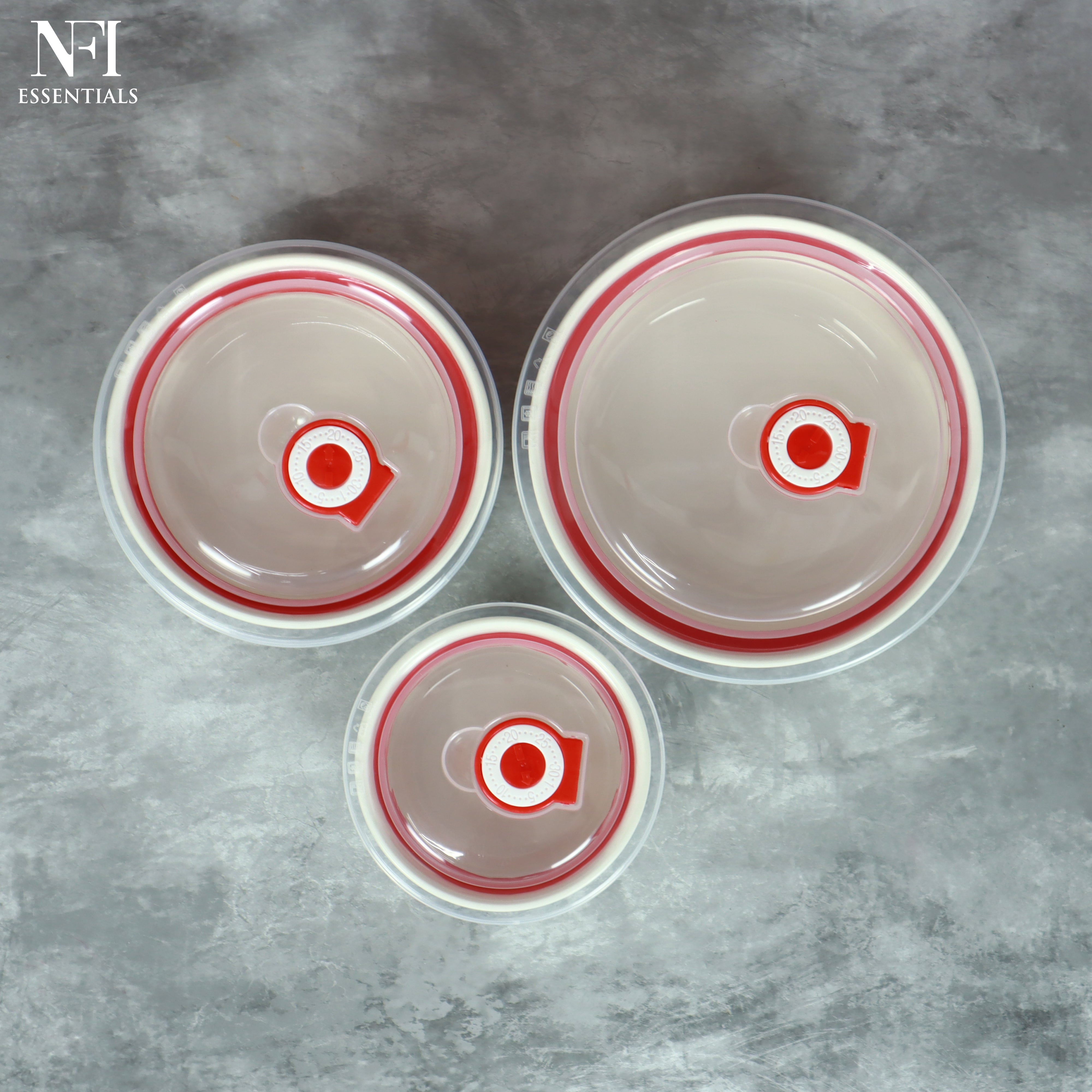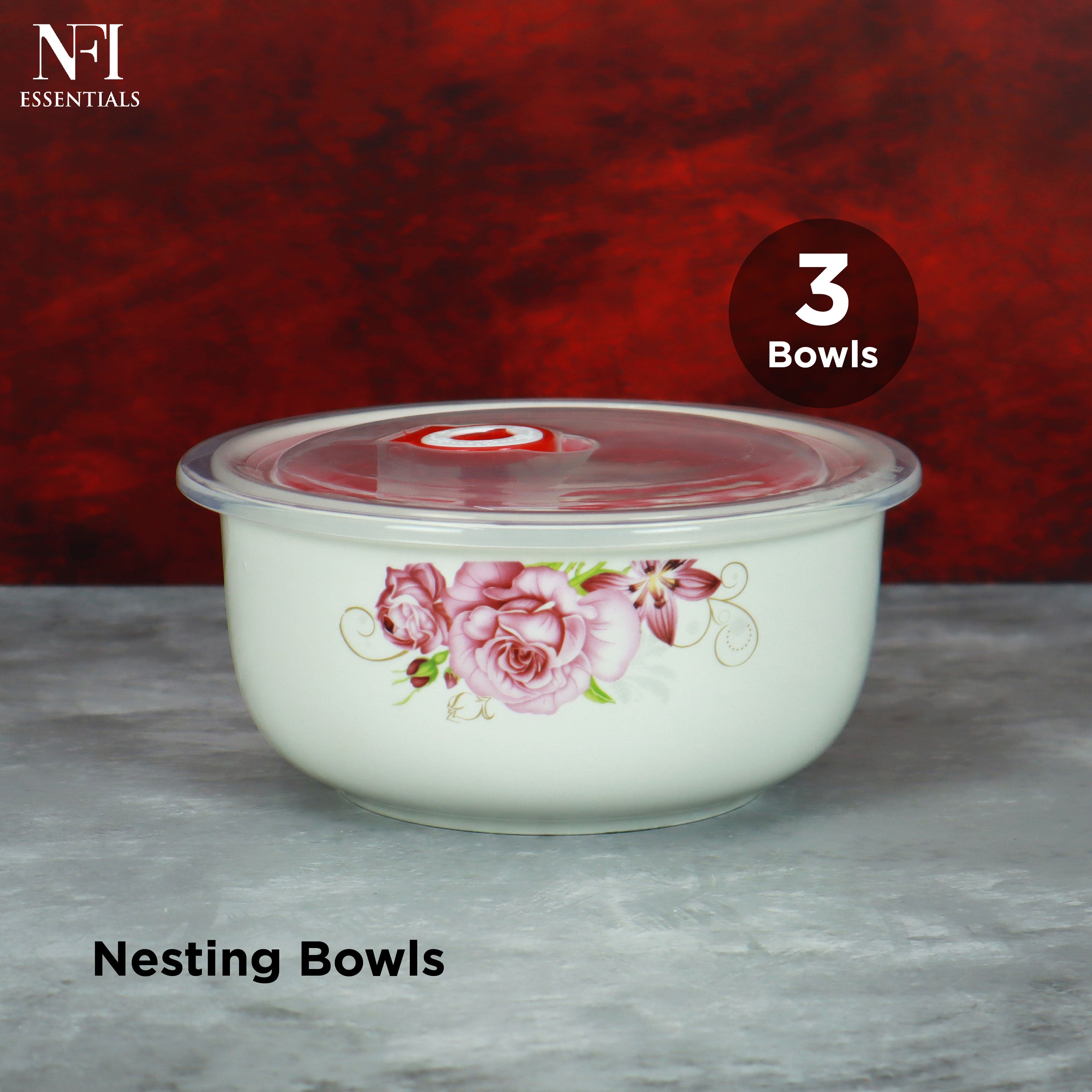 NFI essentials 3 Pcs Ribbed Ceramic Bowl Set with Airtight Lids Ideal for Food Storage, Serving, and Meal Prep Microwave Safe, Freezer Safe, Dishwasher Safe (Large- 800ml,Meduim- 500ml & Small- 280ml)