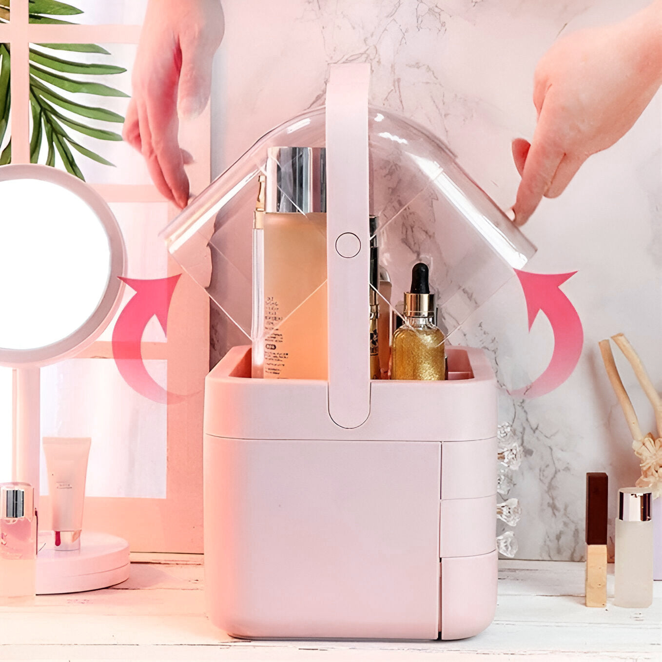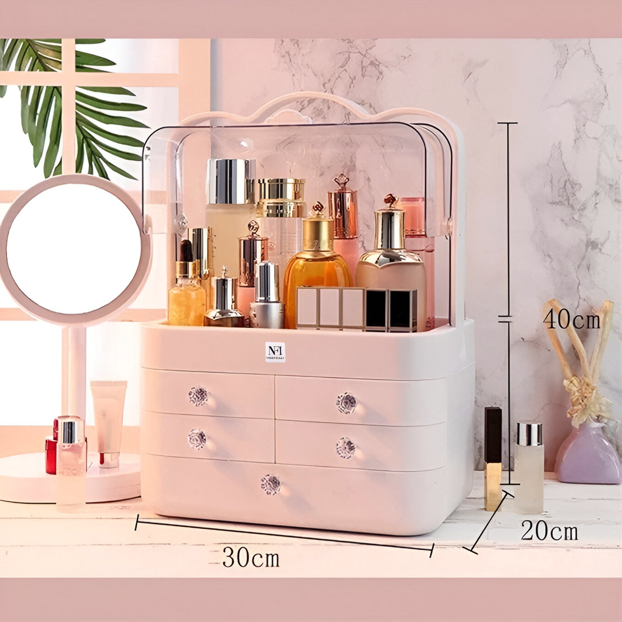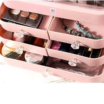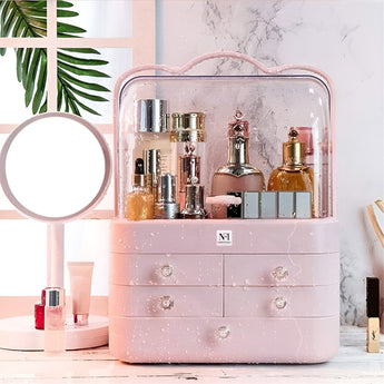 The Makeup Organizer is a must-have for anyone who wants to keep their beauty essentials neatly stored and easily accessible. Designed with large capacity, this organizer offers ample space to store everything from your skincare products to lipsticks, perfume, and other cosmetics. Whether you have a wide collection of beauty products or just need a convenient way to organize your everyday essentials, this storage solution provides a perfect balance of functionality and style. The organizer features 2 spacious storage drawers, which help to separate your items by category, making it easier to find exactly what you're looking for without rummaging through cluttered drawers. Its sleek and modern design fits seamlessly on your bathroom countertop or bedroom dresser, adding an elegant touch to your vanity area while saving space. Crafted to be both durable and stylish, this makeup organizer keeps your skincare and cosmetics organized, protected, and in great condition. Say goodbye to the mess and enjoy a well-arranged, efficient beauty routine every day with this practical yet chic cosmetics organizer.