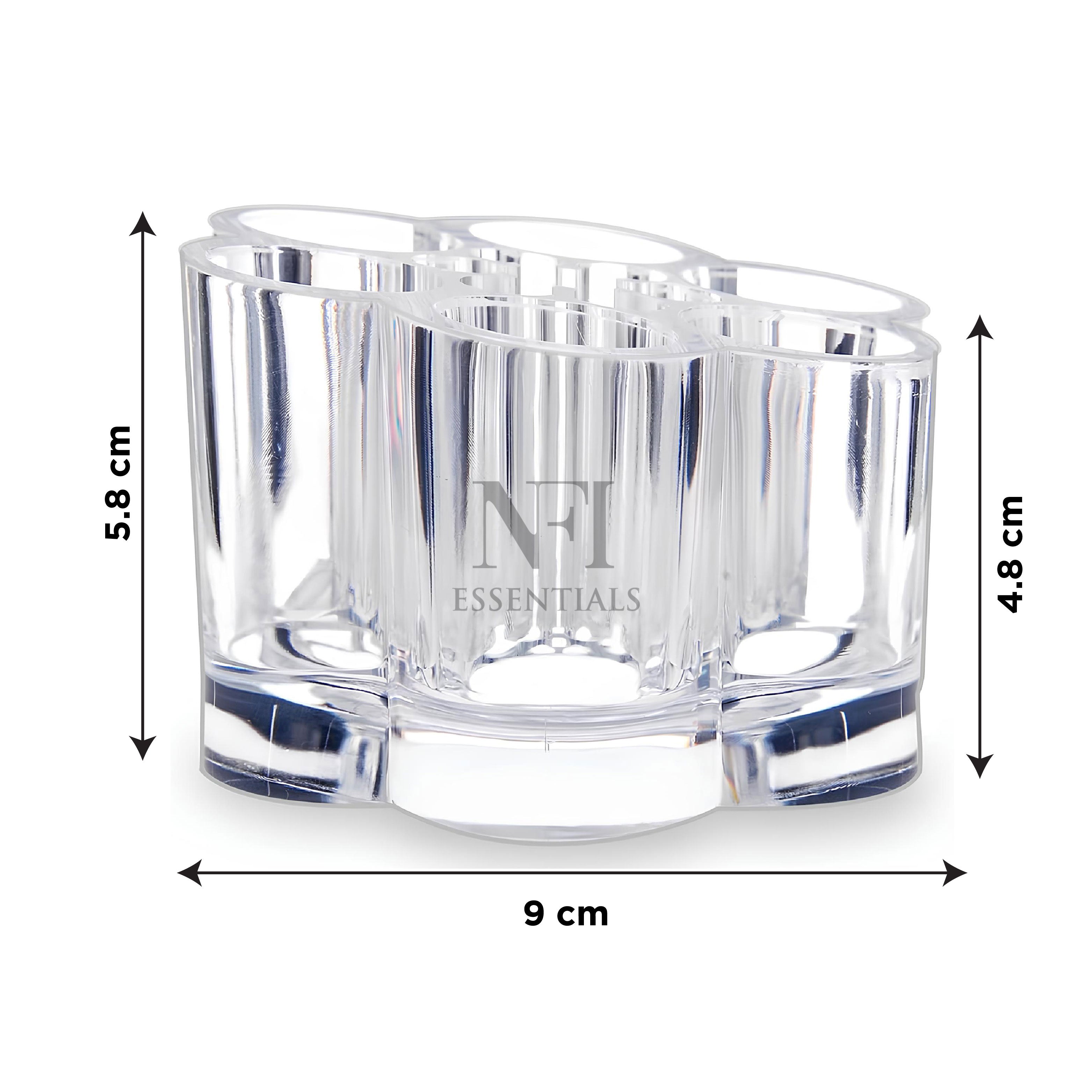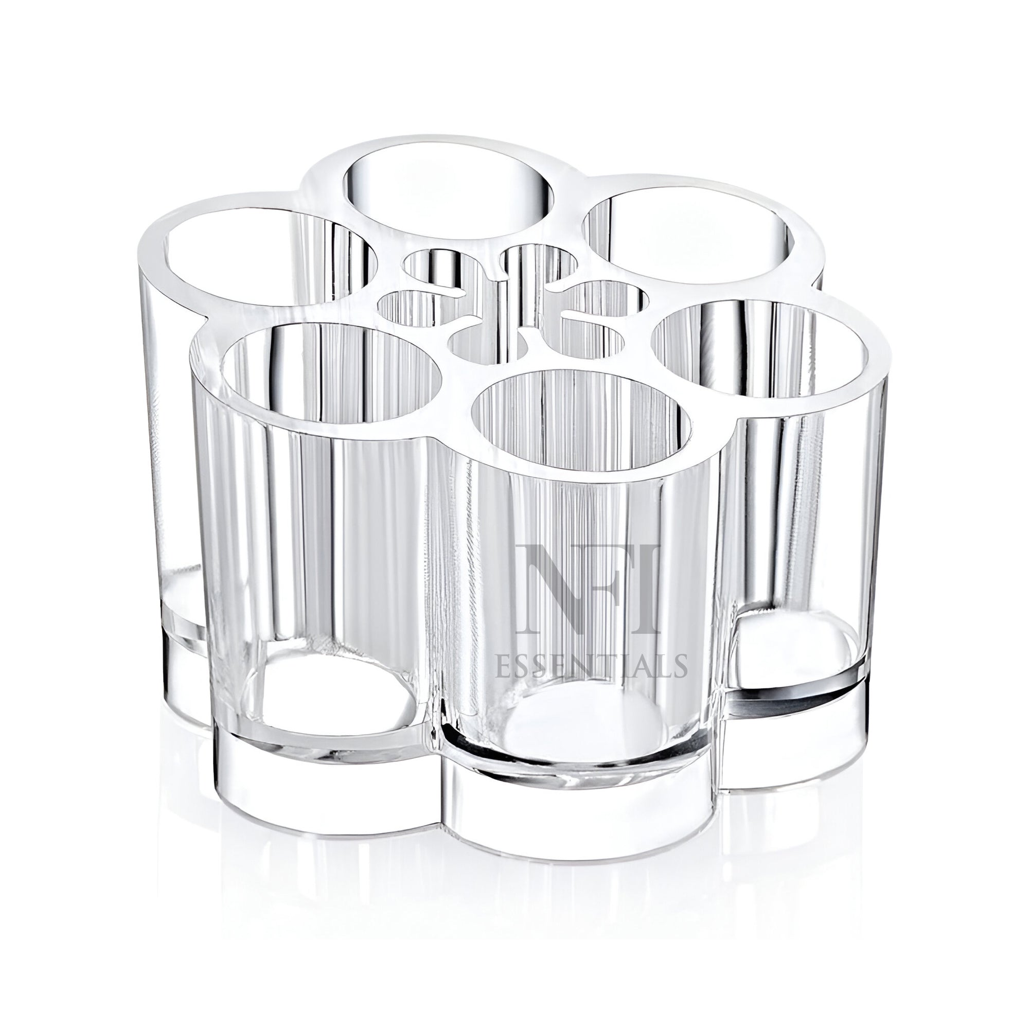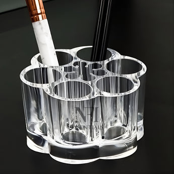 Keep your beauty essentials neat, stylish, and within reach with this Clear Acrylic Makeup Organizer. Featuring 7 individual cylindrical slots, this sleek organizer is perfect for storing lipsticks, makeup brushes, eyeliner pencils, or even office supplies like pens and markers. Made from high-quality transparent acrylic, it adds a touch of elegance to any vanity, bathroom, or work desk while offering functional storage.