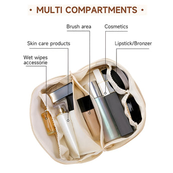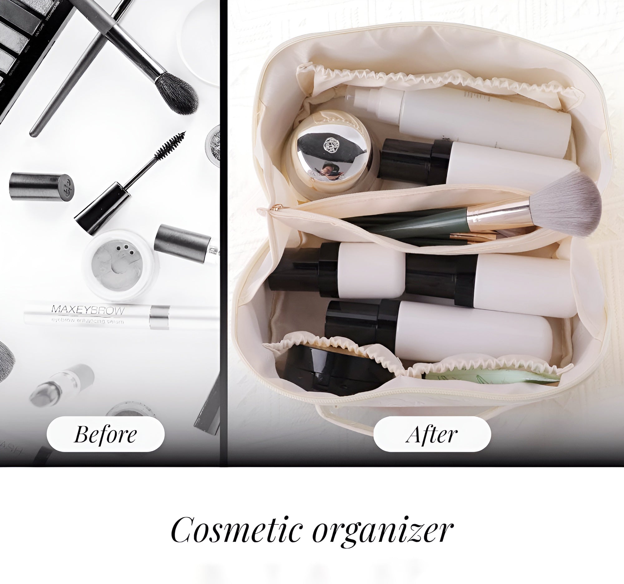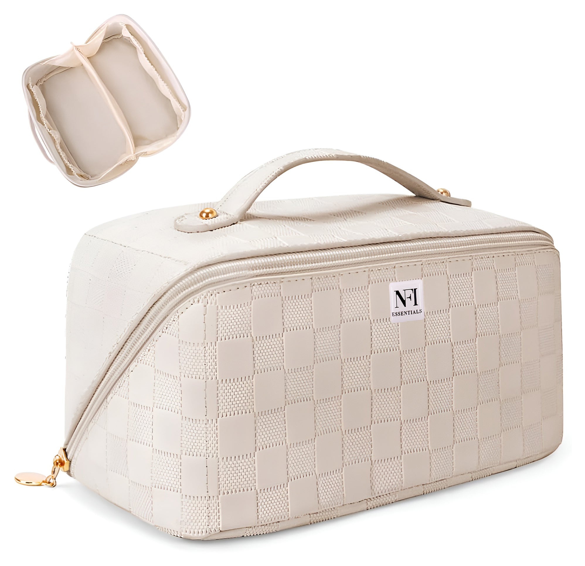 NFI essentials Cosmetic Travel Organizer Bag, Women's Makeup Pouch Toiletry Bag Portable Leather Wide Opening Cosmetics Bag with Handle and Divider