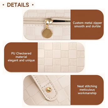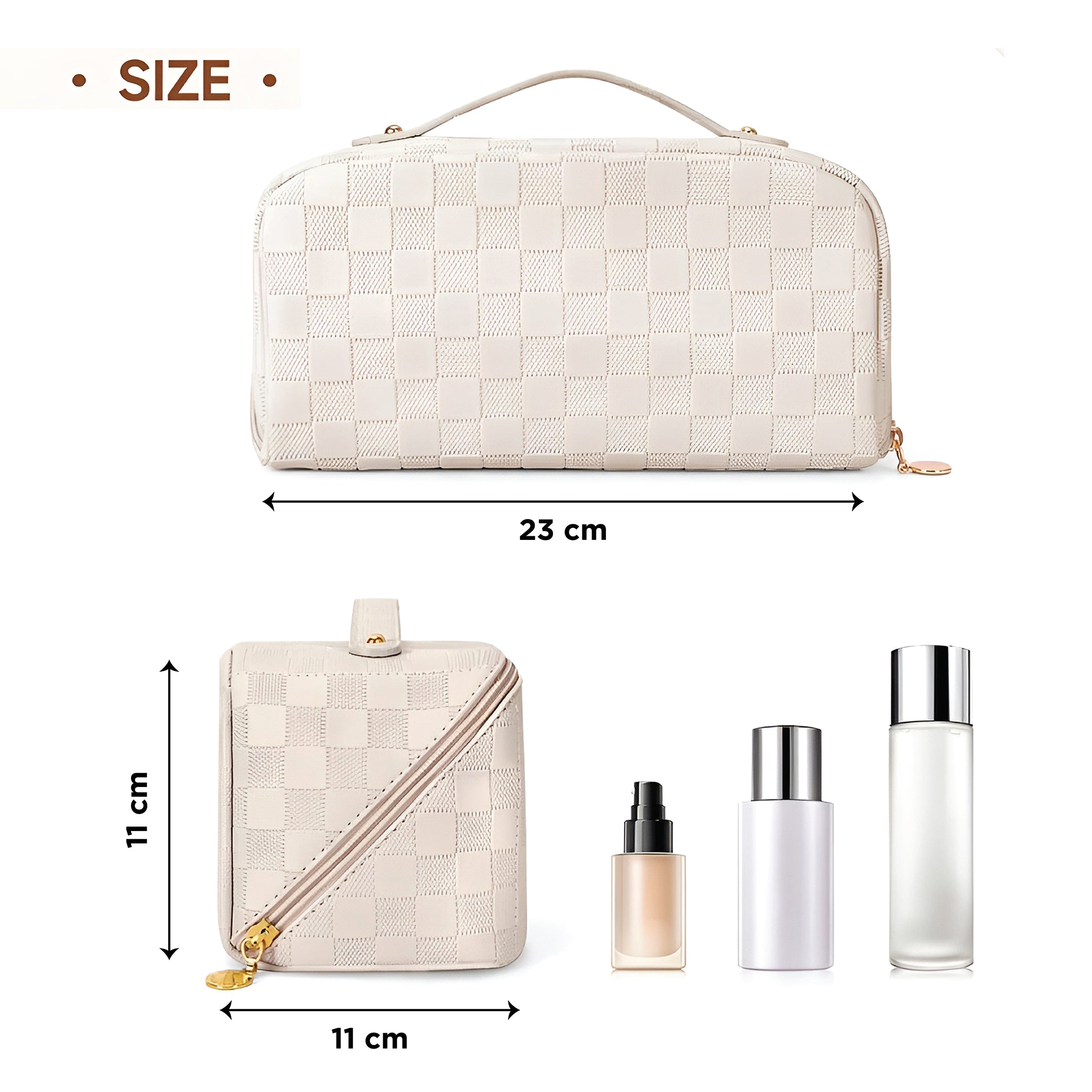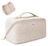 Makeup bag is made of high quality water-resistant PU leather, more solid and shaped. Easy to clean and can effectively prevent the internal items from moisture. Cosmetic bags for travel with woven pattern, color clash design is stylish and durable. A variety of colors to choose from is a great choice for a variety of holiday gifts.Our travel makeup bag feature a large opening flat design for quick access to your items. The bottom side tabs are designed to ensure that the zipper works smoothly. PU leather carry handle is comfortable and portable. Can be used as a cosmetic travel bag, toiletry bag, skin care bag, travel bag or daily storage bag. Help you to better organize various necessities. Our makeup bag is equipped with high-quality metal zippers, which can maintain smooth and unobstructed sliding even when the packaging is full. Its excellent zipper design makes it convenient and enjoyable for you to use cosmetics anytime, anywhere. The handle has undergone multiple tensile tests to ensure its comfort and durability. With high-quality handles and exquisite stitching, it has a beautiful appearance, allowing you to enjoy a relaxed and enjoyable beauty experience. Our makeup bag has multiple pockets for storing previously messy cosmetics. Durable materials ensure that the pockets do not wear out. Designed for smaller items such as lipstick, eyebrow pencil and eye shadow palette.