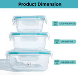 NFI essentials Food Safe Glass Containers Set of 3 With Airtight Lids Leak-Proof, Microwave, Freezer & Dishwasher Safe Borosilicate Meal Prep for Fresh, Healthy Food Storage (800ml, 520ml & 390ml)