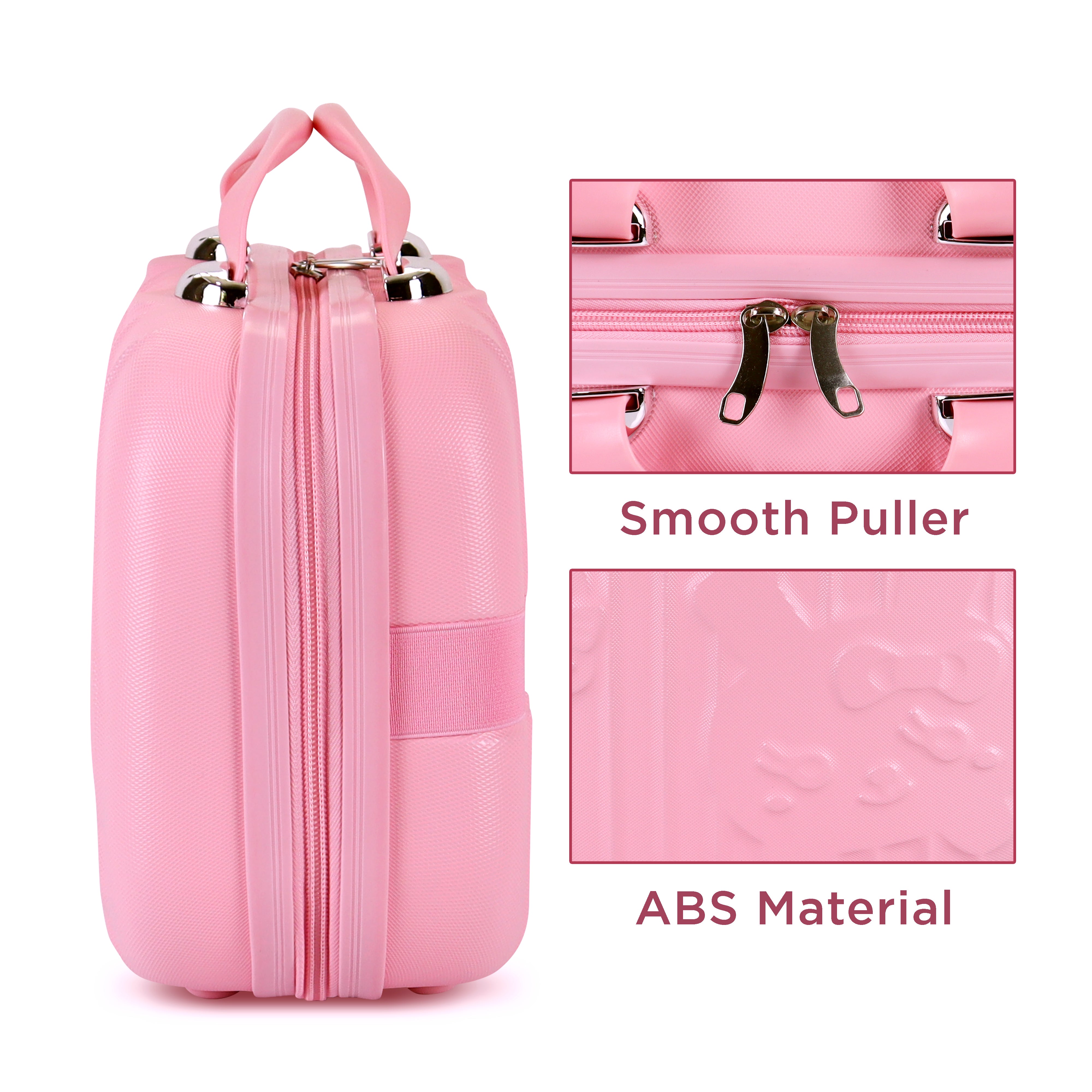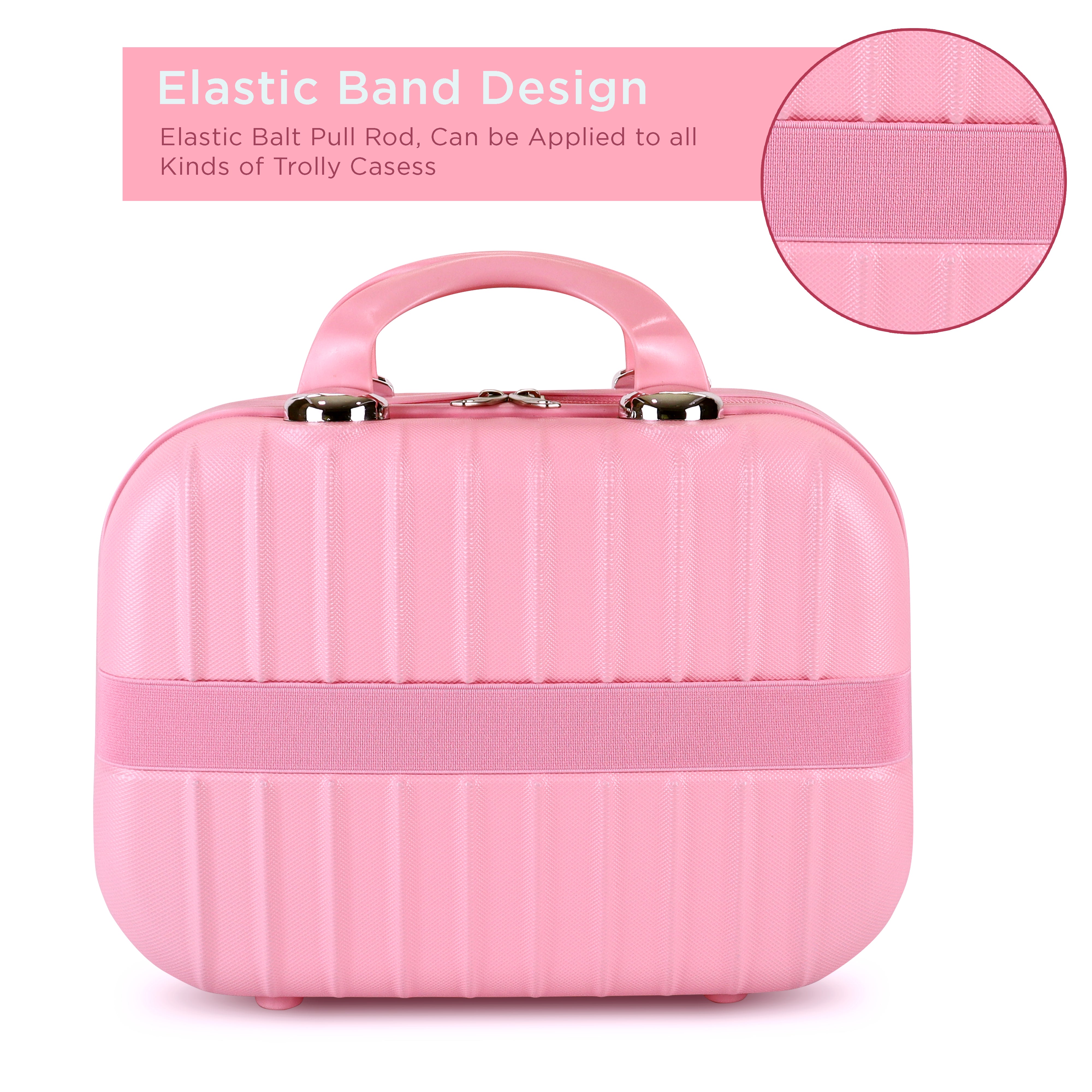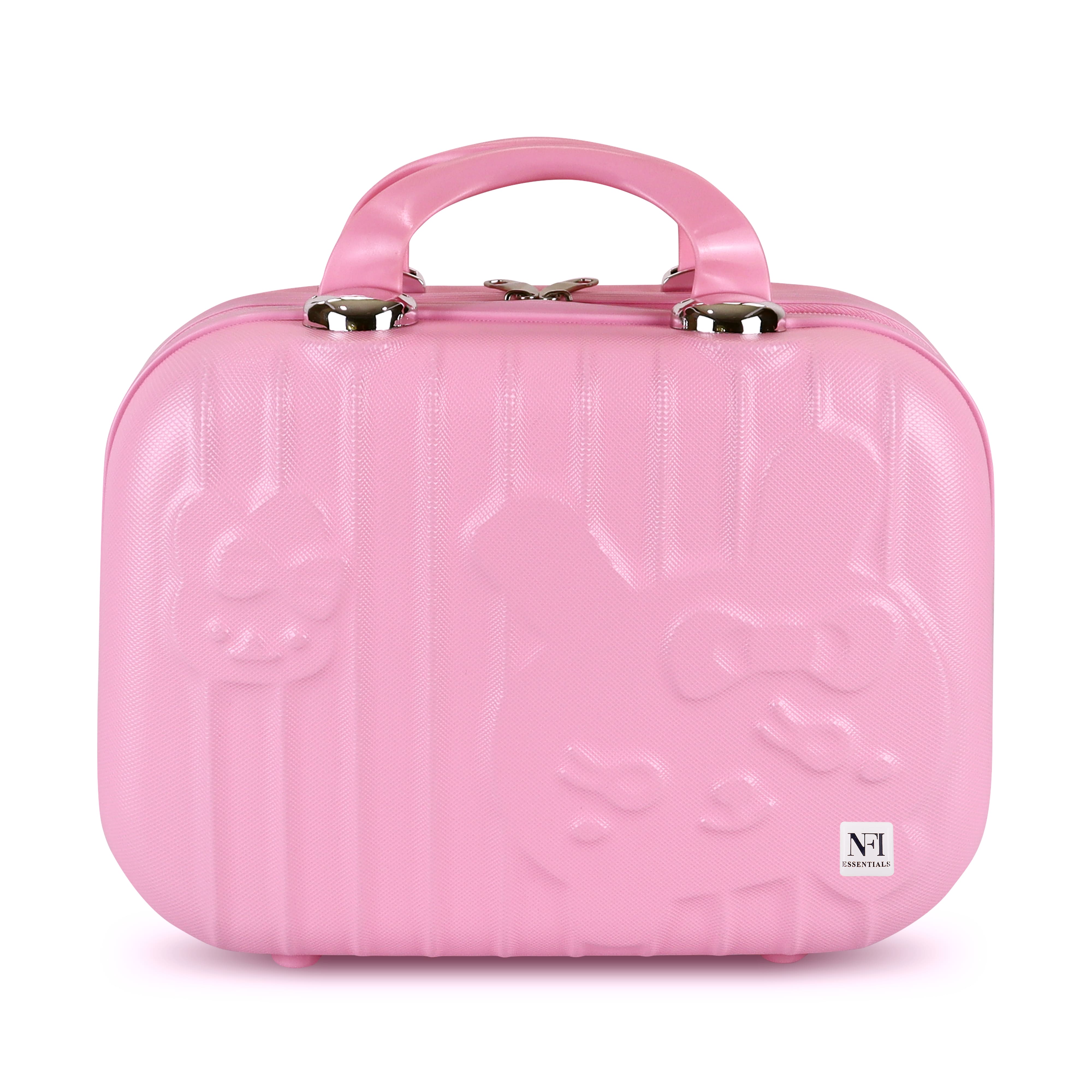 NFI Essentials ABS Hard Shell Vanity Cases for Women Travel Portable Carrying Cosmetic Case Suitcase Organizer Makeup Storage Box for Girls Toiletries Bag Pink