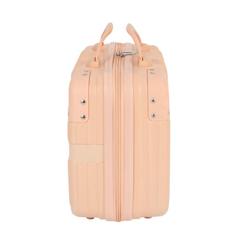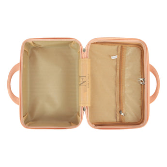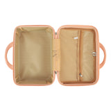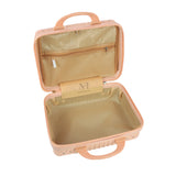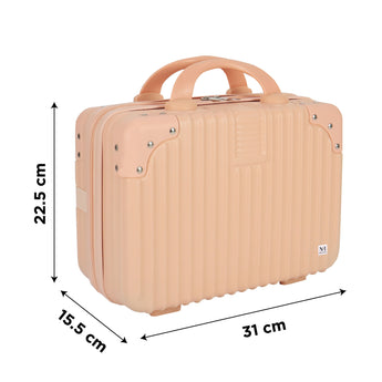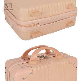 NFI essentials Hard Shell Vanity Cases is a lightweight, highly durable material that resists wear and compression. Stain-resistant and with a grainy texture. There is balance in both appearance and quality. The rubber handle is soft and provides a comfortable grip while evenly dispersing strength for a prolonged lift without fatigue. Our cosmetic suitcase has elastic straps designed for added convenience. To free up your hands, you can place it on the suitcase's carry handle.This is the ideal storage case for organizing cosmetics, skin care products, The suitcase's interior is straightforward and uncomplicated. A mesh zip pocket and an open, zip-around packet make up one section. An open pocket is another component. This is the makeup bag with a big capacity.toiletries, makeup, personal belongings, school supplies, hair accessories, small toys, and It has an elastic belt which can applied to trolley or cases.