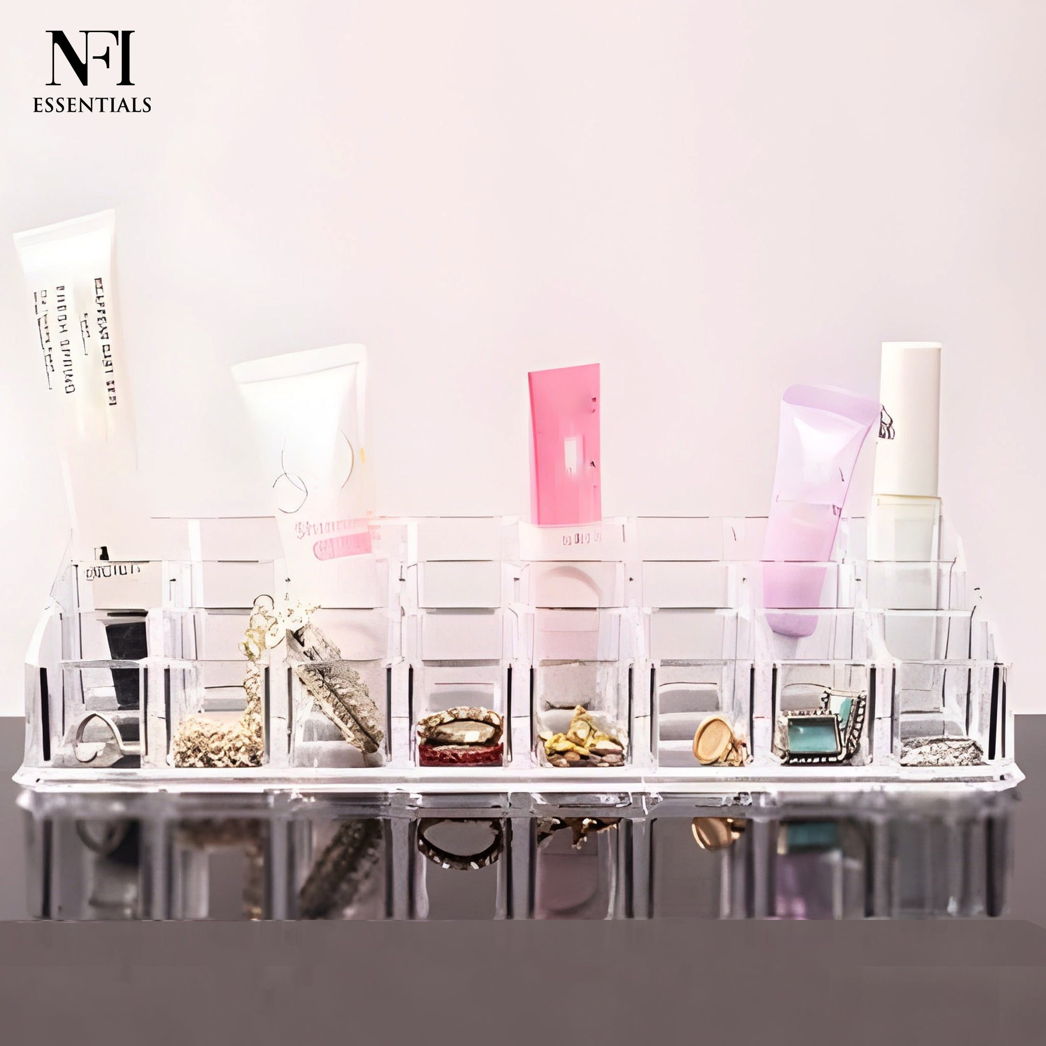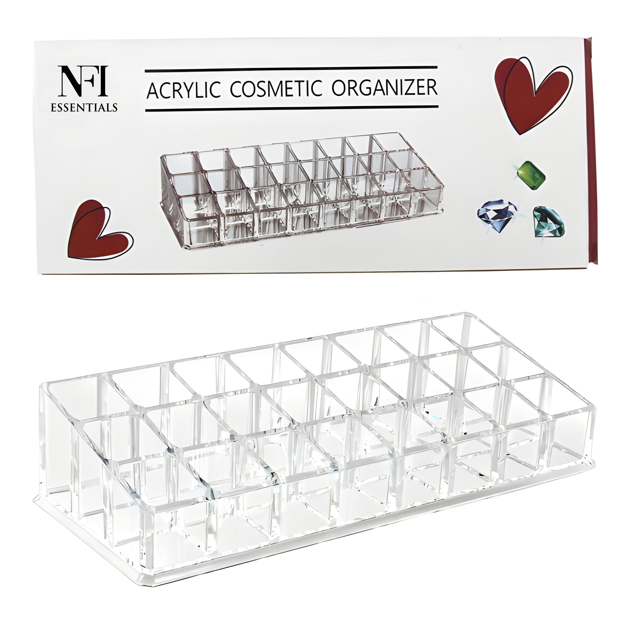 Simplify your beauty routine with this 24-Slot Clear Acrylic Lipstick & Cosmetic Organizer. Crafted from premium transparent acrylic, this rectangular storage solution is designed to hold up to 24 lipsticks, lip balms, glosses, or similar cylindrical items. It’s perfect for those who want to keep their vanity organized and their products easy to access.Each slot is evenly spaced to keep items upright and secure, preventing rolling or spillage. Whether you're a makeup lover, professional artist, or someone who simply loves neatness, this sleek holder helps display your beauty collection while saving space and time. Weighing just 202 grams, it’s lightweight and ideal for vanities, makeup counters, dressers, or even in bathroom cabinets. Its versatility makes it a handy organizer not just for cosmetics, but also for small tools, office items, or essential oils.