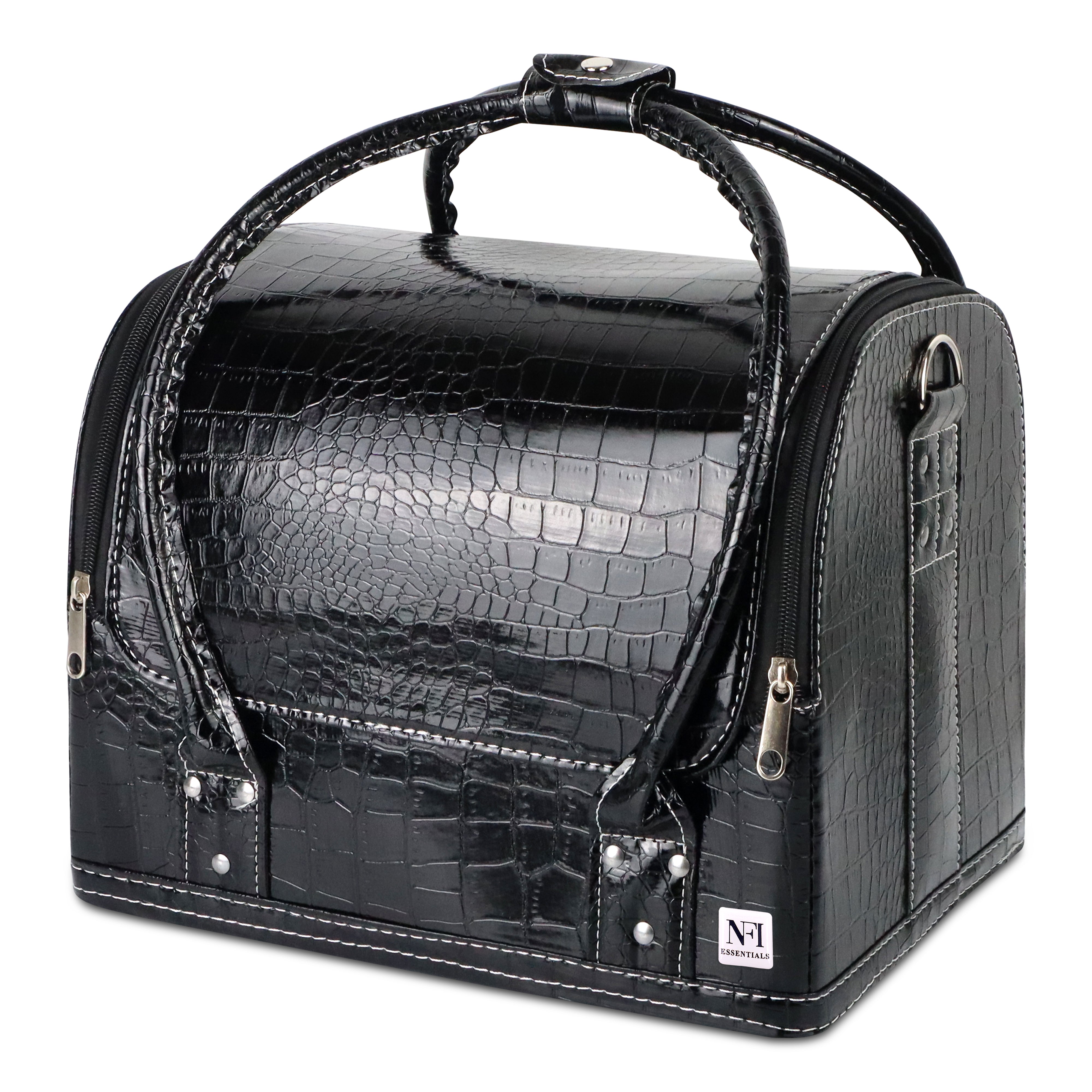 A stunning vanity case crafted beautifully for salon professionals and perfect for home use. With a huge compartment in this bag, the user can have ample space for storage. The bottom storage of the vanity bag is suitable for UV lamps, creams, bottles, makeup remover, hair dryer, crafts, DIY tools, USB cables, chargers. The stylish handle also ensures easy transportation with its lightweight nature. The trays of the cosmetic case are a perfect solution for storing the nail polishes, eye-shadows, lipsticks, nail tools and hairdressing tools. The zipper net pocket on the lid of this large makeup box is a perfect solution for organising the makeup brushes, eye-liners and other makeup tools. This makeup travel bag comes with a removable shoulder strap, you could carry the box easily during the trip. The thicker handle is comfortable for carrying the vanity case. You could take the makeup organiser case off the bag to clean. Only simply wipe with a paper towel or a damp cloth to clean the stains on the trays.