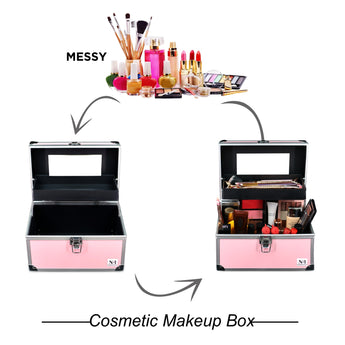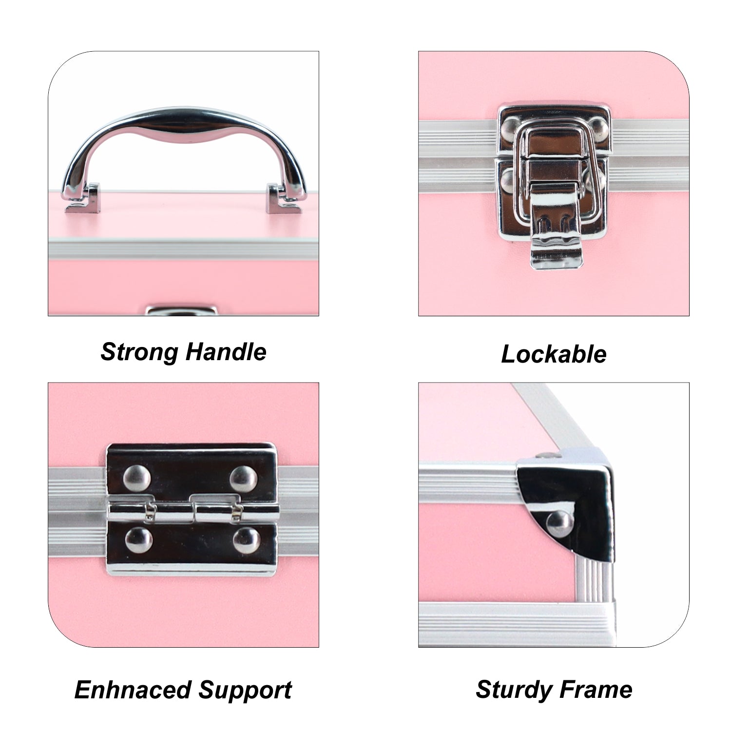 Material: Aluminum Cardboard Plastic----Lightweight, waterproof, durable, easy to clean. Extra-large cosmetic bag, elegant and stylish; Double-layer deign, Zip closure. Large beauty case is the perfect way to transport, store and protect your treasured makeup and cosmetic collection. Organize your daily cosmetics, skin-care products, makeup and brushes, eye shadow, lipstick, liquids, etc. Occasion: Ideal for travel, holiday, business trip, outdoor activities, etc. it's very convenient to carry with you at any time.