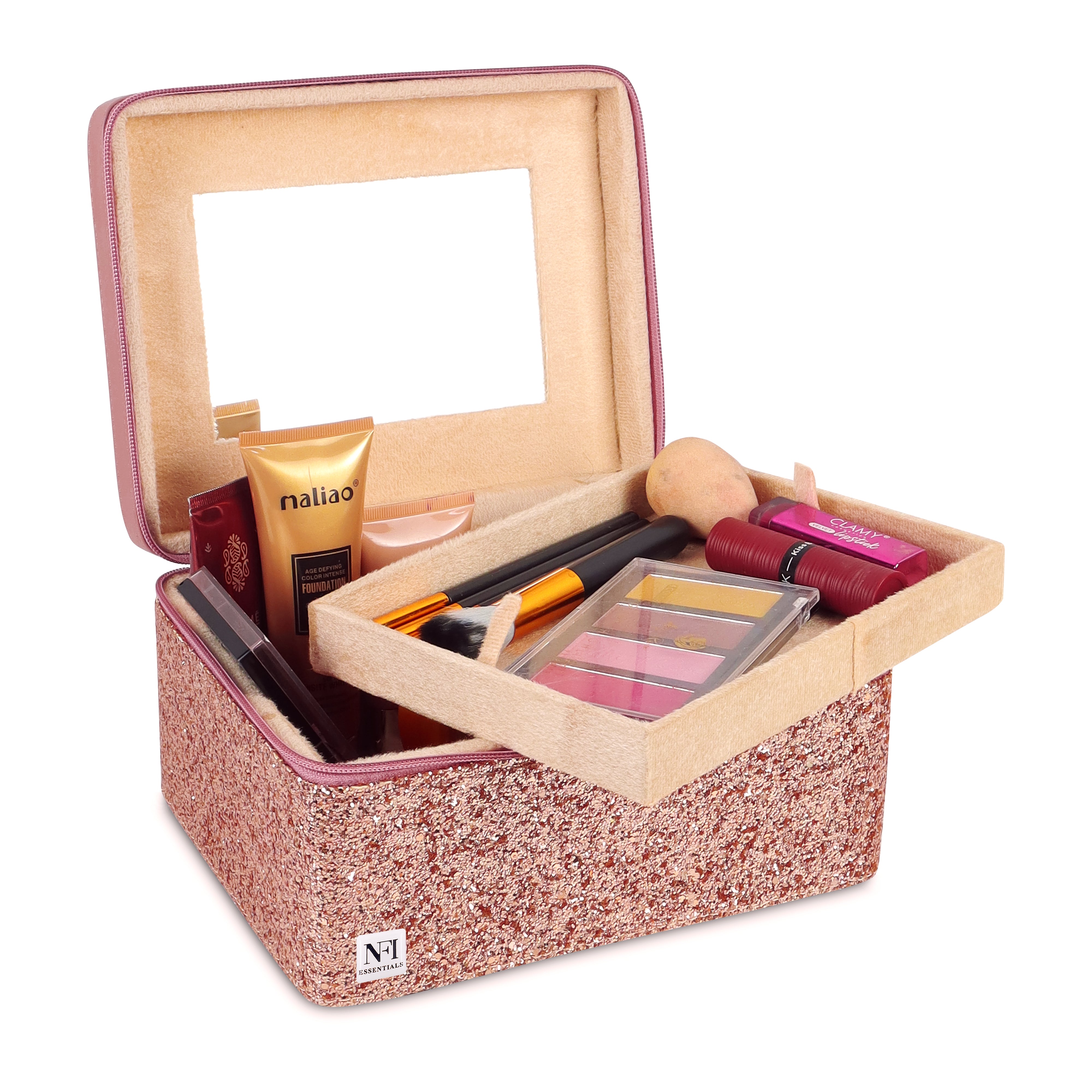 Material: PU Leather-Lightweight, waterproof, durable, easy to clean. Extra-large cosmetic bag, elegant and stylish; Double-layer deign, Zip closure. Large beauty case is the perfect way to transport, store and protect your treasured makeup and cosmetic collection. Organize your daily cosmetics, skin-care products, makeup and brushes, eye shadow, lipstick, liquids, etc. Occasion: Ideal for travel, holiday, business trip, outdoor activities, etc. it's very convenient to carry with you at any time.