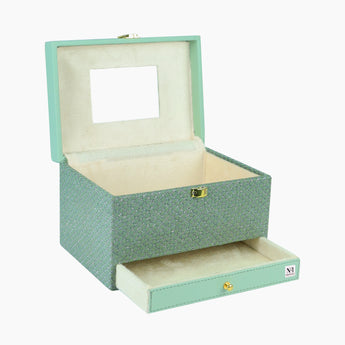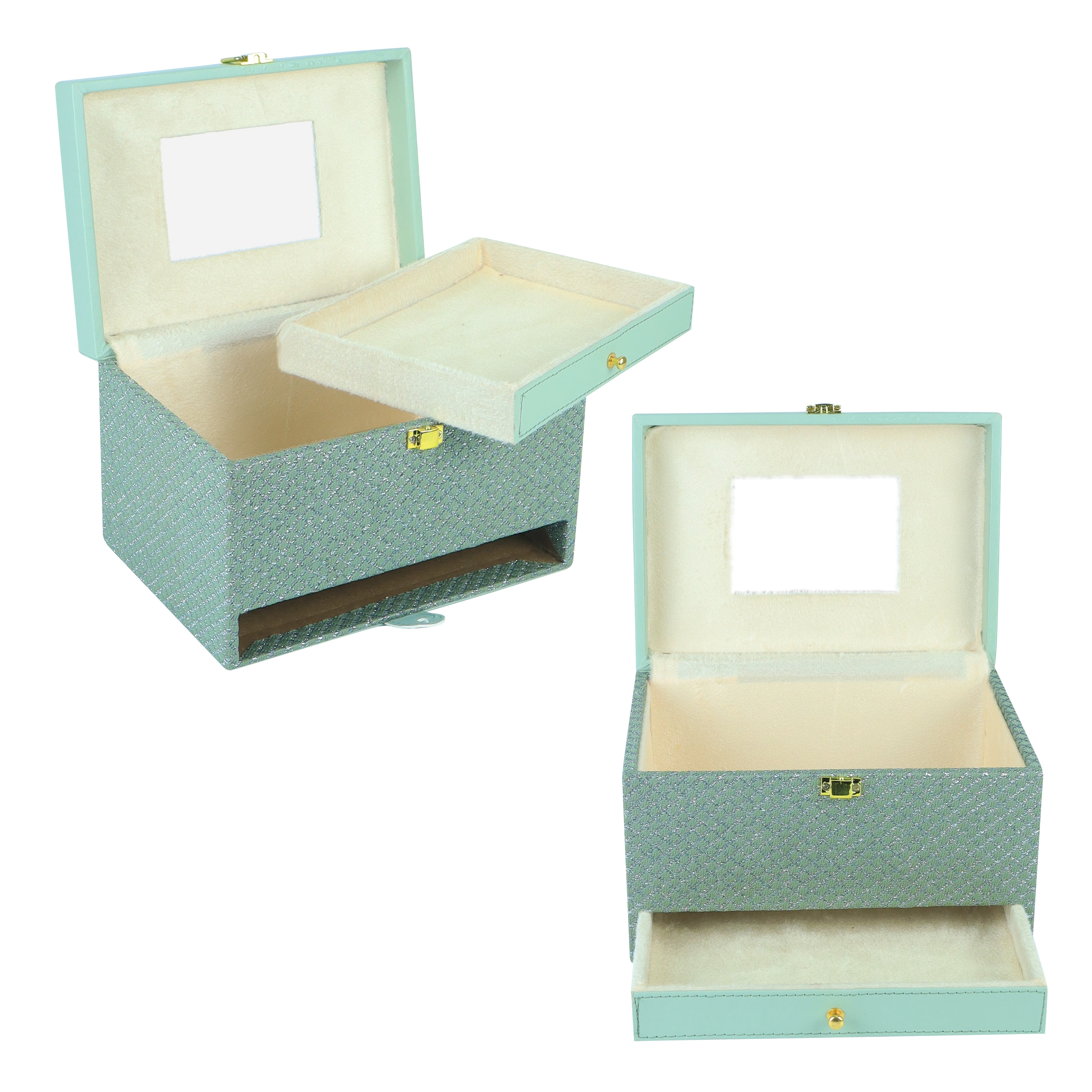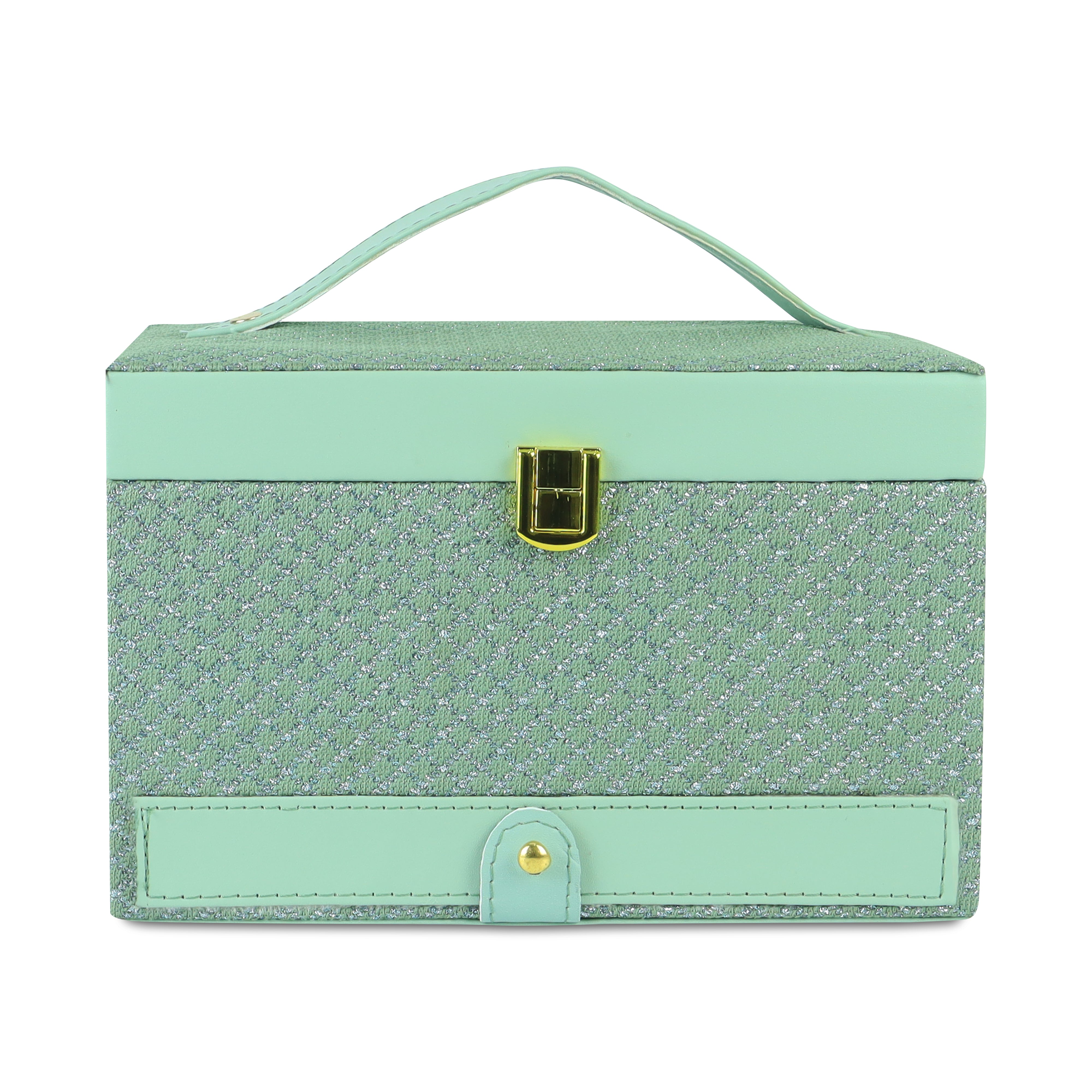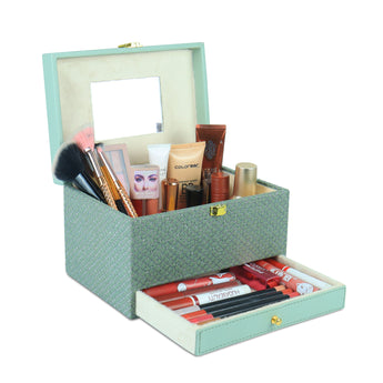 Stay stylishly organized with this elegant double-layer makeup and jewellery box. Made from durable, water-resistant polyurethane and lined with soft velvet, it’s lightweight, easy to clean, and perfect for both home and travel. Featuring a built-in mirror, this spacious organizer keeps your beauty essentials neatly in place. Ideal for makeup artists and beginners alike, it’s the perfect blend of fashion and function.lightweight, and easy to carry wherever you go. Whether you're heading on a weekend getaway or a long vacation, it keeps your essentials beautifully organized and within reach. It also makes a thoughtful and stylish gift for any occasio Valentine's Day, Mother’s Day, birthdays, weddings, anniversaries, Diwali, Christmas.