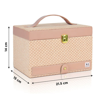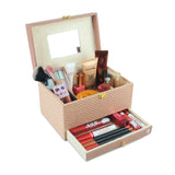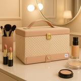 Stay stylishly organized with this elegant double-layer makeup and jewellery box. Made from durable, water-resistant polyurethane and lined with soft velvet, it’s lightweight, easy to clean, and perfect for both home and travel. Featuring a built-in mirror, this spacious organizer keeps your beauty essentials neatly in place. Ideal for makeup artists and beginners alike, it’s the perfect blend of fashion and function.lightweight, and easy to carry wherever you go. Whether you're heading on a weekend getaway or a long vacation, it keeps your essentials beautifully organized and within reach. It also makes a thoughtful and stylish gift for any occasio Valentine's Day, Mother’s Day, birthdays, weddings, anniversaries, Diwali, Christmas.