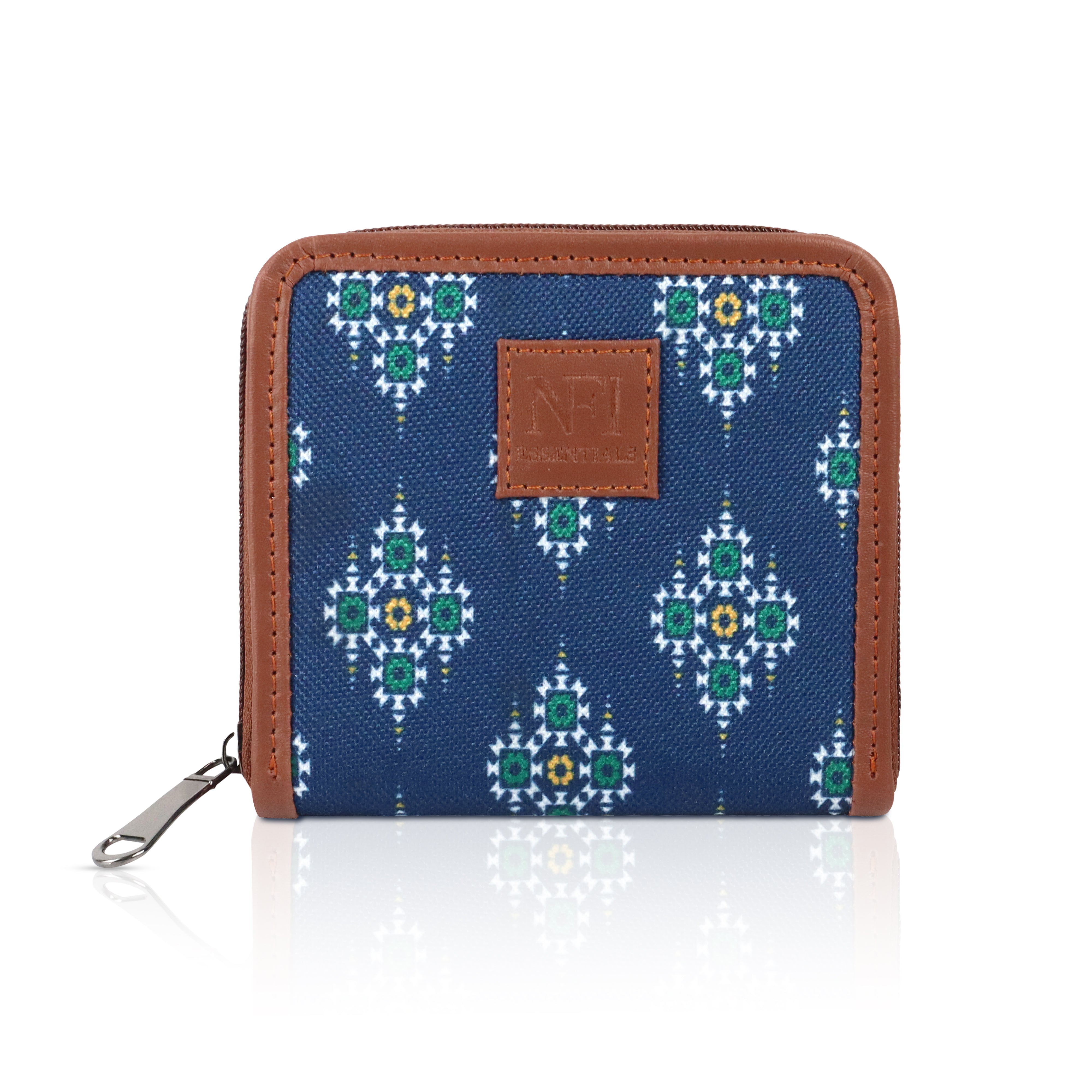 NFI essentials Mini Small Zipper Wallet for Women, Handmade Clutch Wallet for Girls, Vegan Leather & Ikkat Khadi Purse for Female